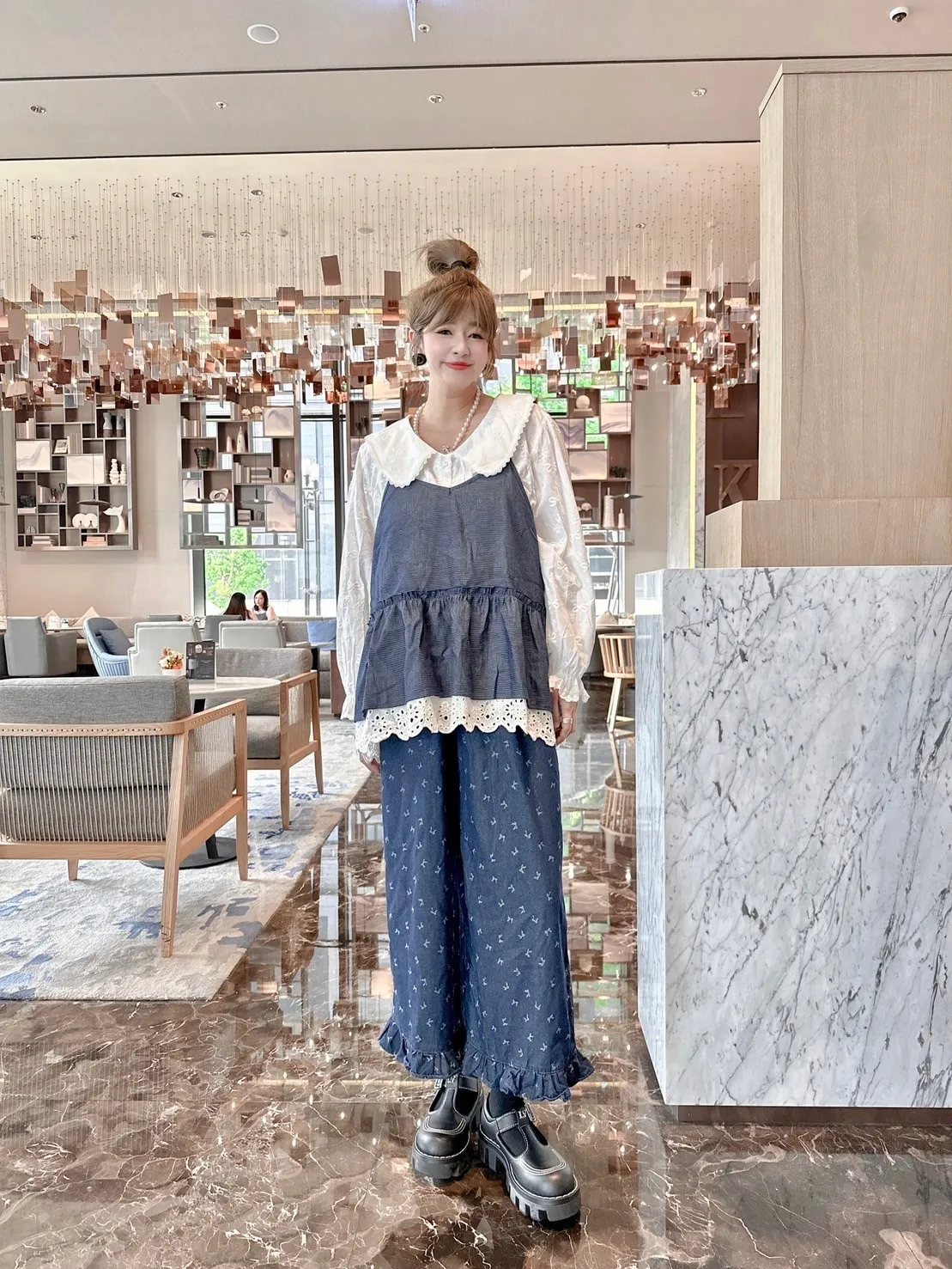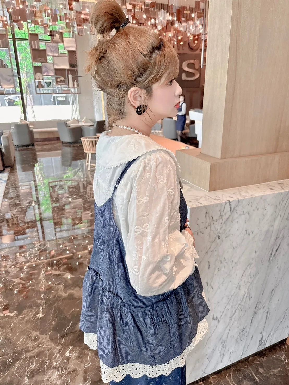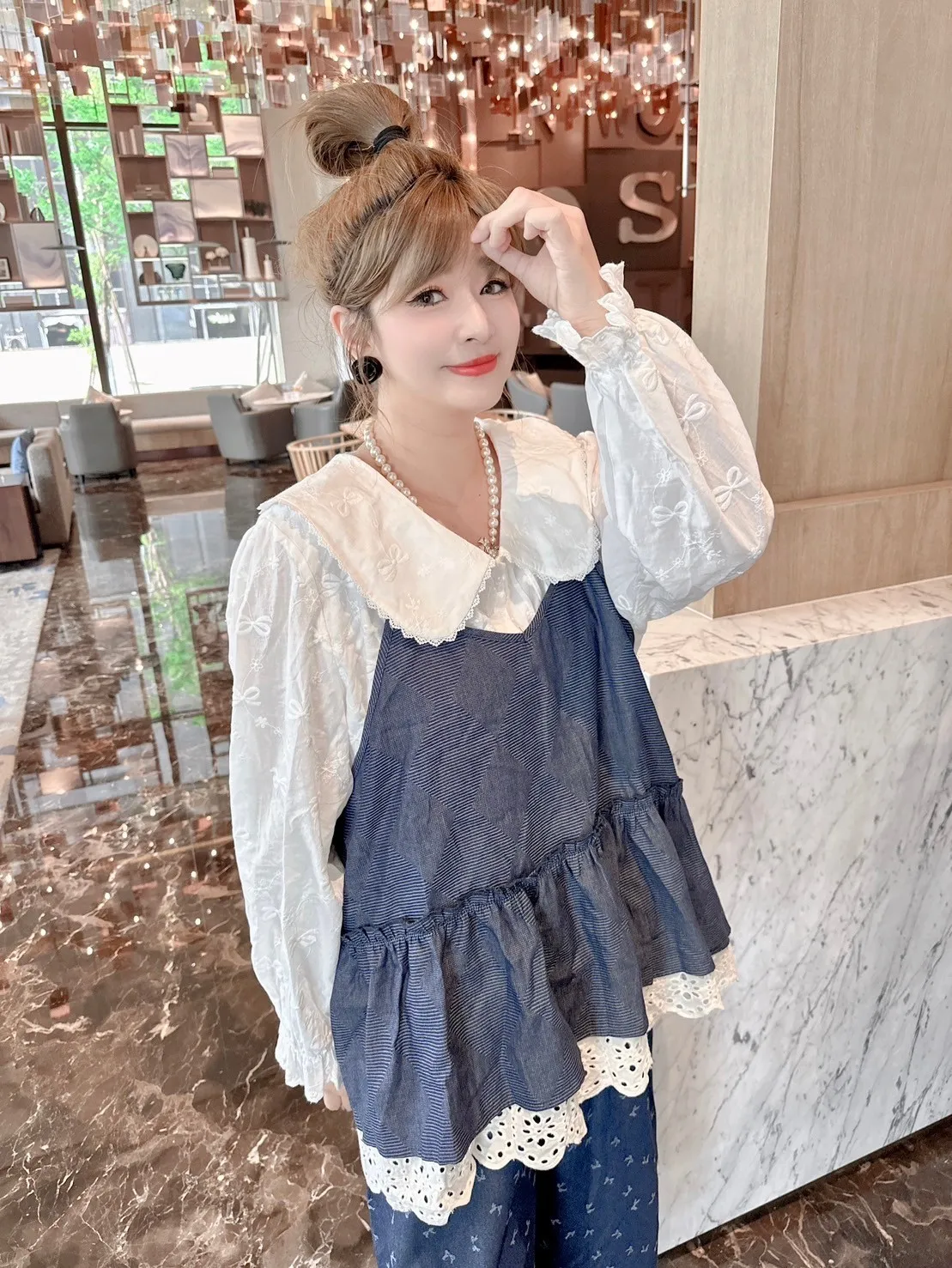 滿版蝴蝶結領片開釦上衣