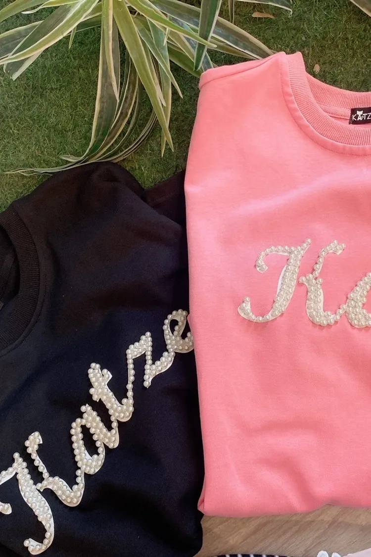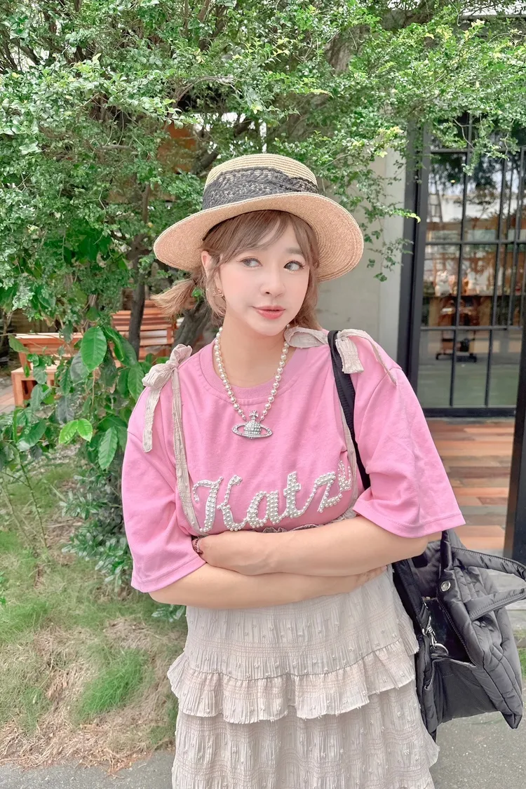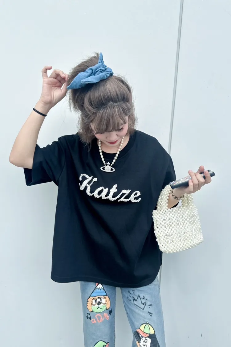 KATZE限量原創款-百搭珠珠英字LOGO上衣2色