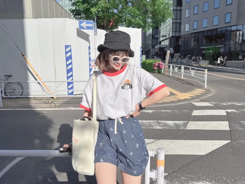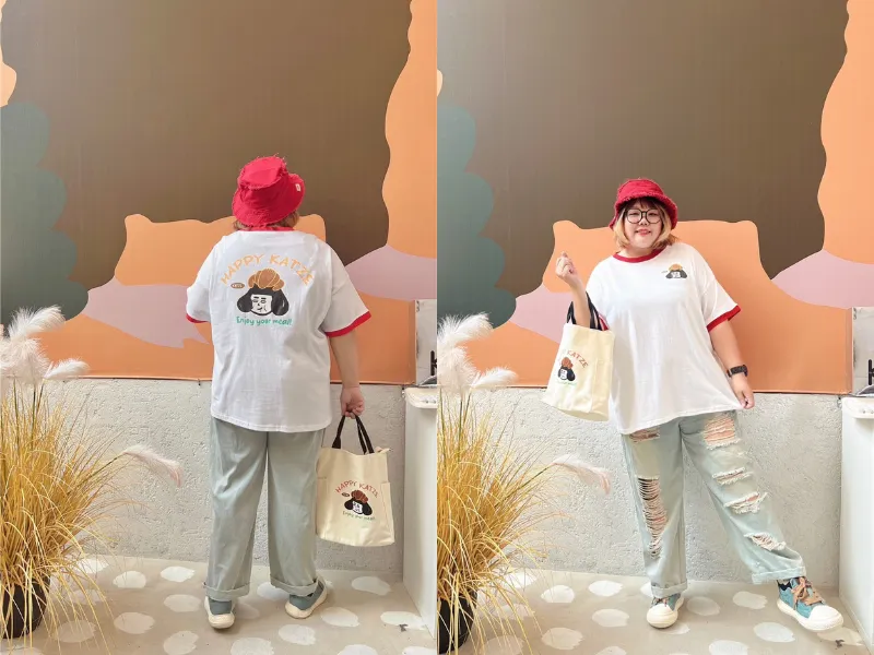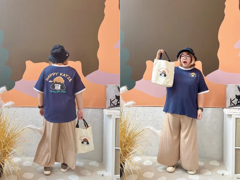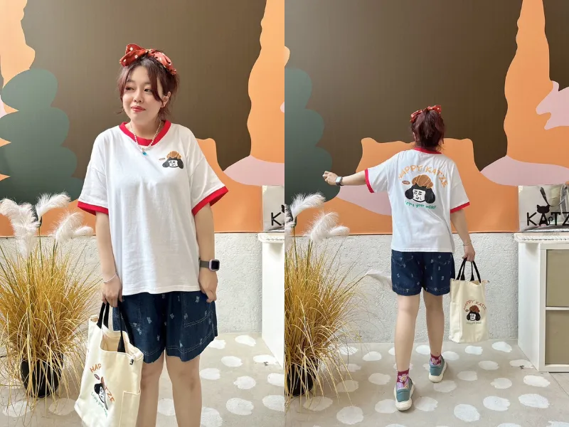 KATZE限量原創款-牛角麵包可愛肉妹撞色滾邊舒適上衣2色