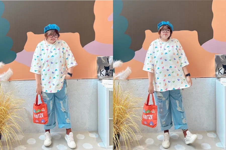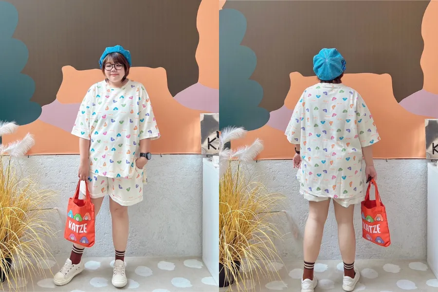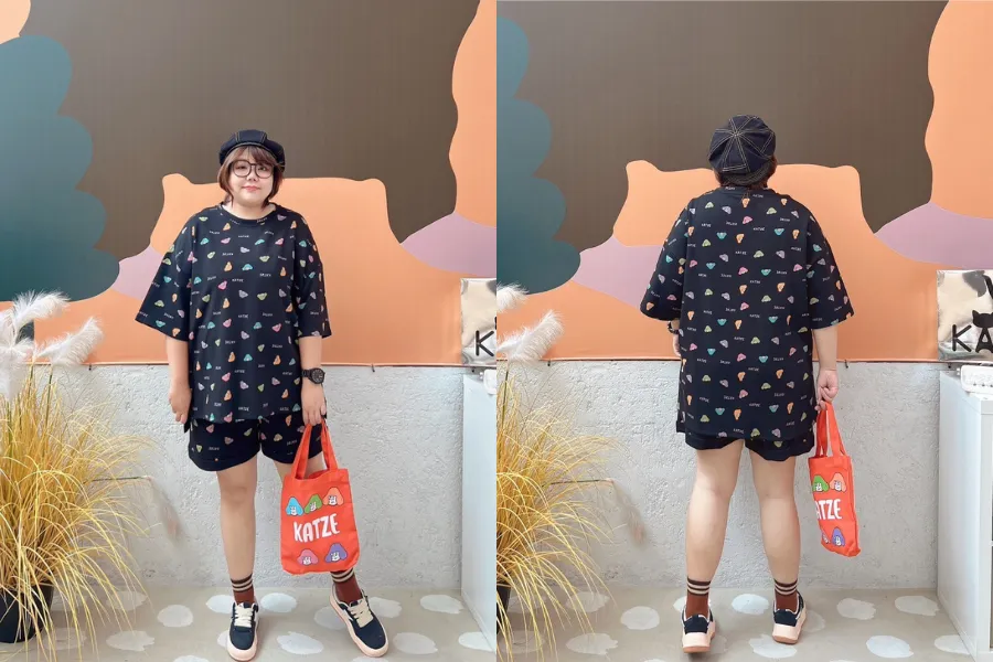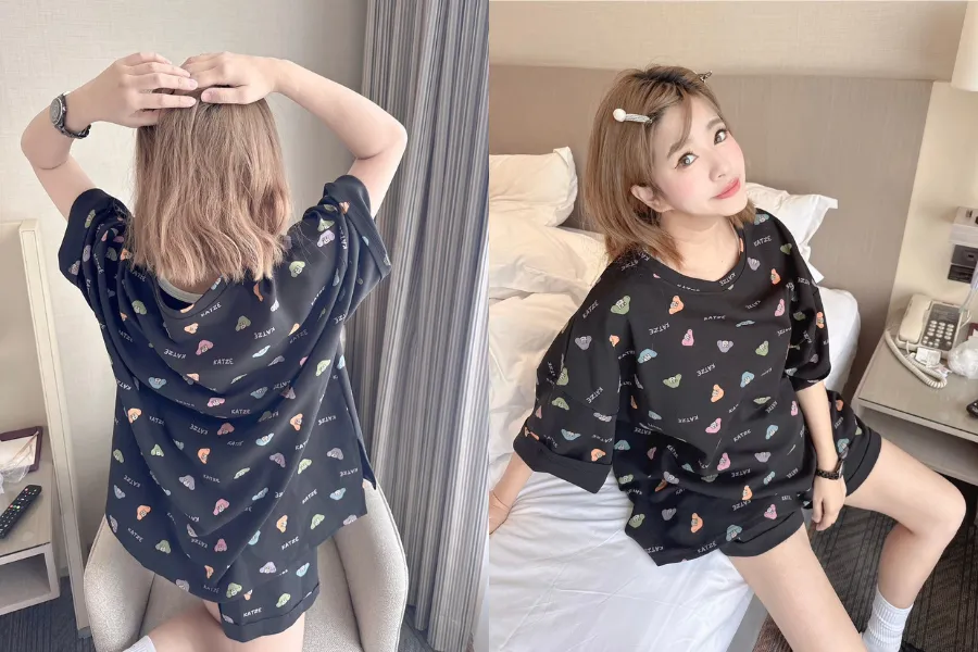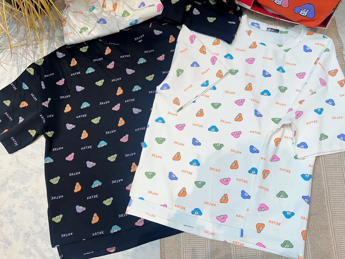 KATZE限量原創款-滿版彩色肉妹大頭印刷上衣 2色