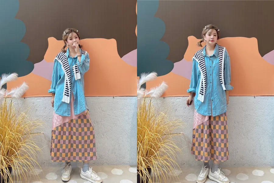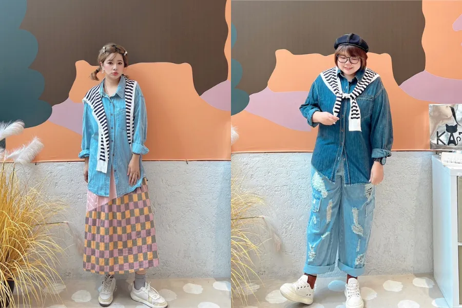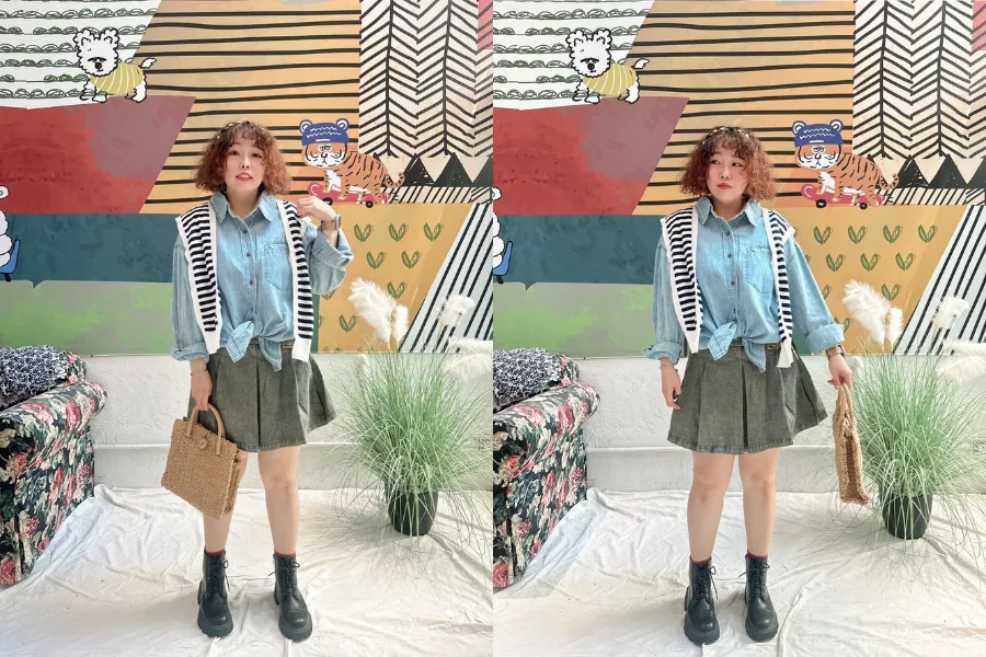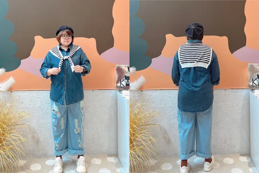 橫條披肩牛仔襯衫 2色