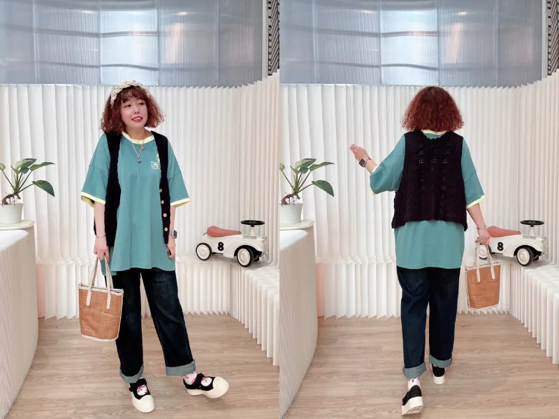 KATZE限量原創款-阿豆莫SHOPPING購物去撞色舒適上衣 2色