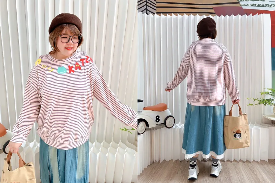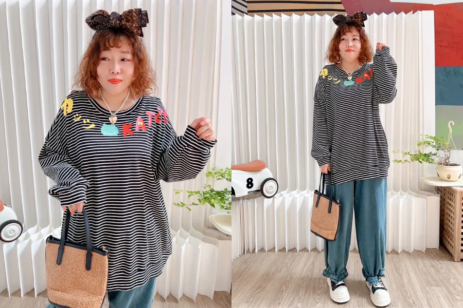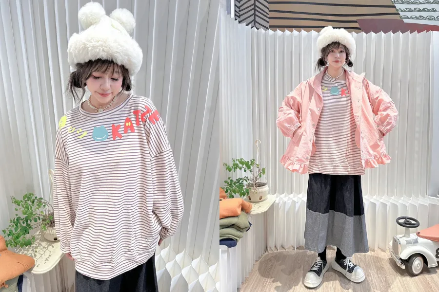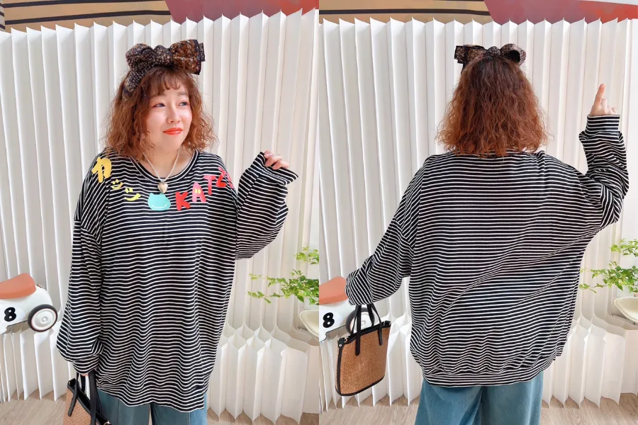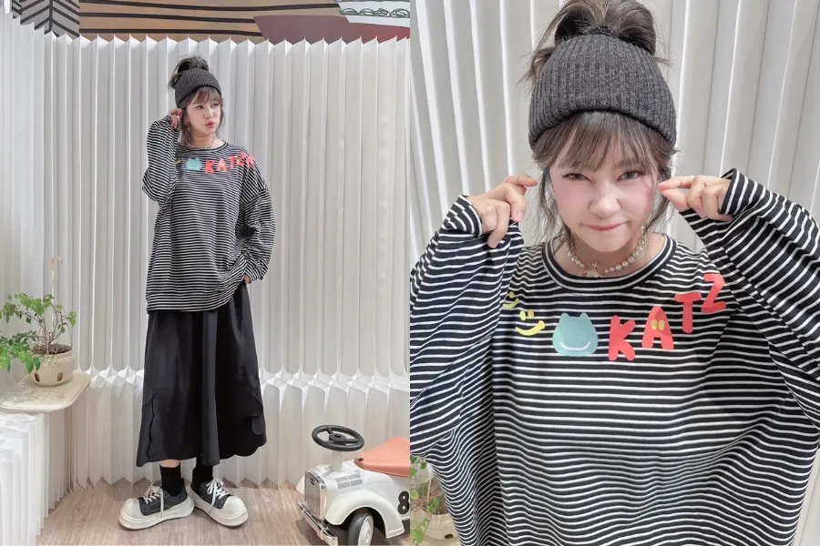 KATZE限量原創款-品牌英字橫條舒適上衣 2色