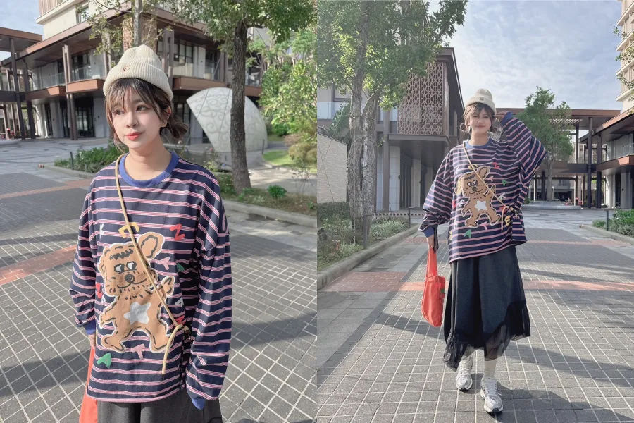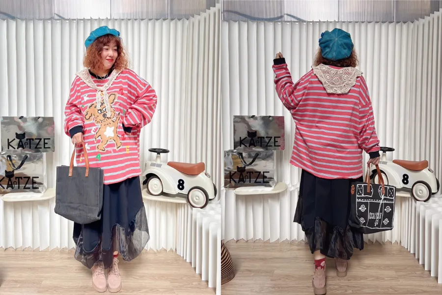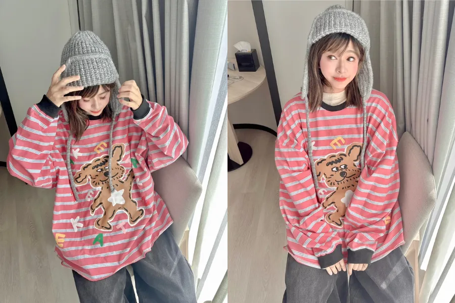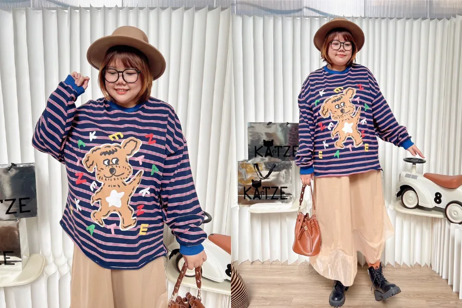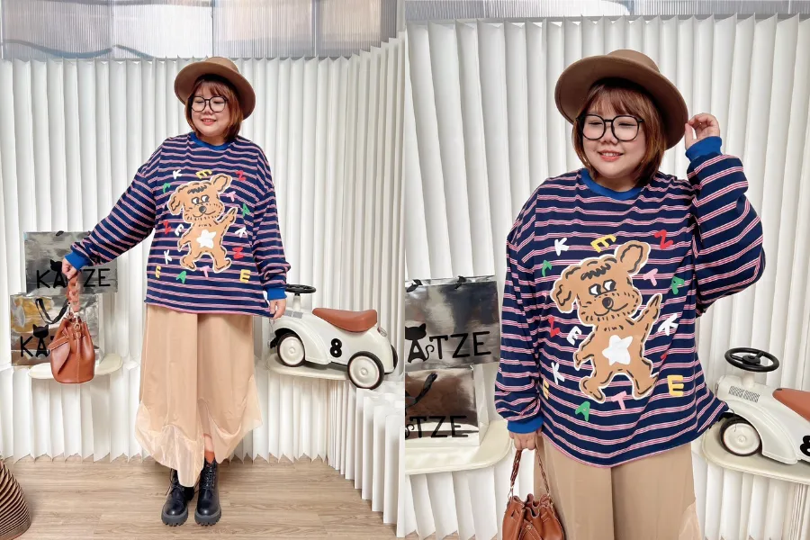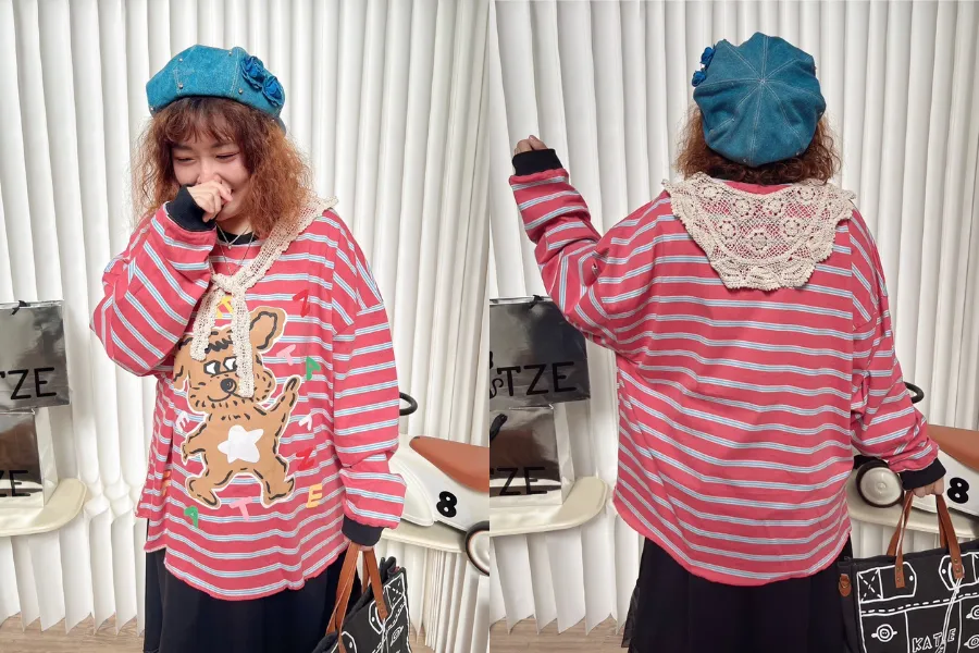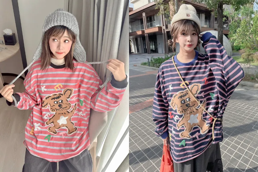 KATZE限量原創款-快樂小狗狗橫條舒適大學T 2色[現貨]