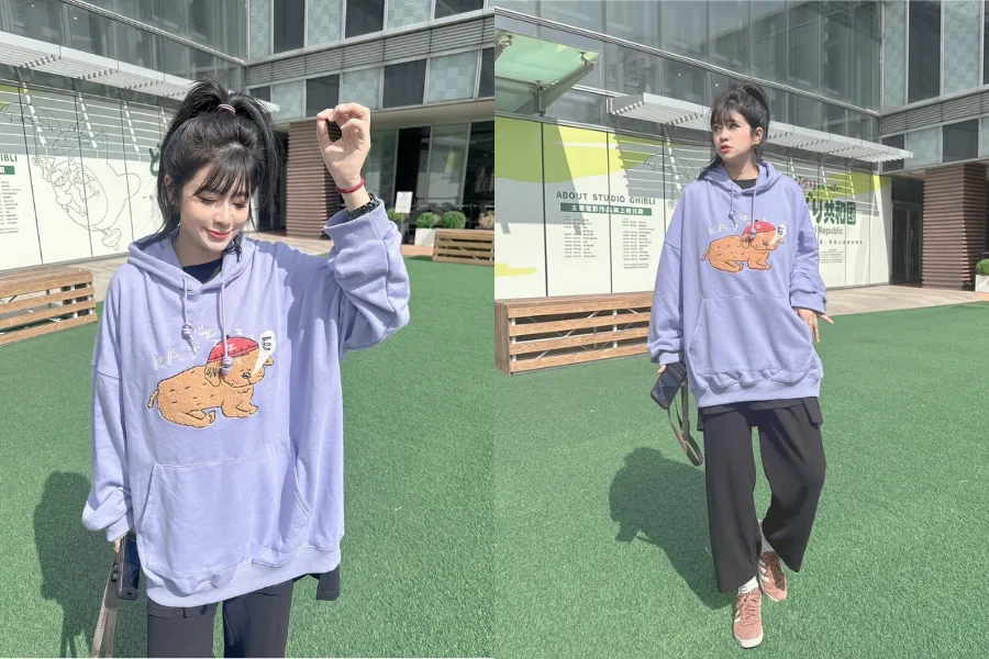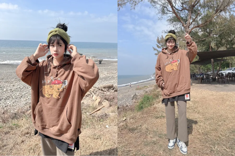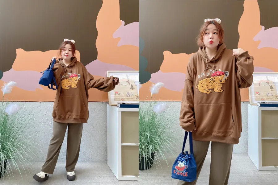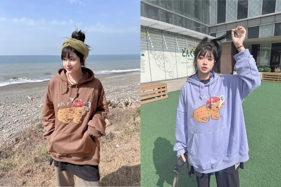 KATZE限量原創款-愛睡覺狗狗毛巾繡舒適連帽上衣 2色