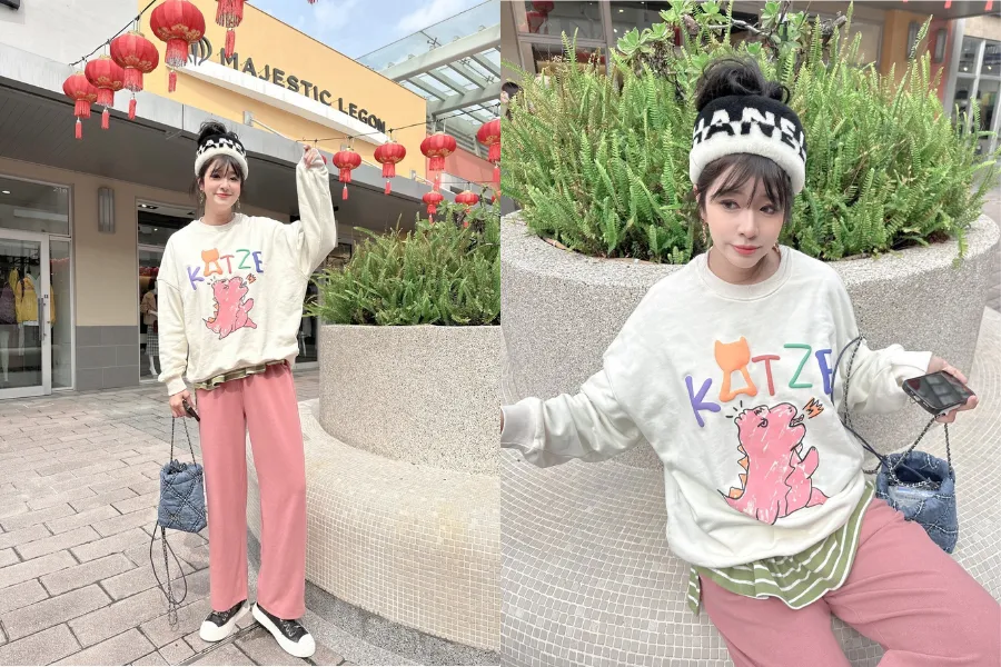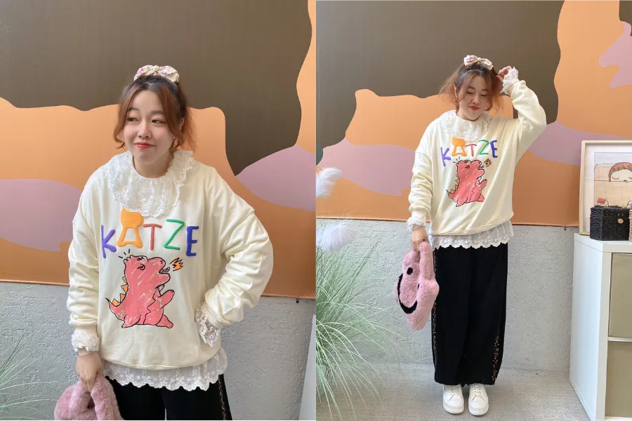 KATZE限量原創款-彩字LOGO噴火小恐龍大學T 2色