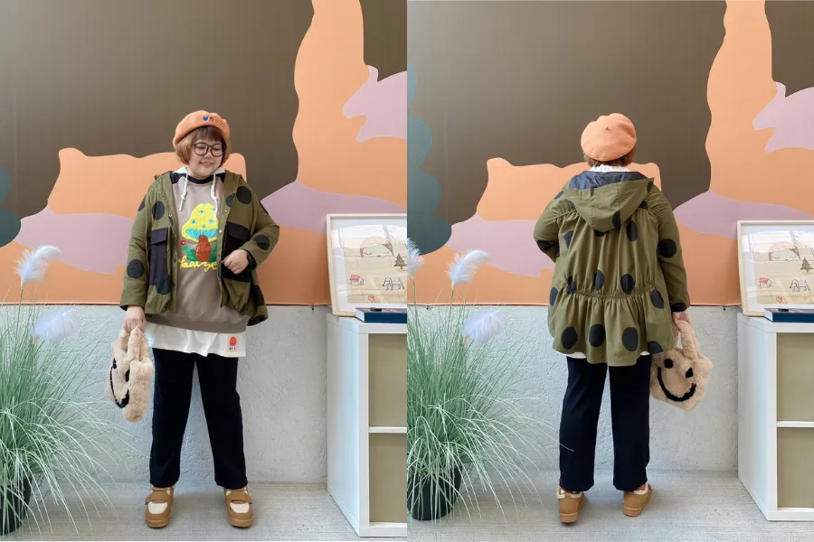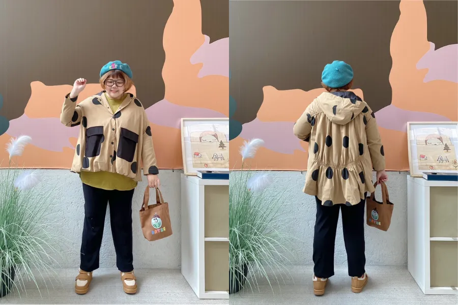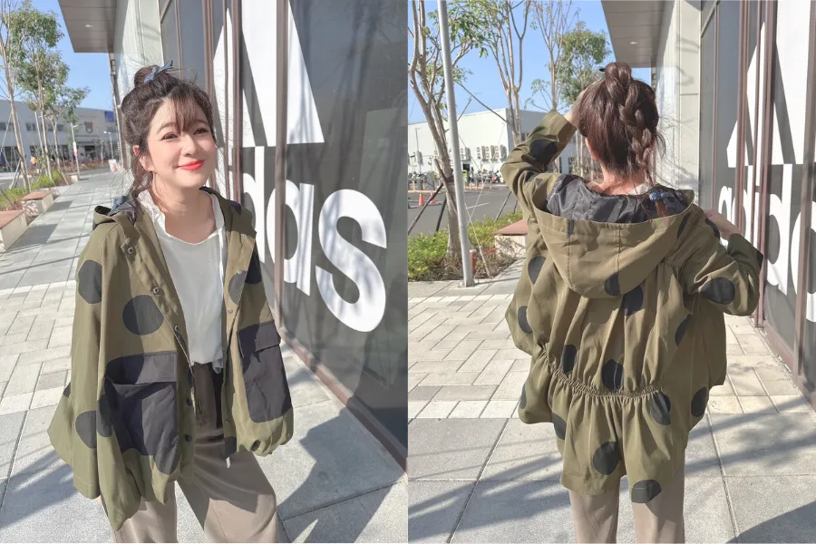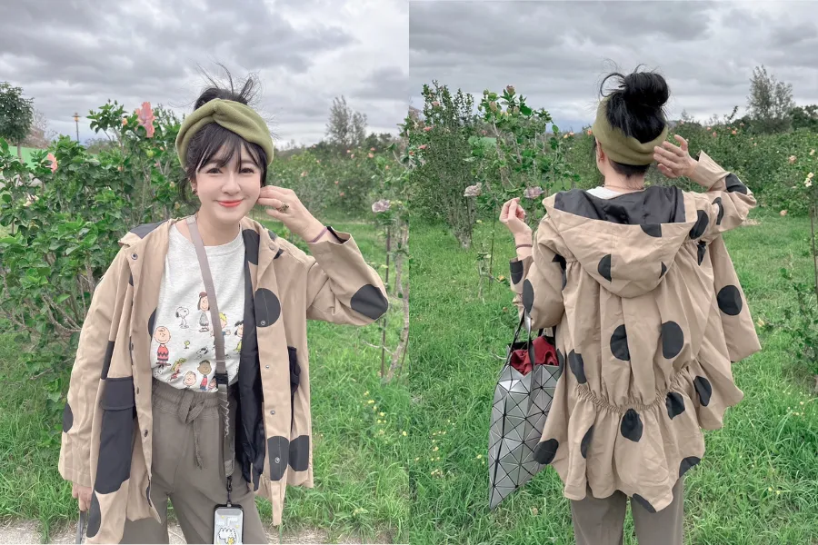 KATZE限量原創款-點點連帽荷葉大口袋風衣外套 2色