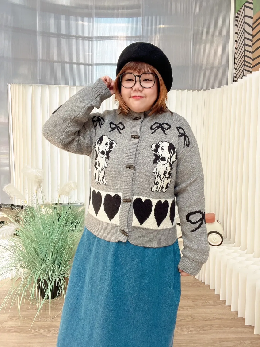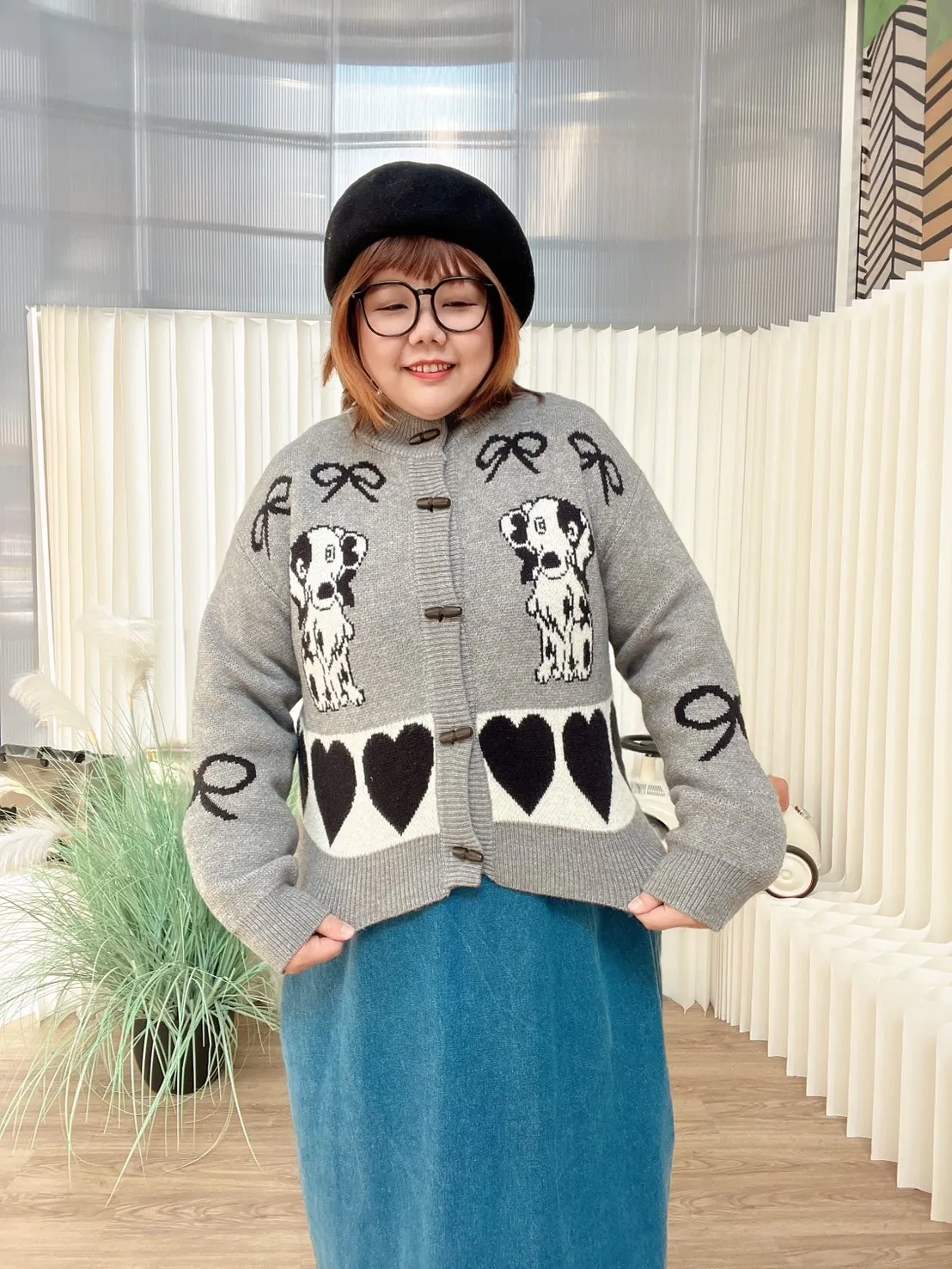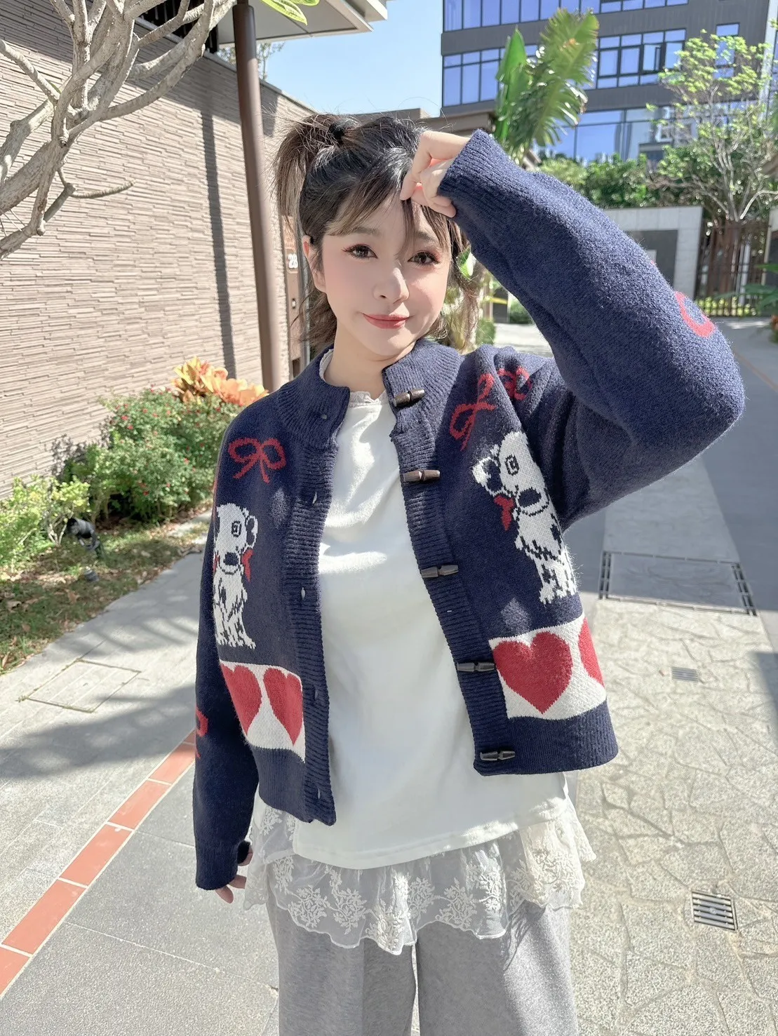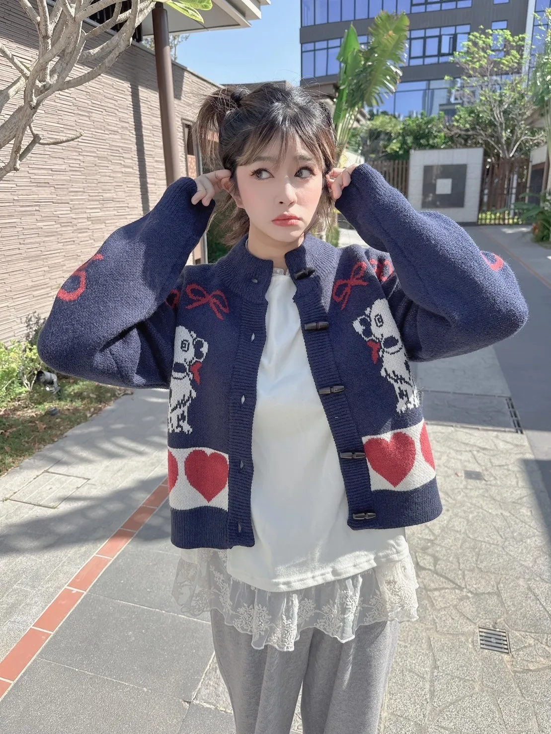 狗狗愛心牛角釦針織外套 2色