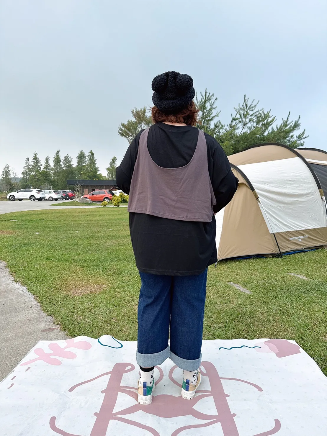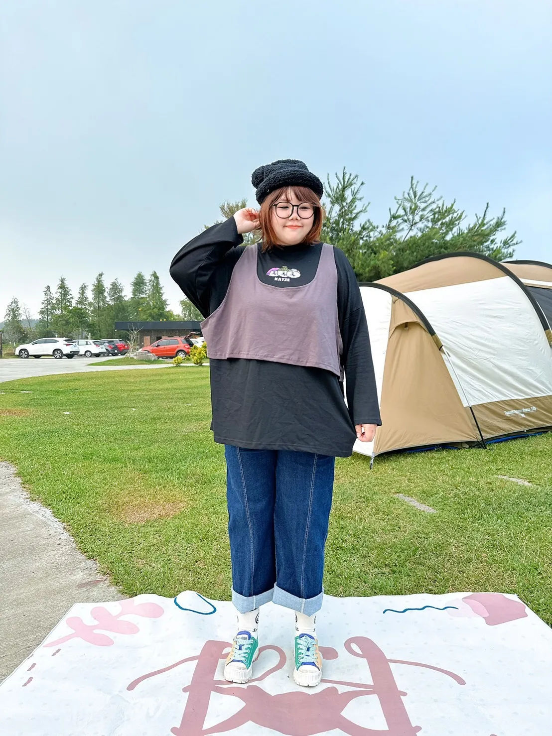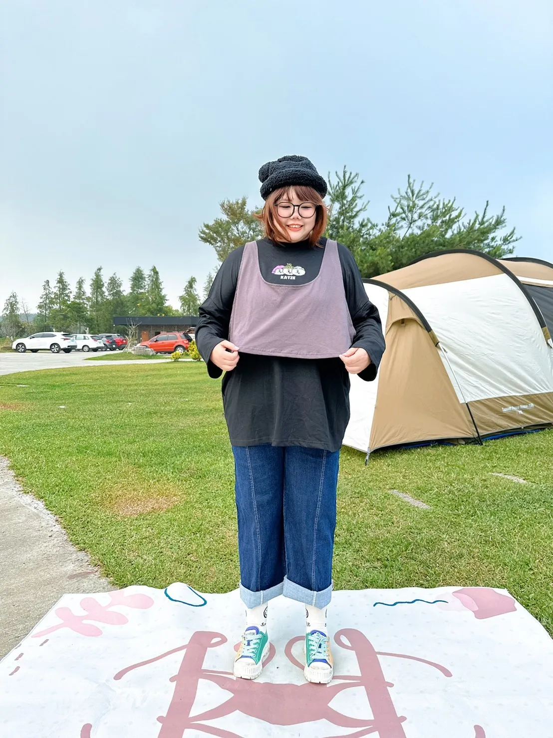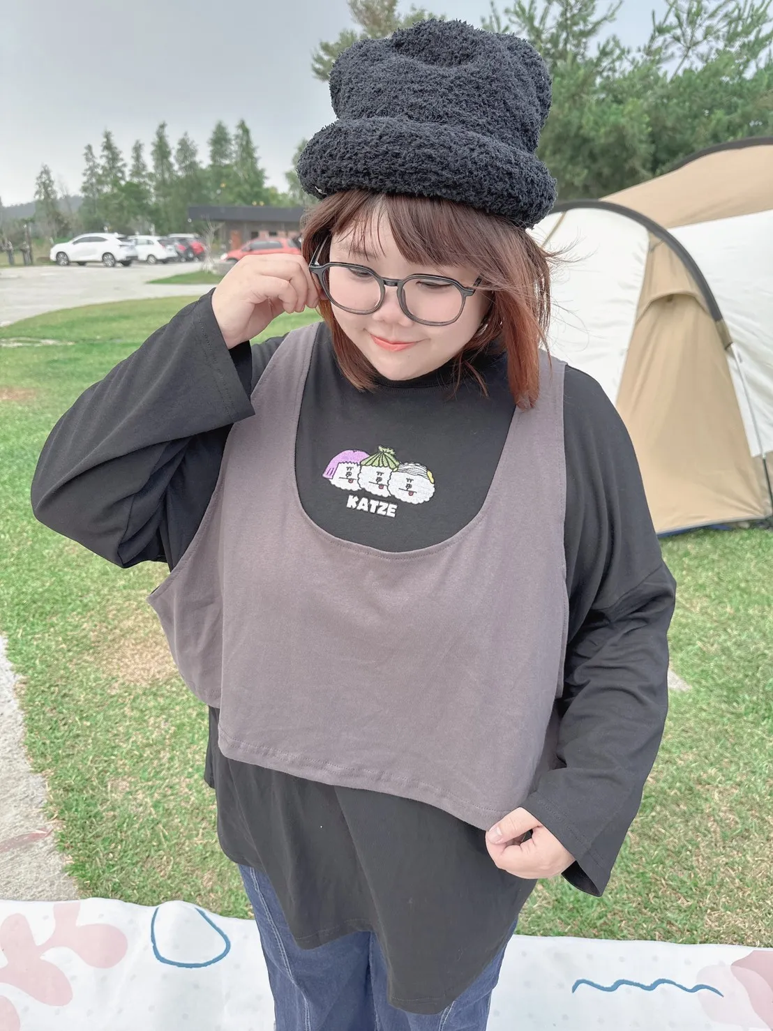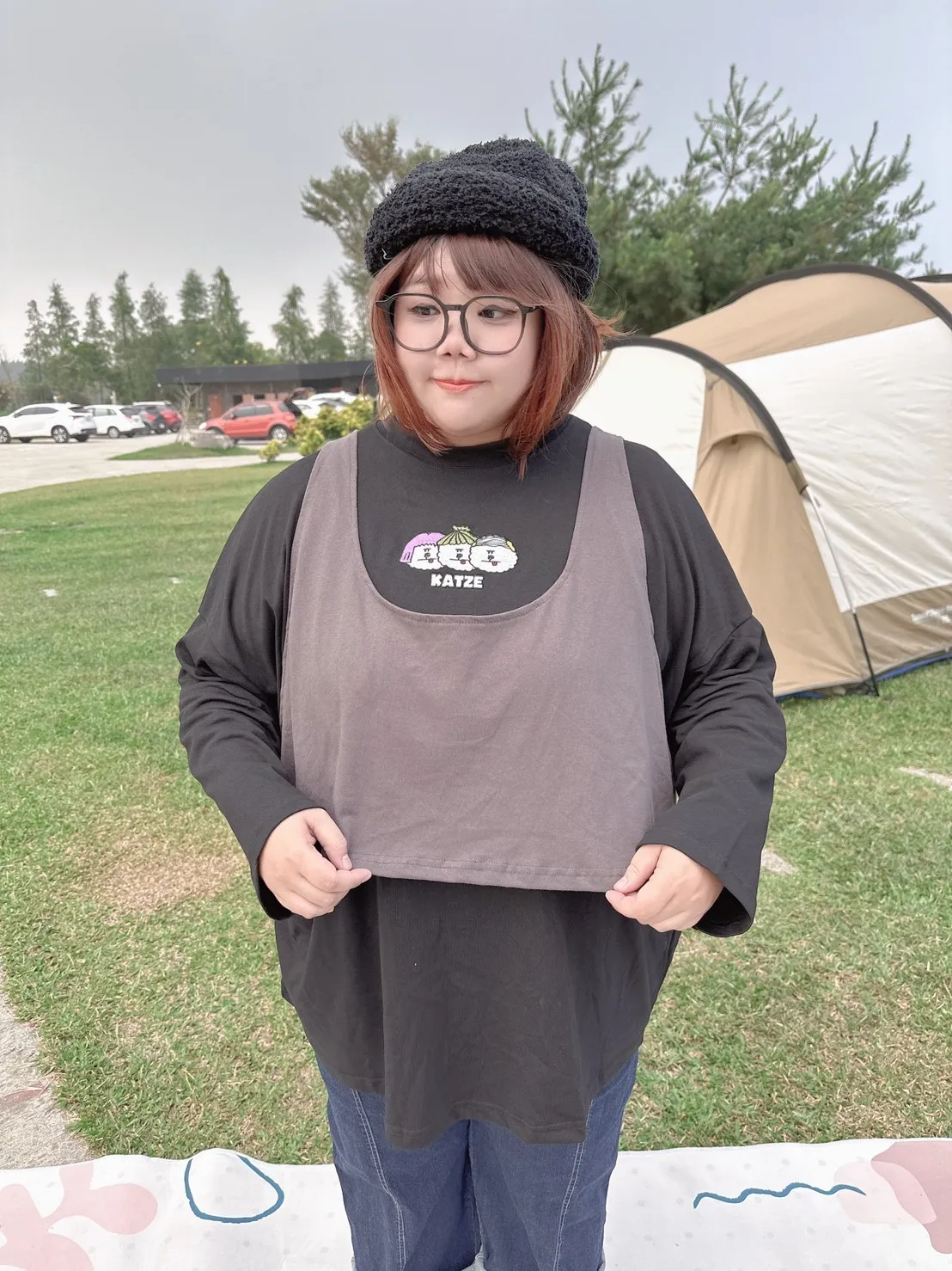 KATZE限量原創款-日系阿QQ一家人刺繡質感假兩件式上衣 2色
