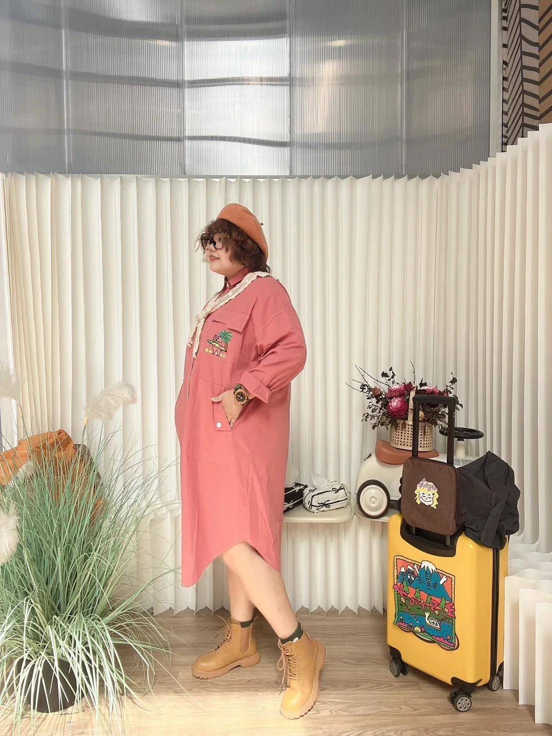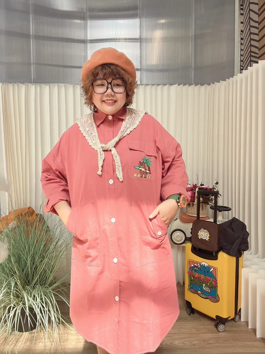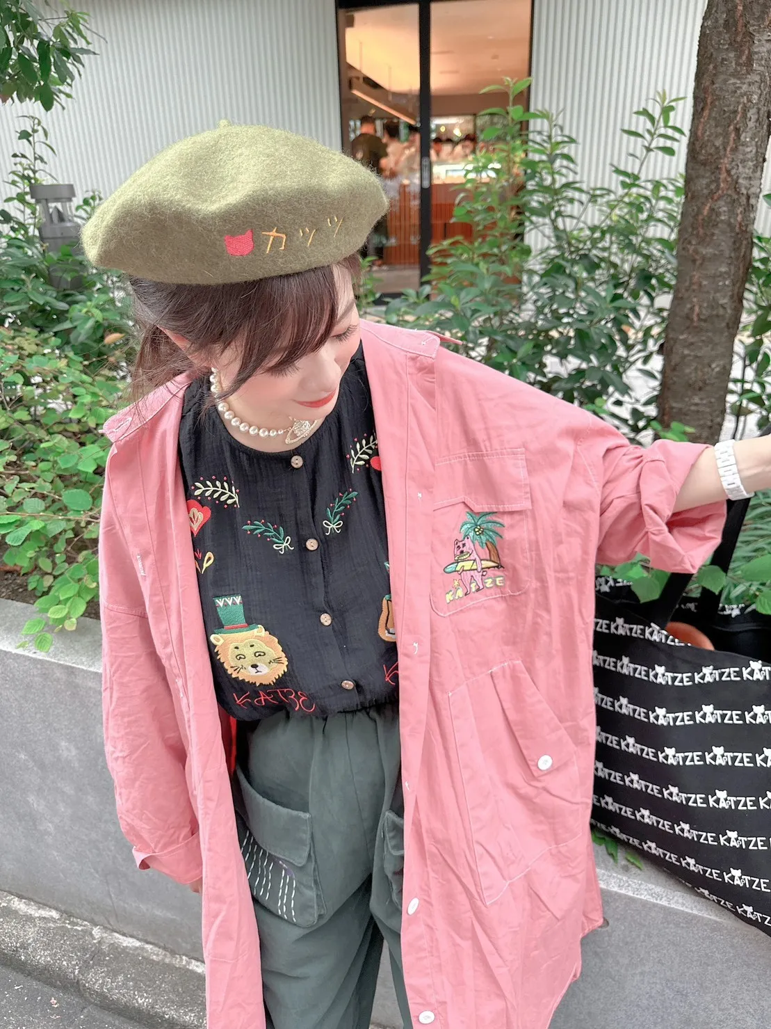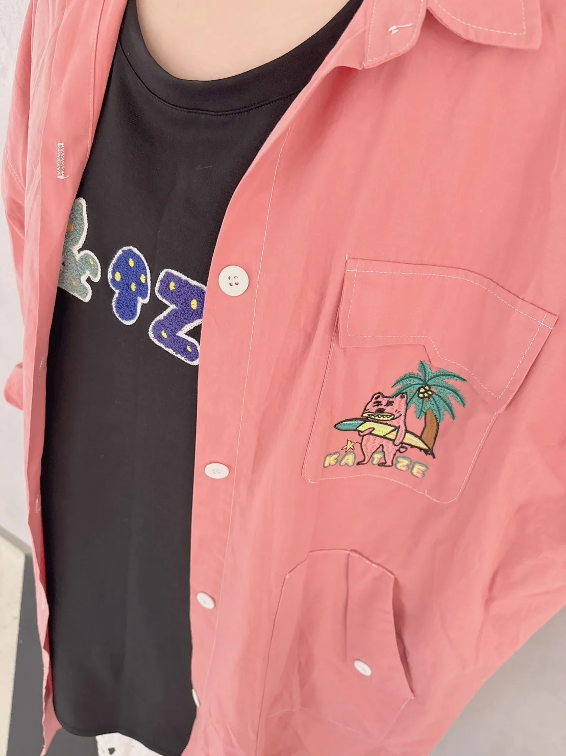 KATZE限量原創款-刺繡阿強明線大口袋長板襯衫洋
