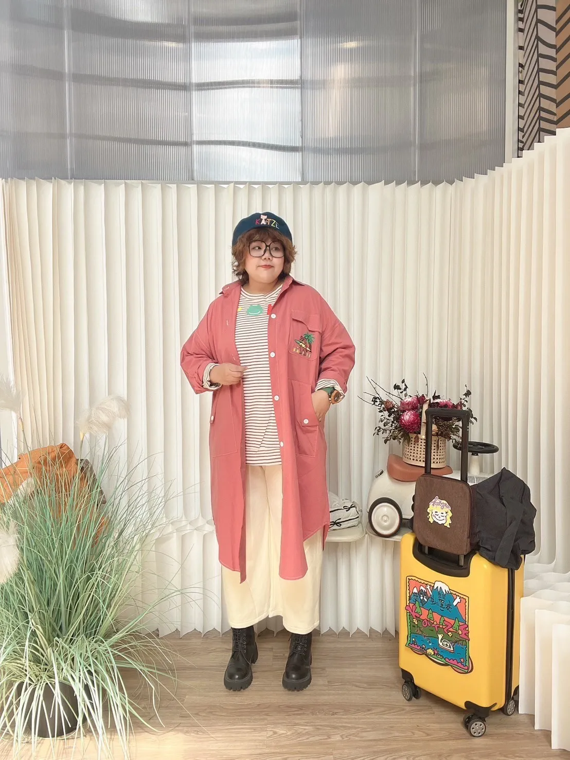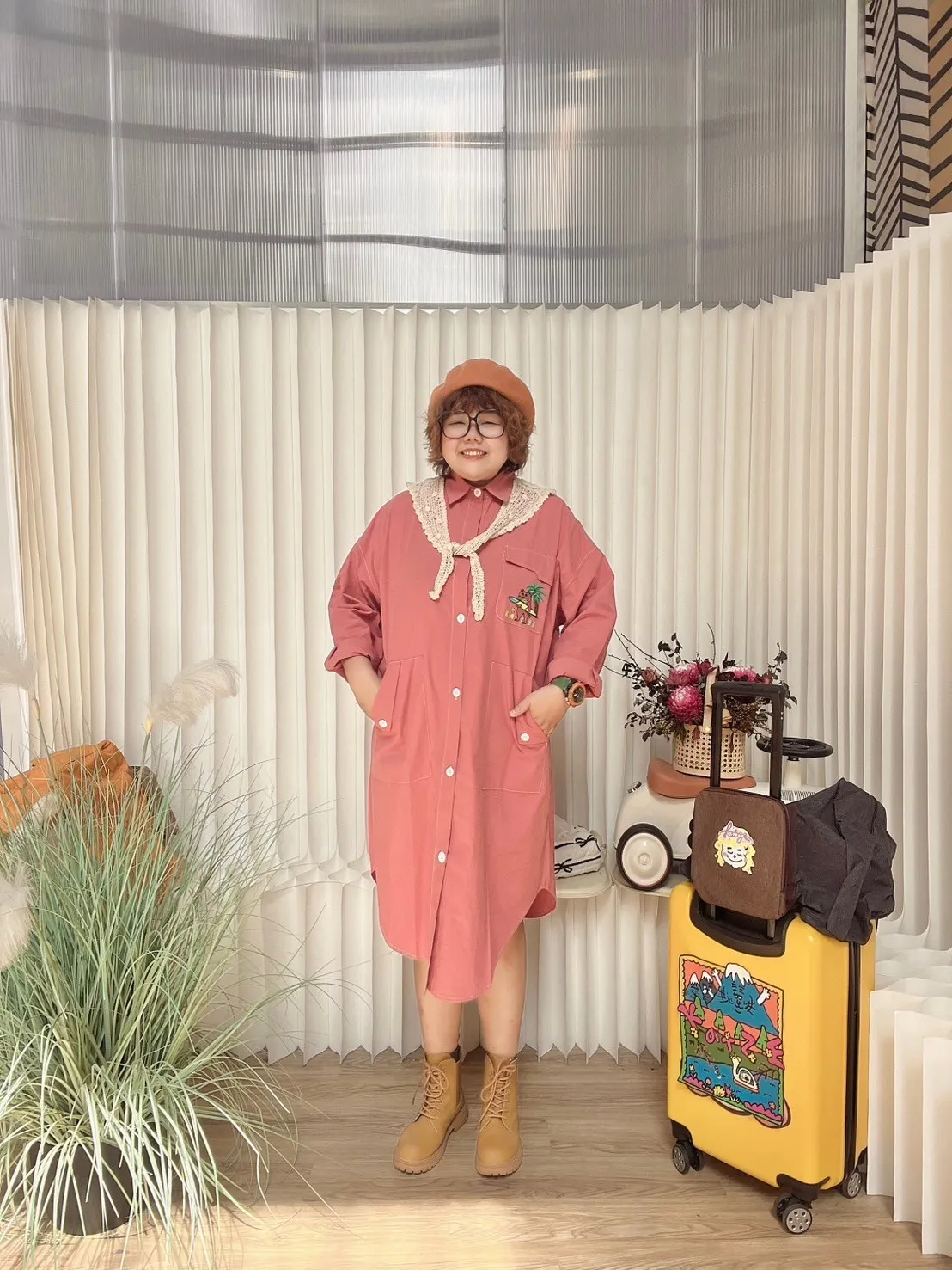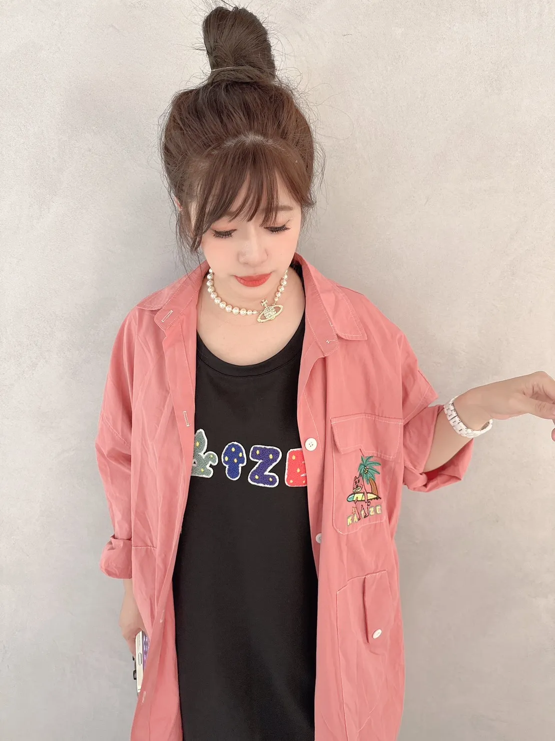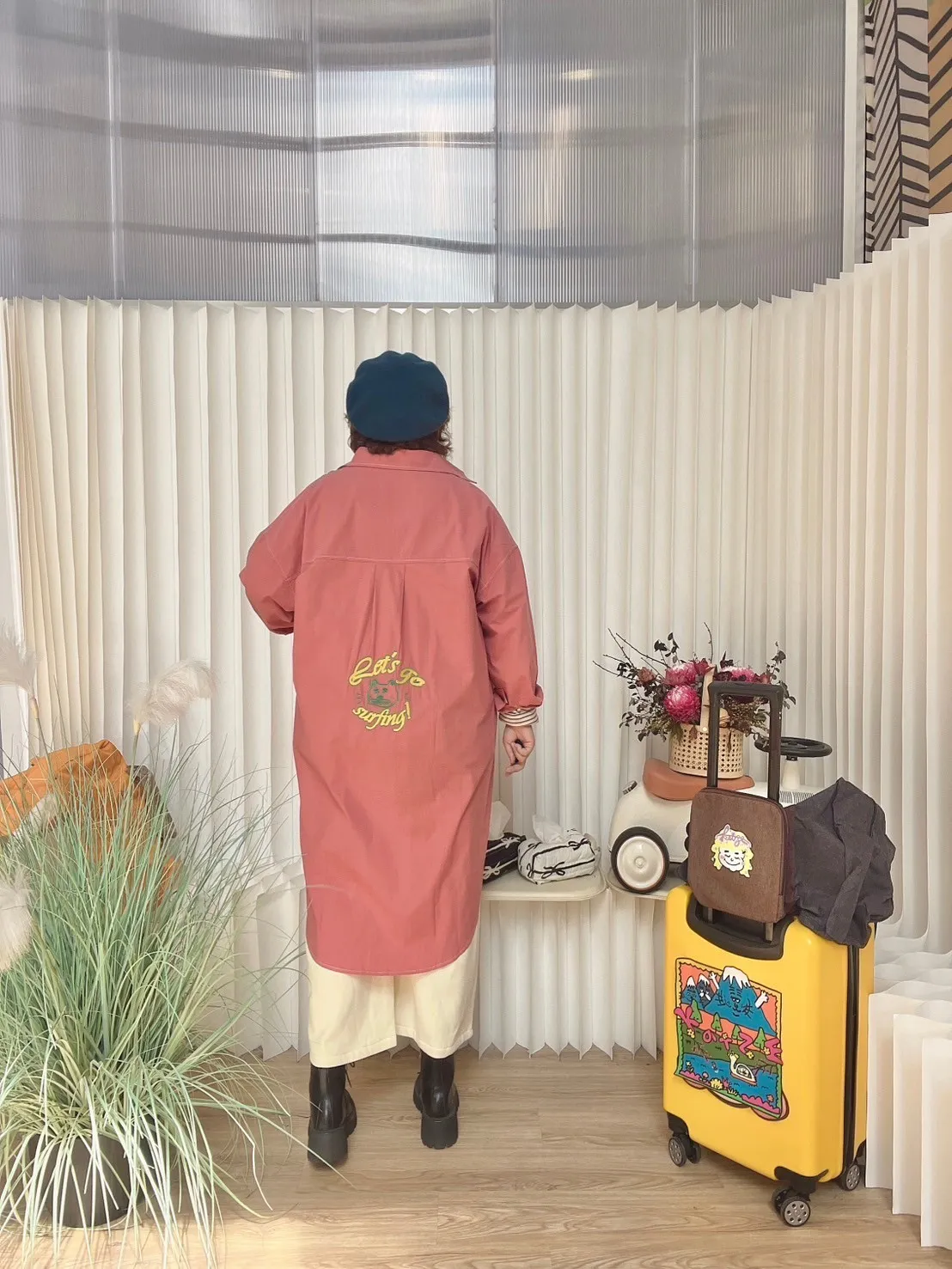 KATZE限量原創款-刺繡阿強明線大口袋長板襯衫洋