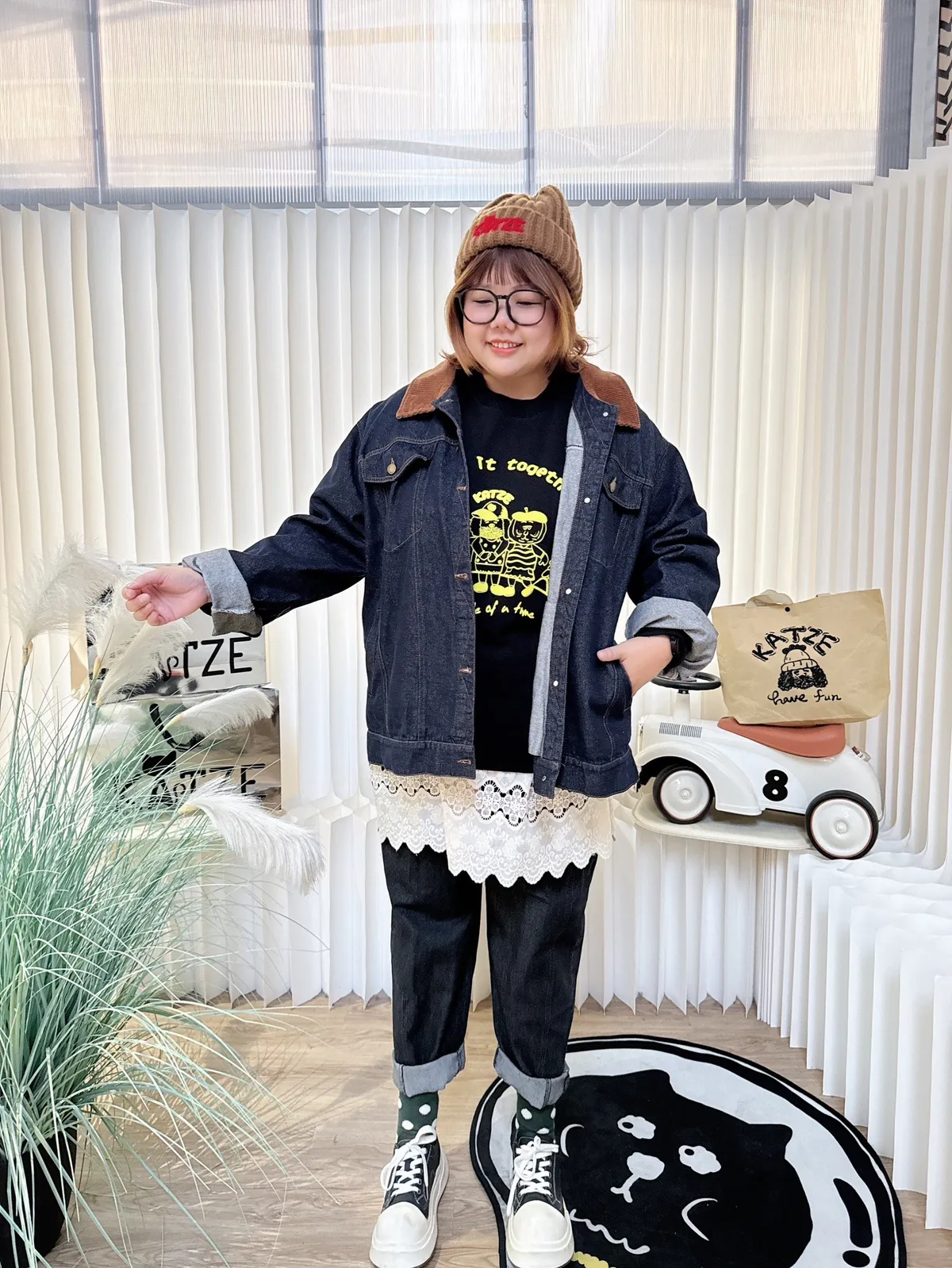 KATZE限量原創款-毛巾繡肉包牛仔外套