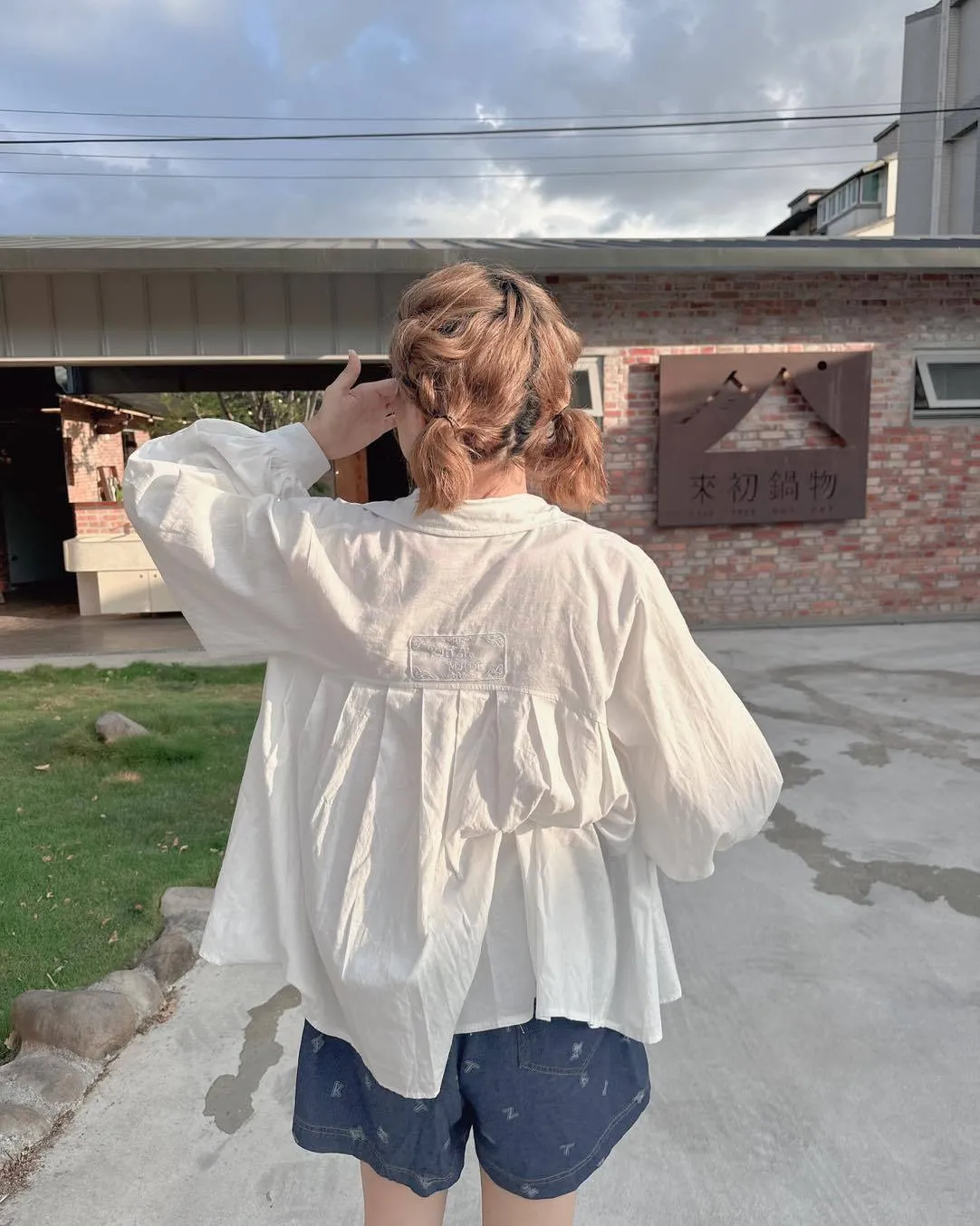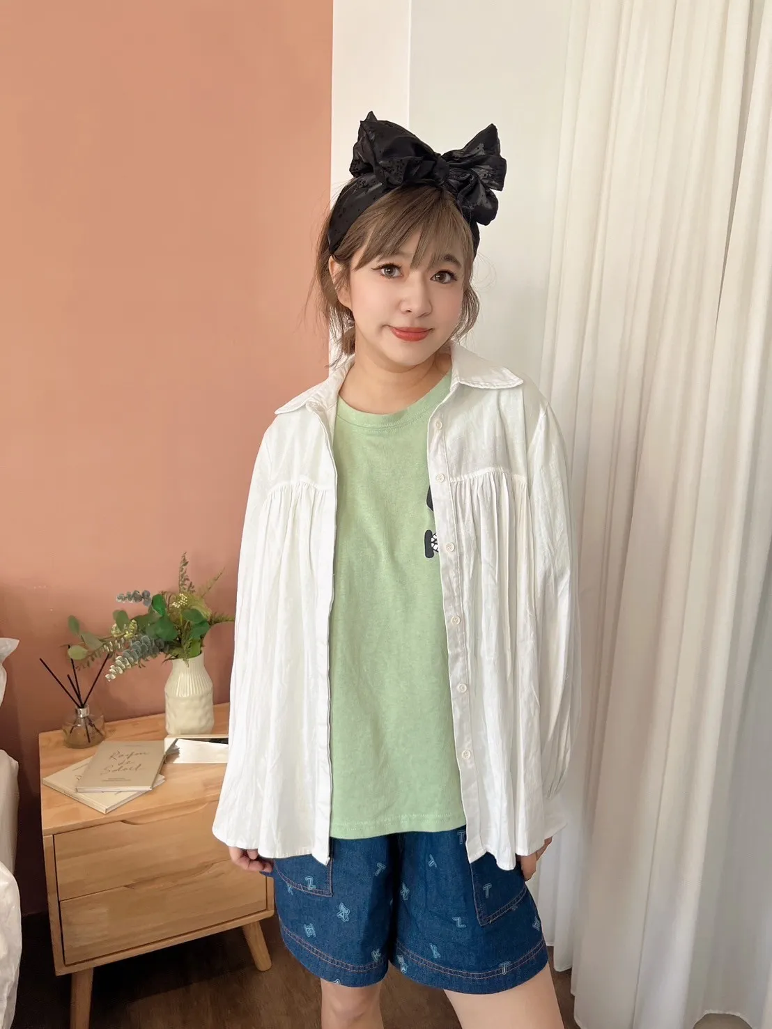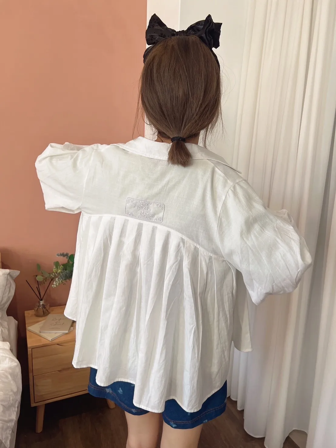 KATZE限量原創款-打摺蕾絲布標素面百搭襯衫 2色