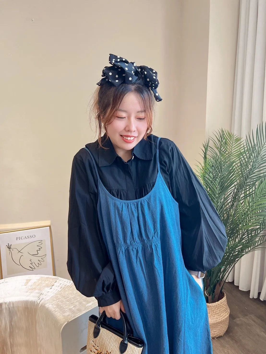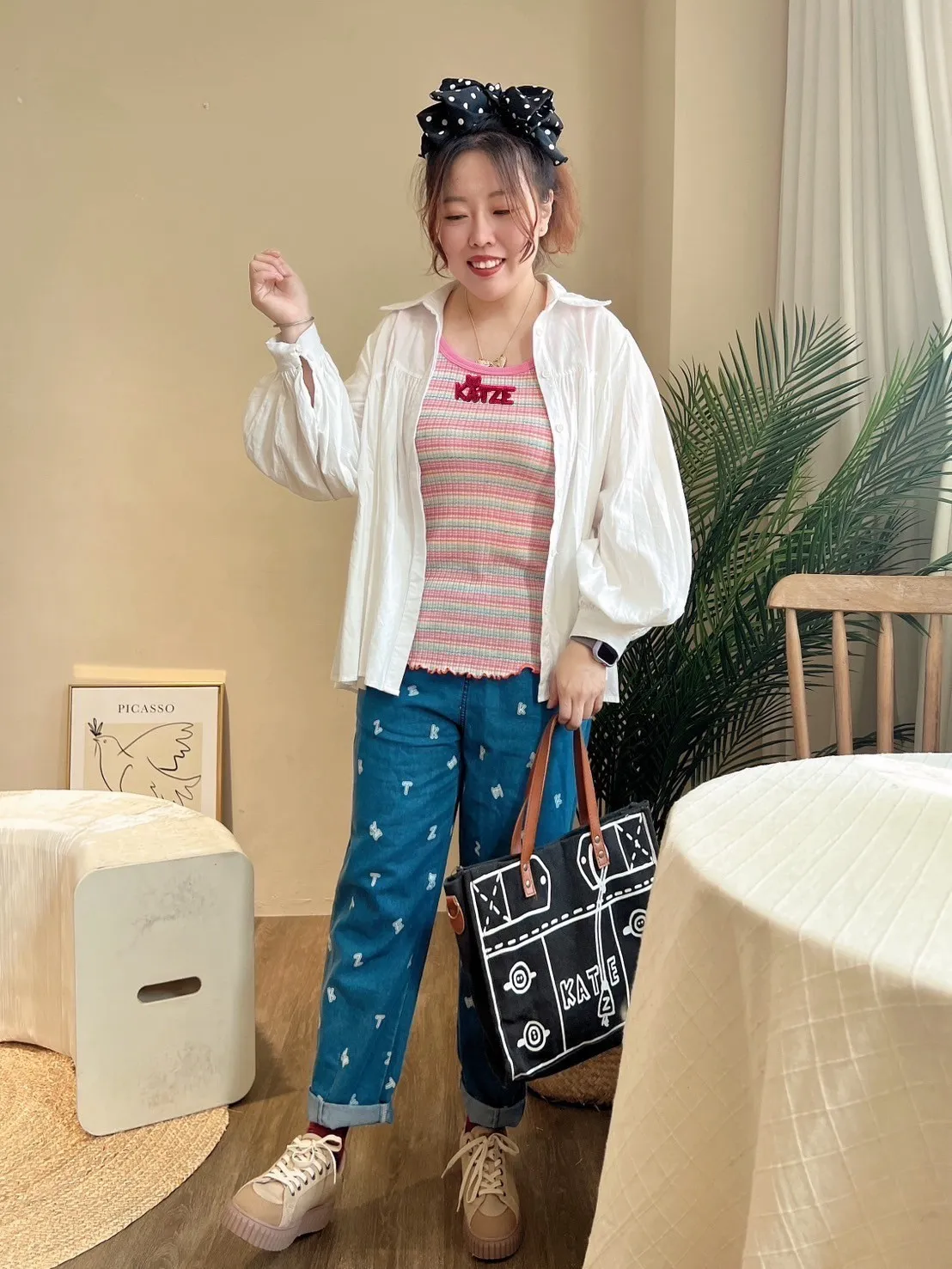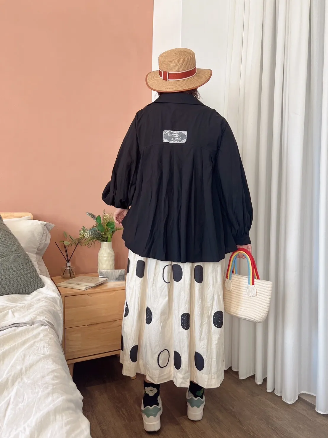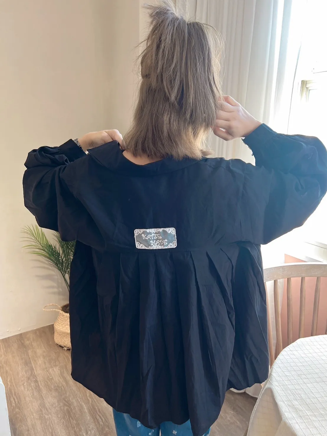 KATZE限量原創款-打摺蕾絲布標素面百搭襯衫 2色