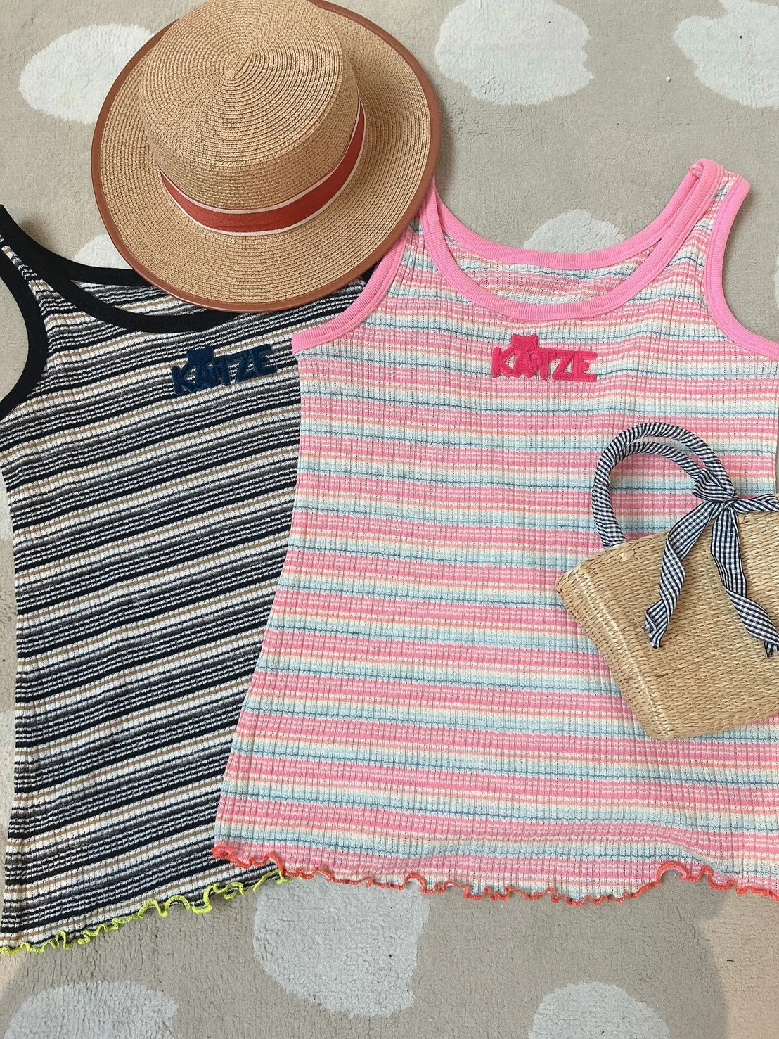 KATZE限量原創款-LOGO標超彈性橫條背心 2色