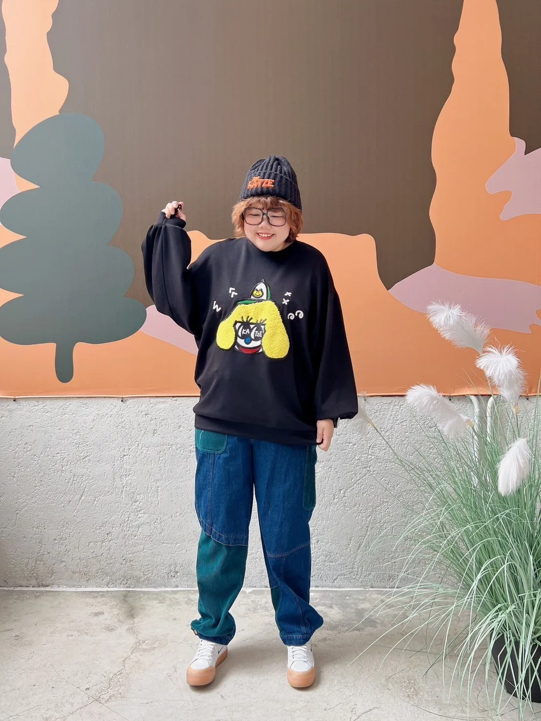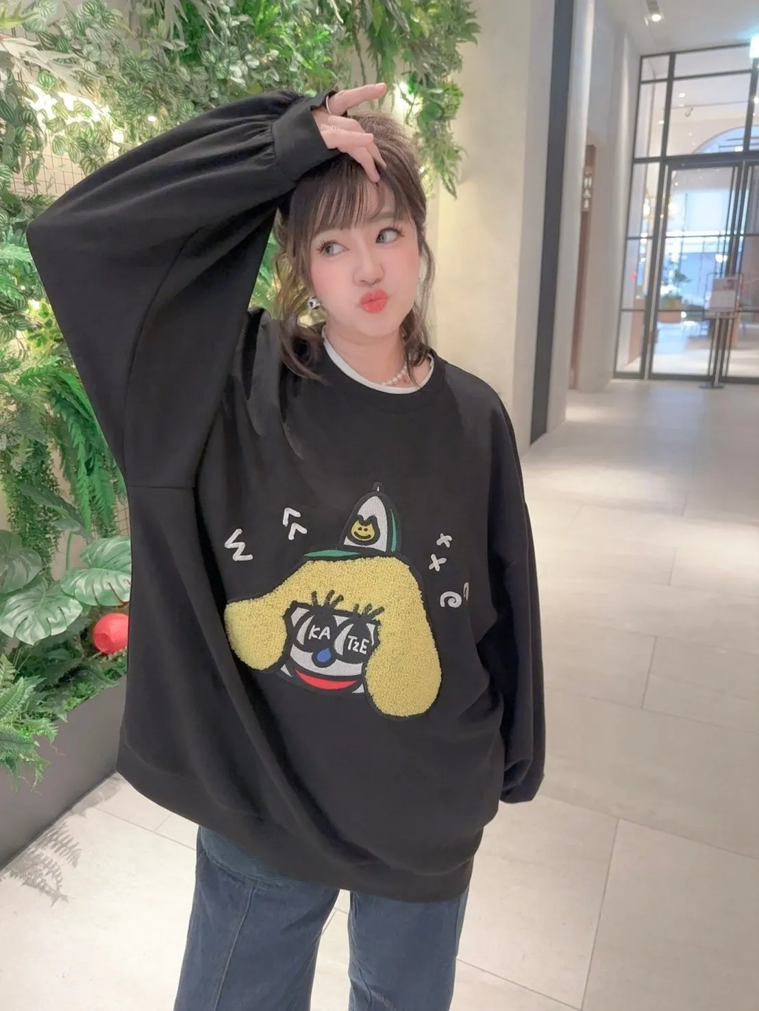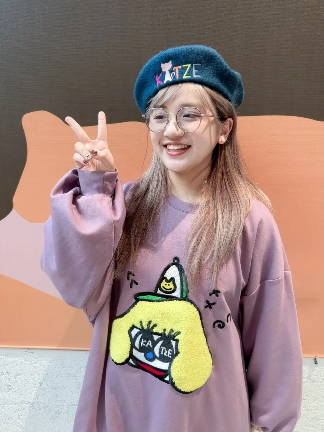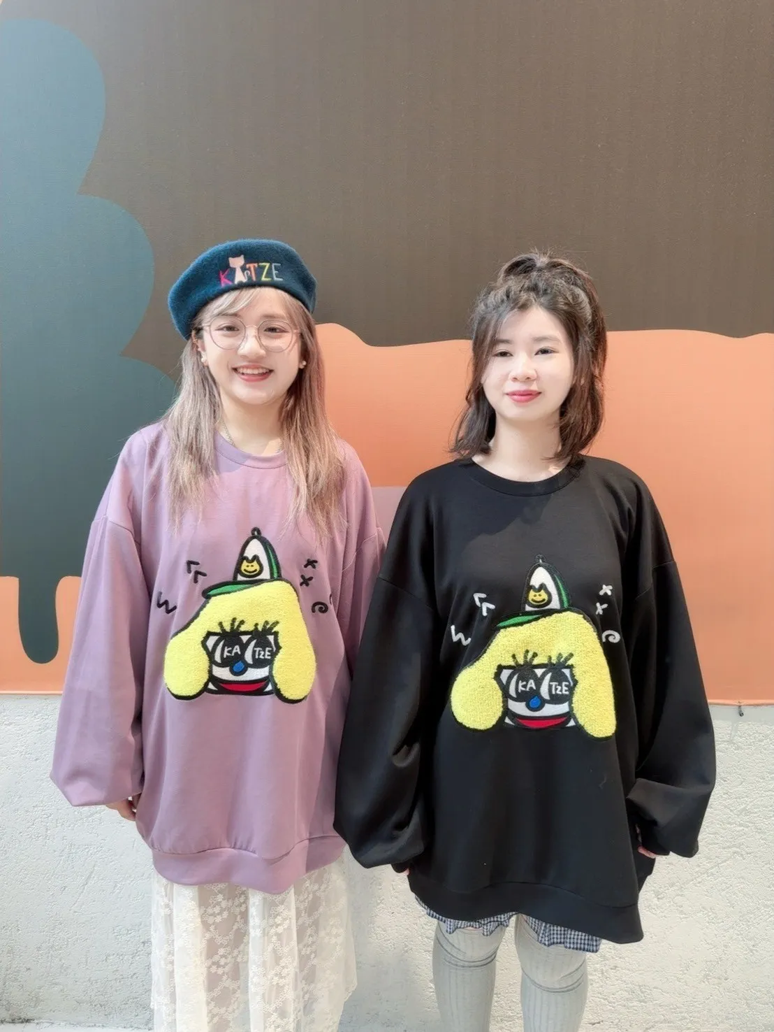 KATZE限量原創款-大眼肉妹毛巾繡舒適大學T 2色