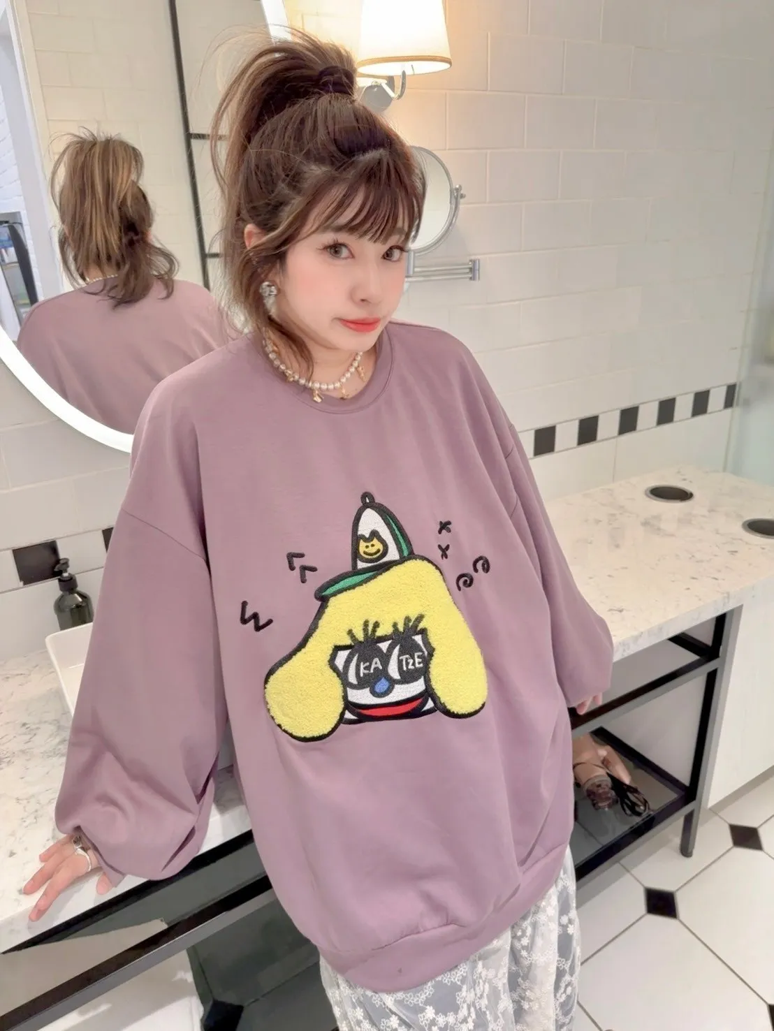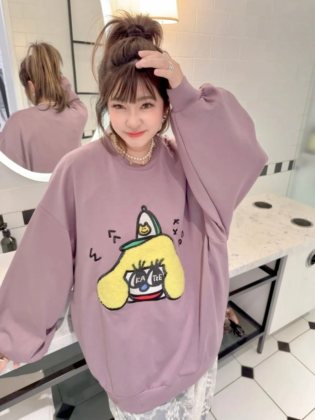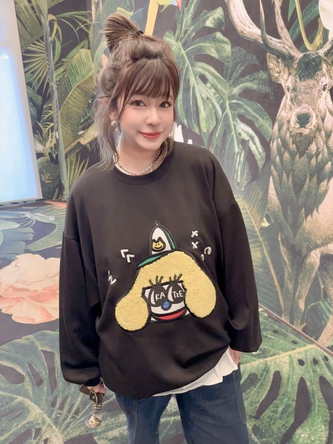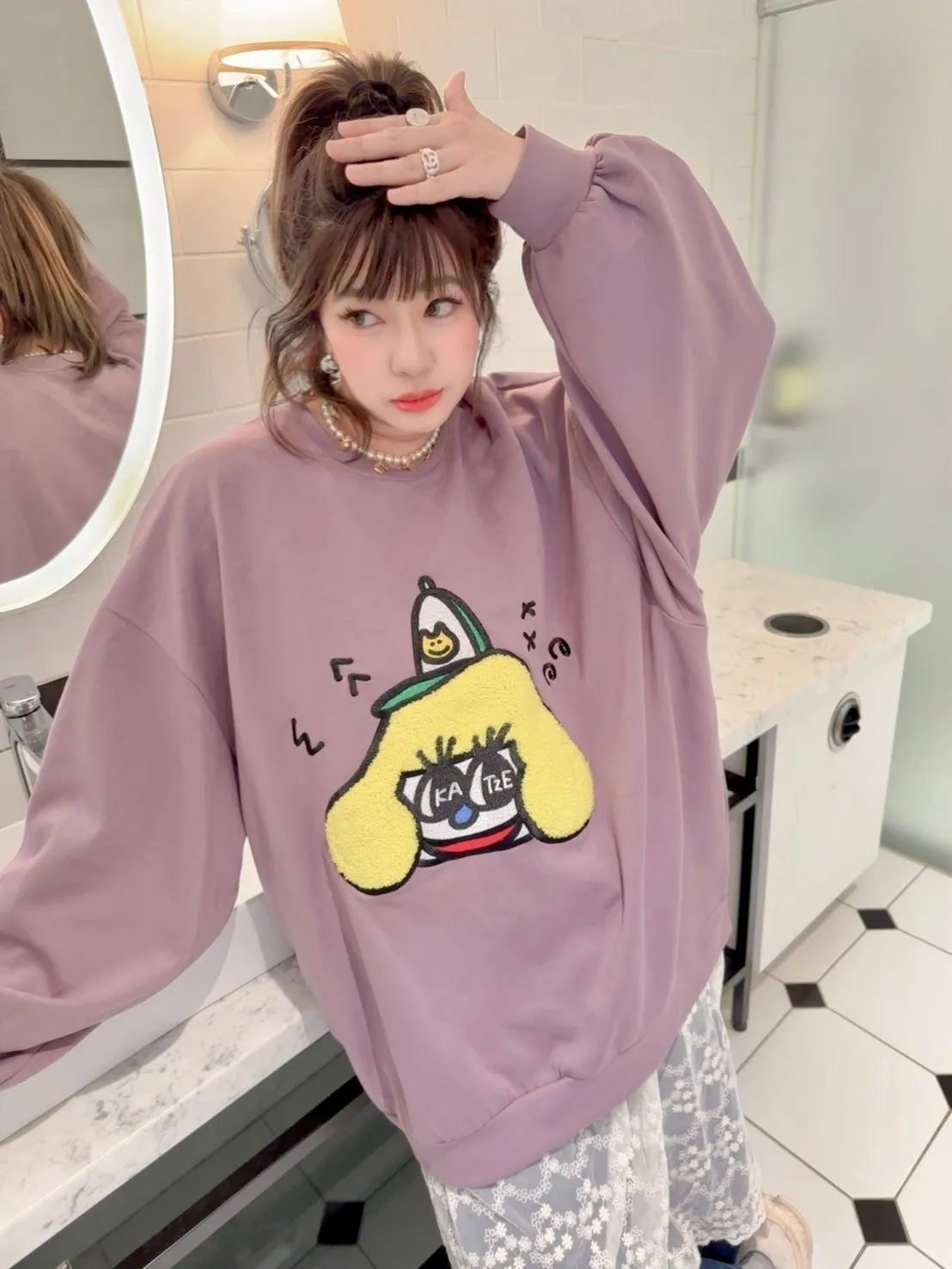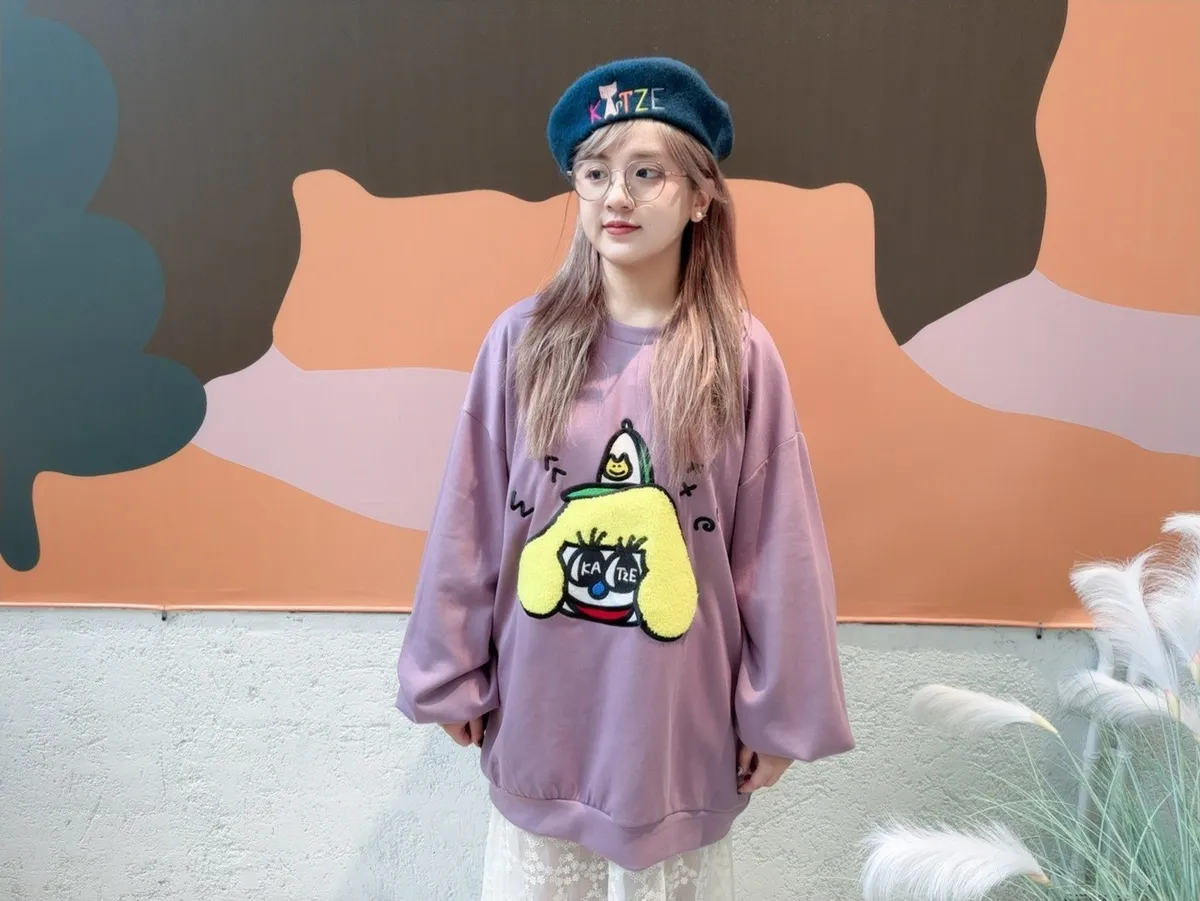 KATZE限量原創款-大眼肉妹毛巾繡舒適大學T 2色