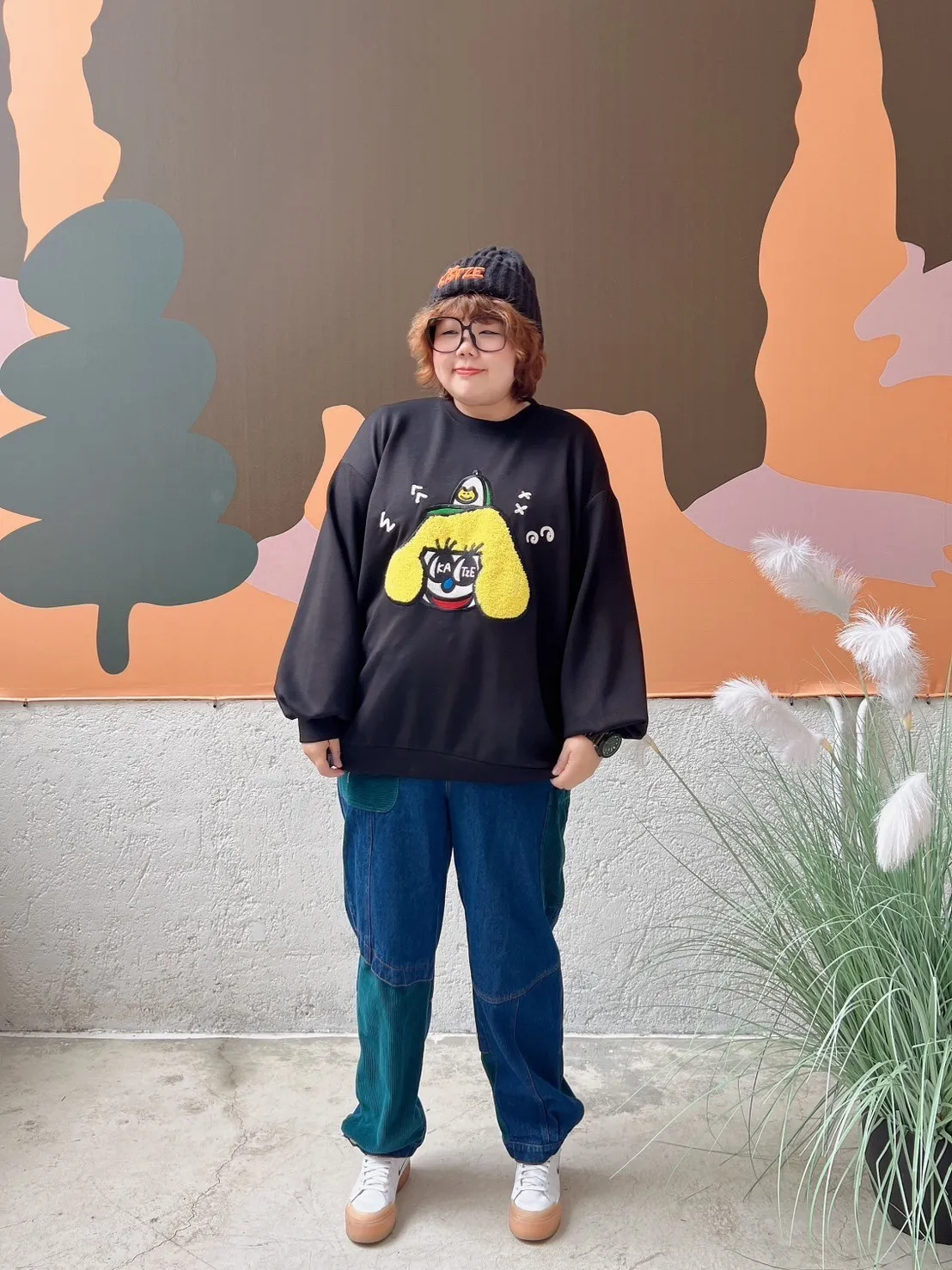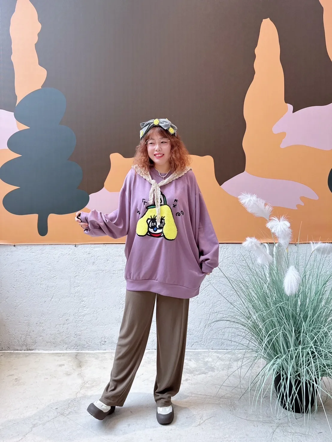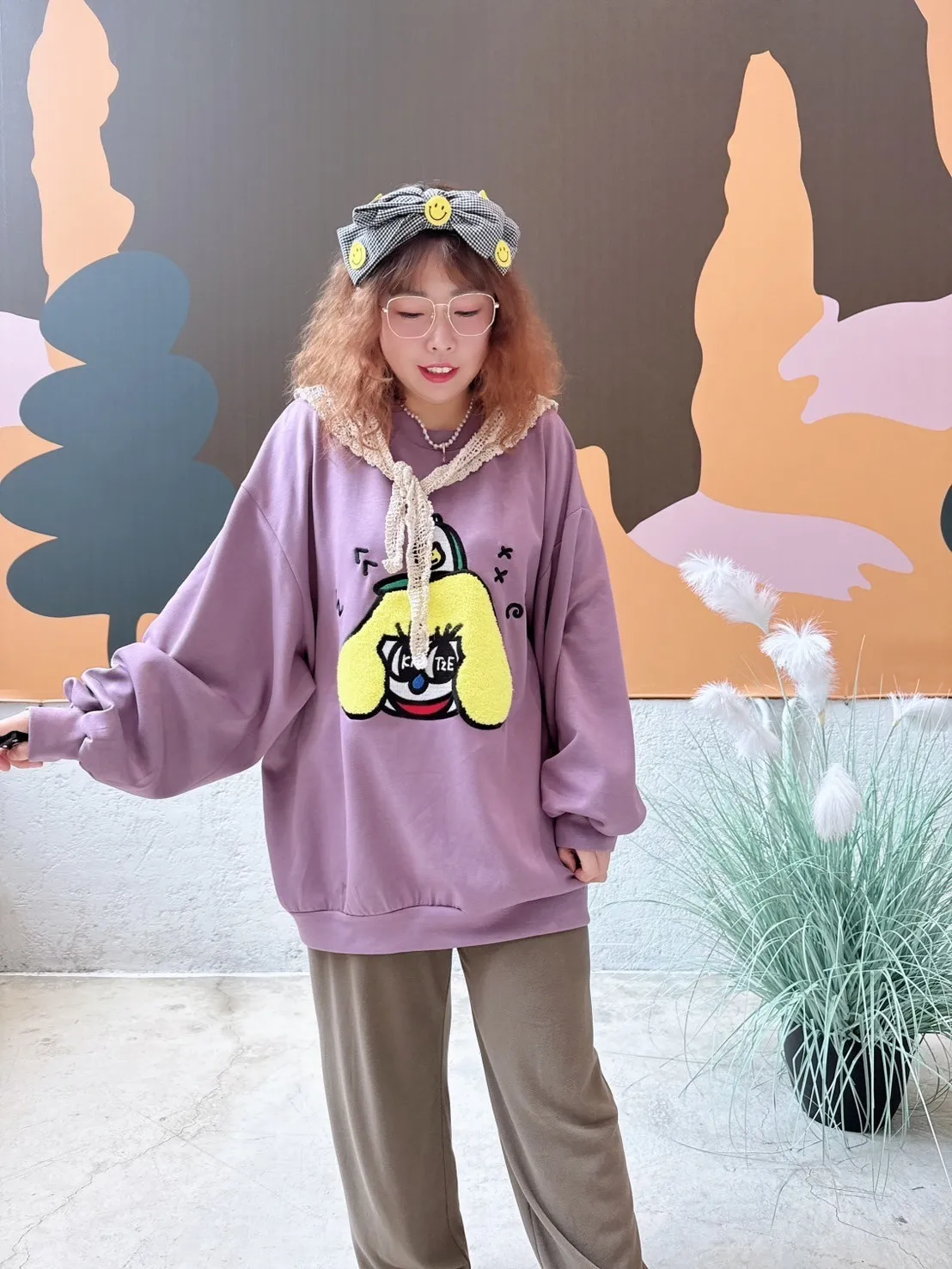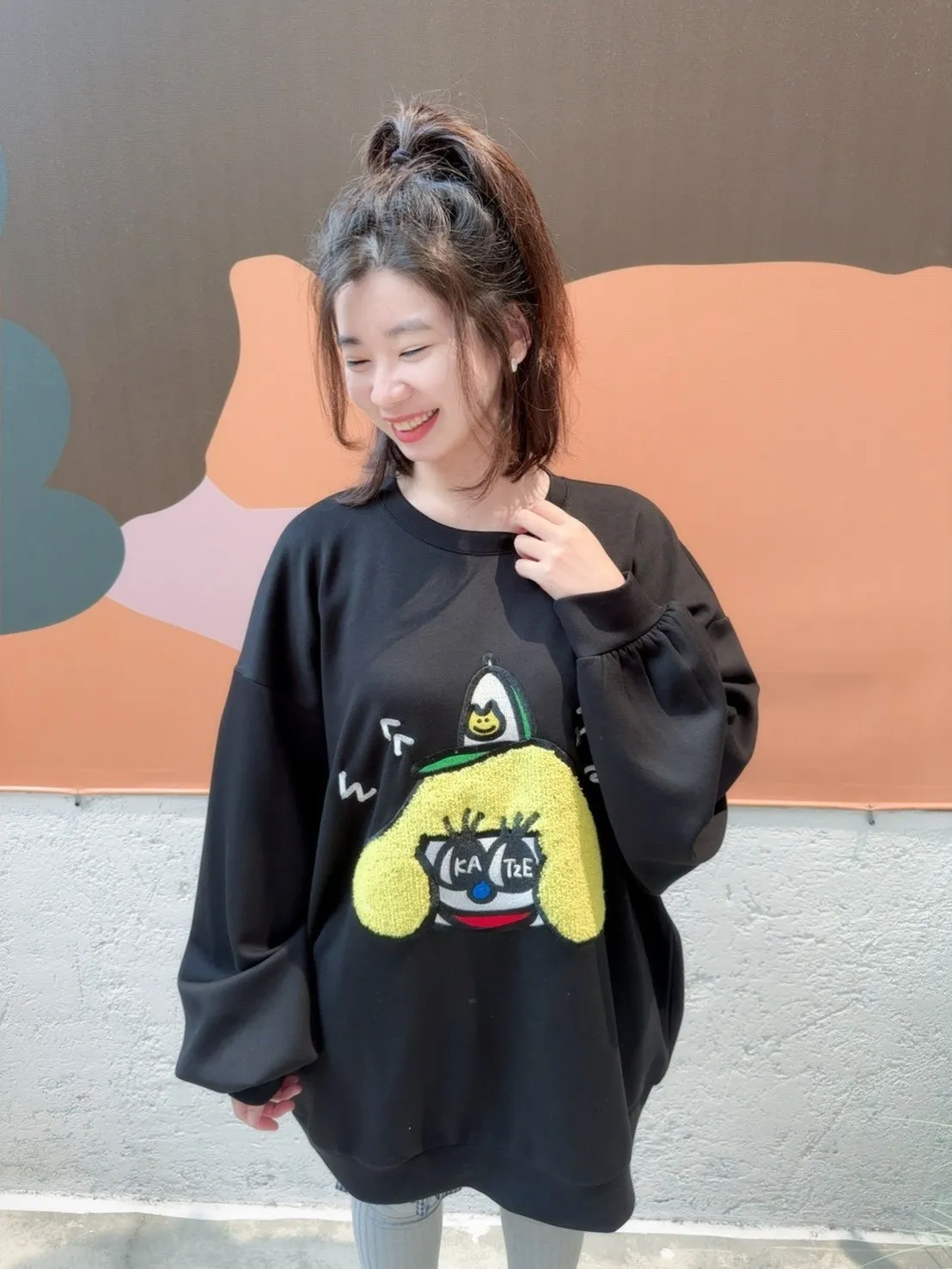 KATZE限量原創款-大眼肉妹毛巾繡舒適大學T 2色