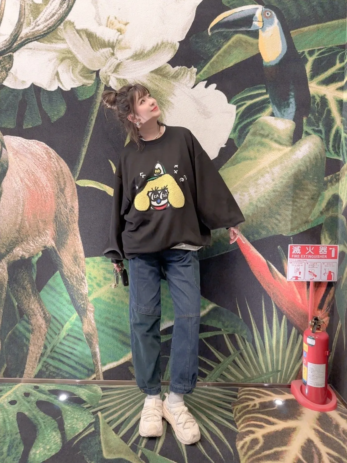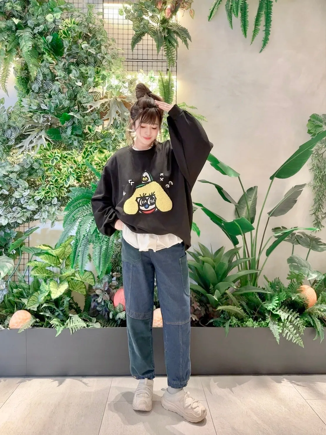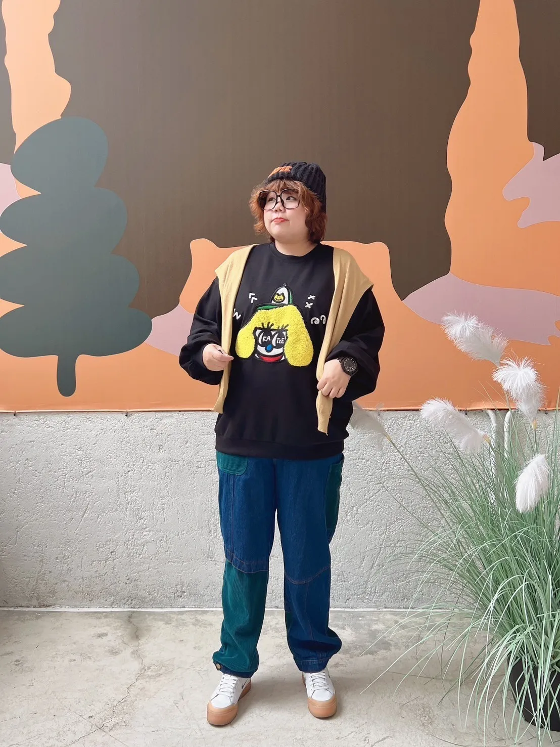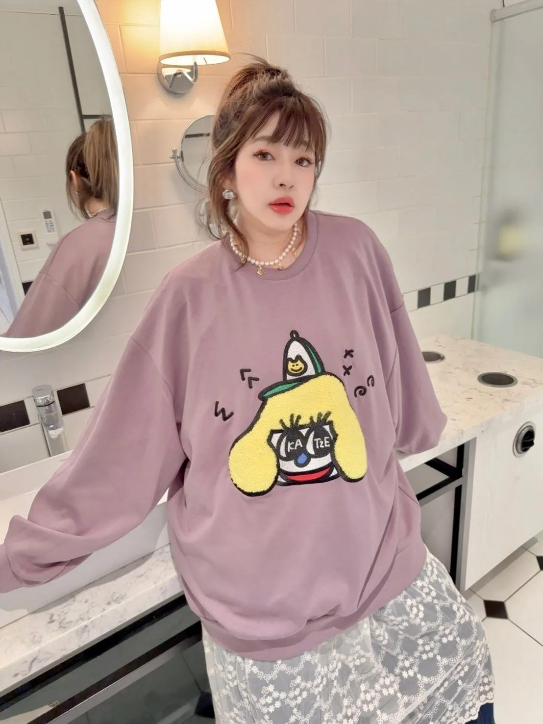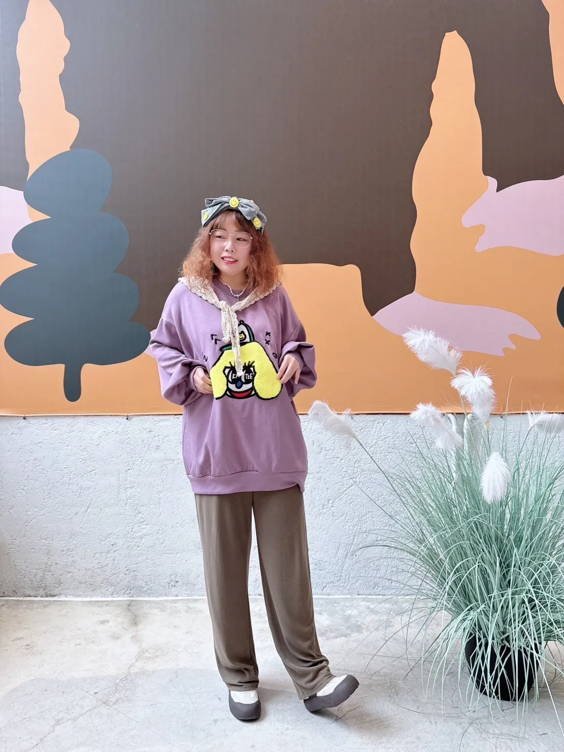 KATZE限量原創款-大眼肉妹毛巾繡舒適大學T 2色