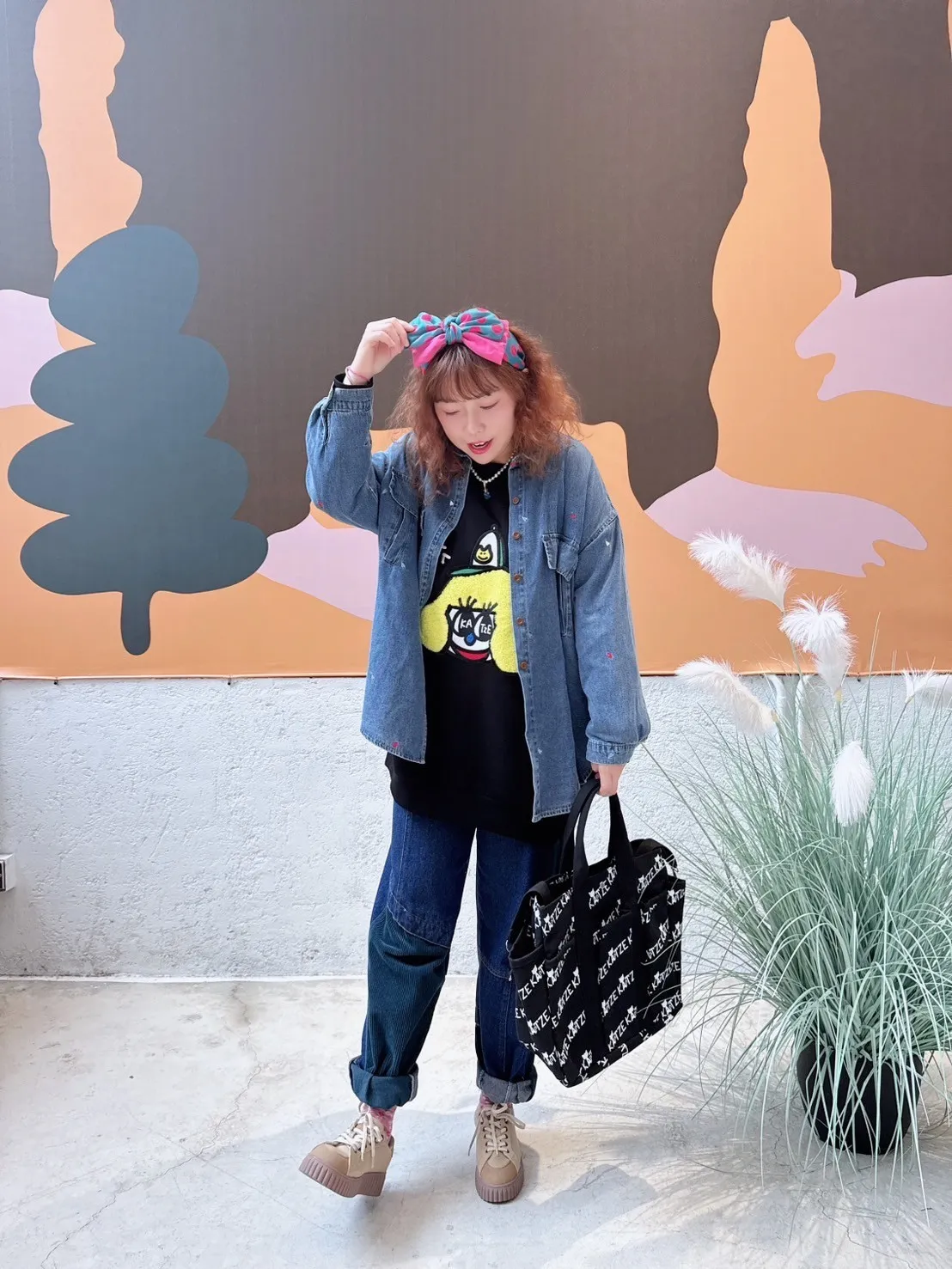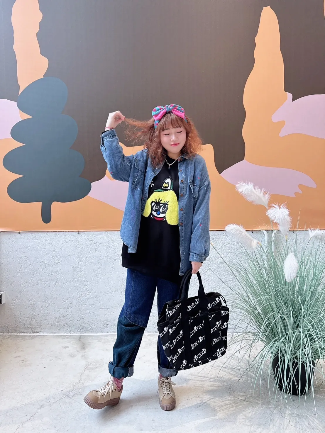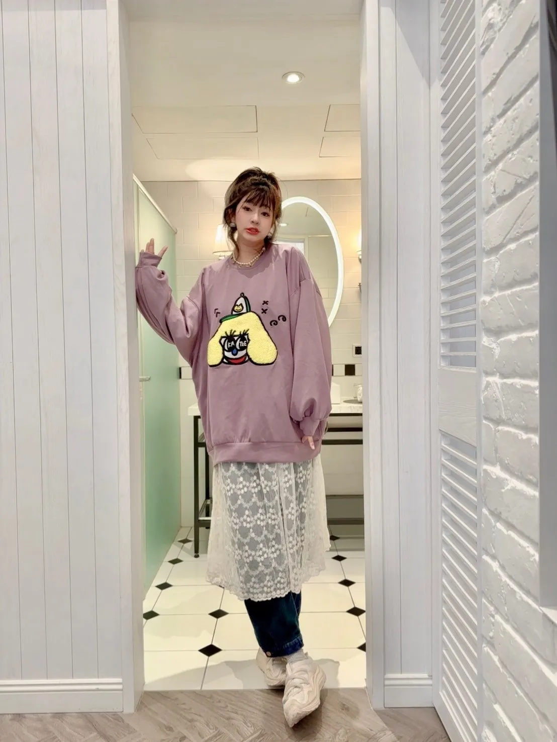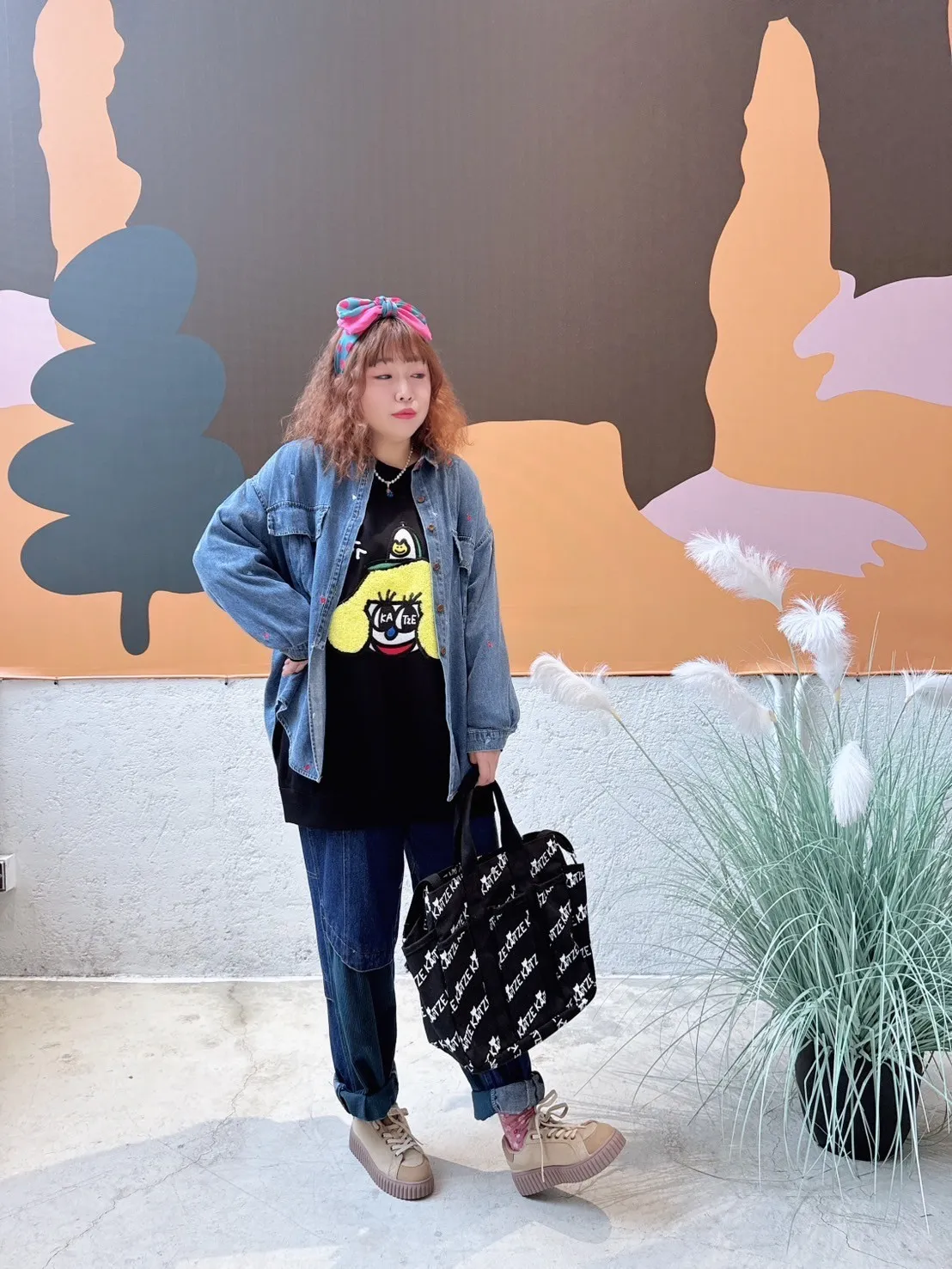 KATZE限量原創款-大眼肉妹毛巾繡舒適大學T 2色