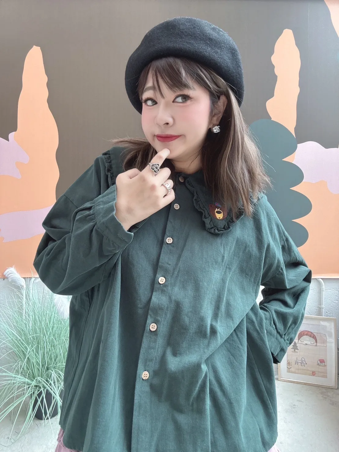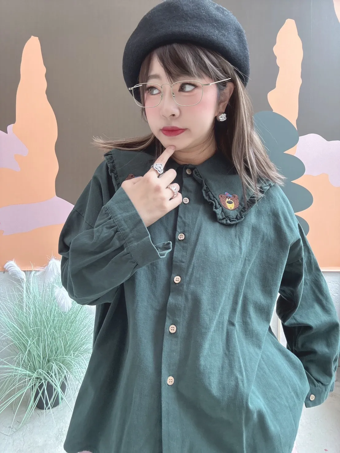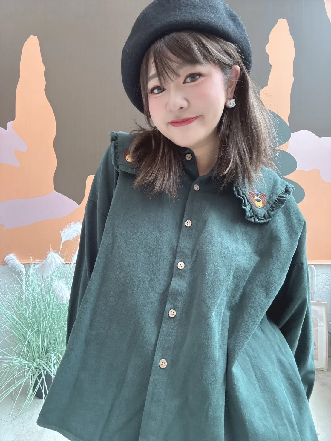 刺繡小熊領片開扣上衣 3色