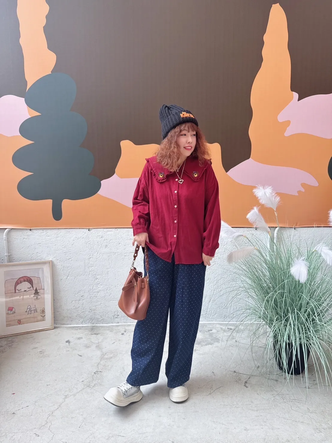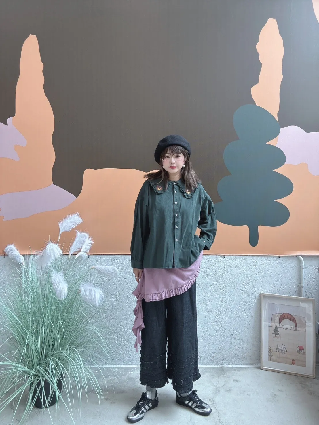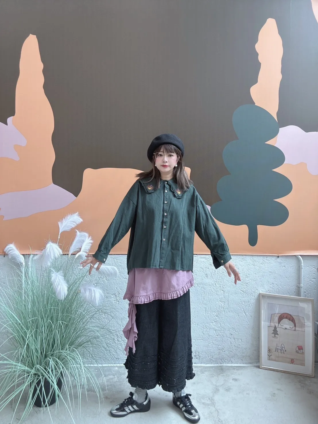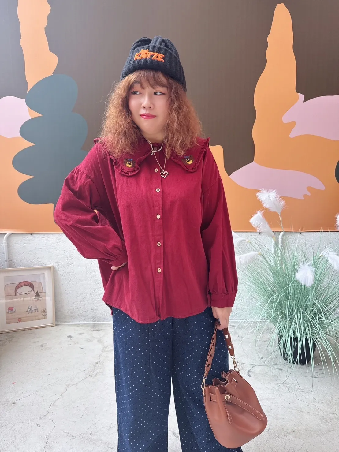 刺繡小熊領片開扣上衣 3色