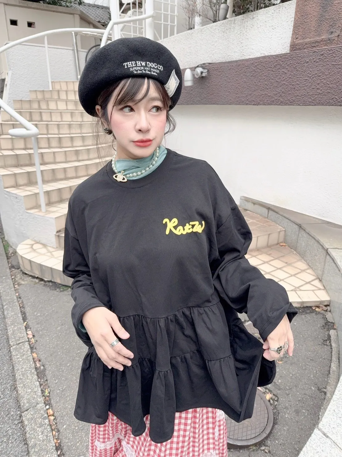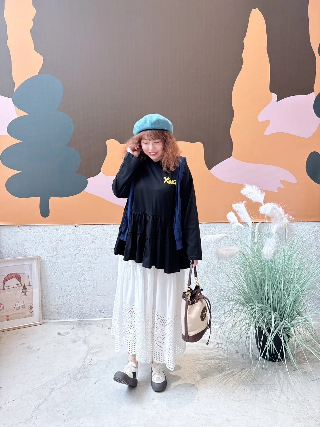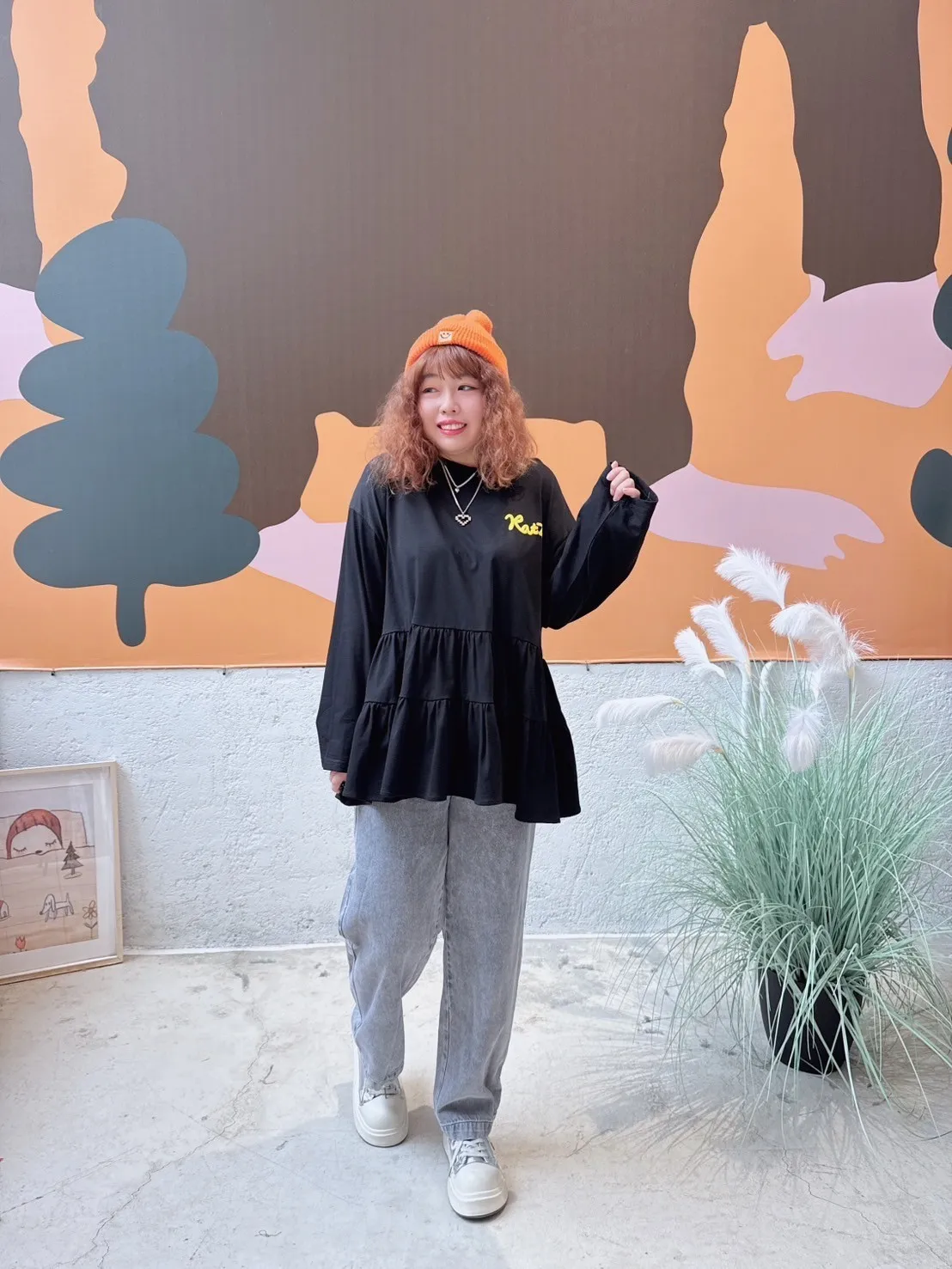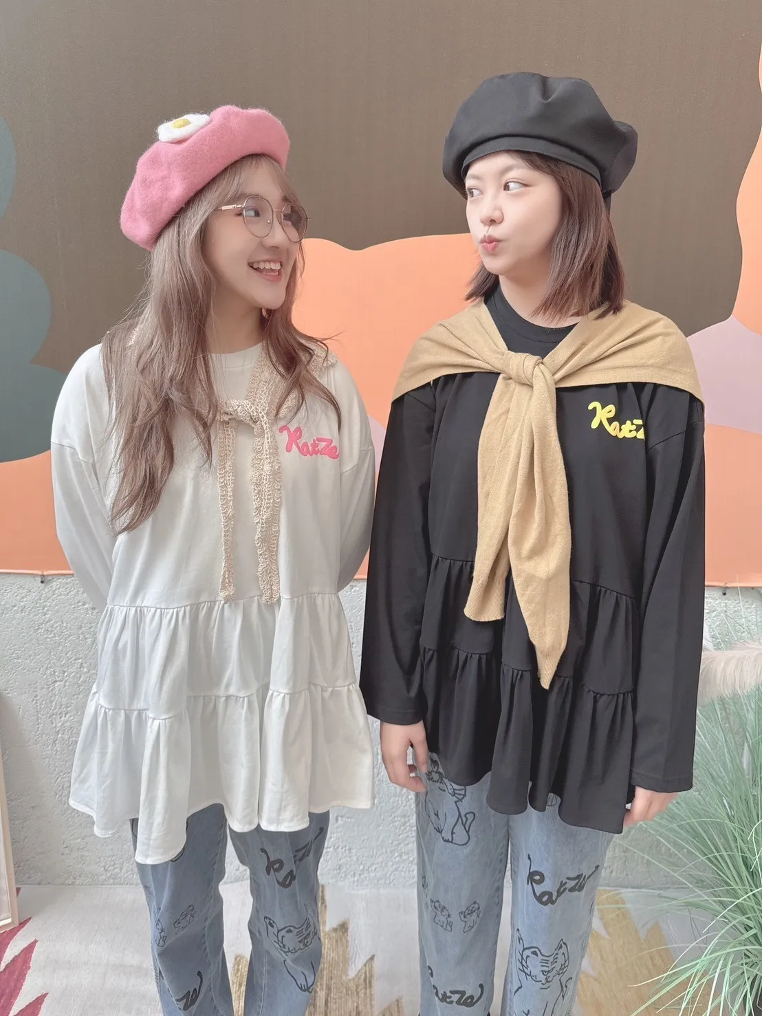 KATZE限量原創款-泡泡印LOGO傘擺舒適上衣 2色