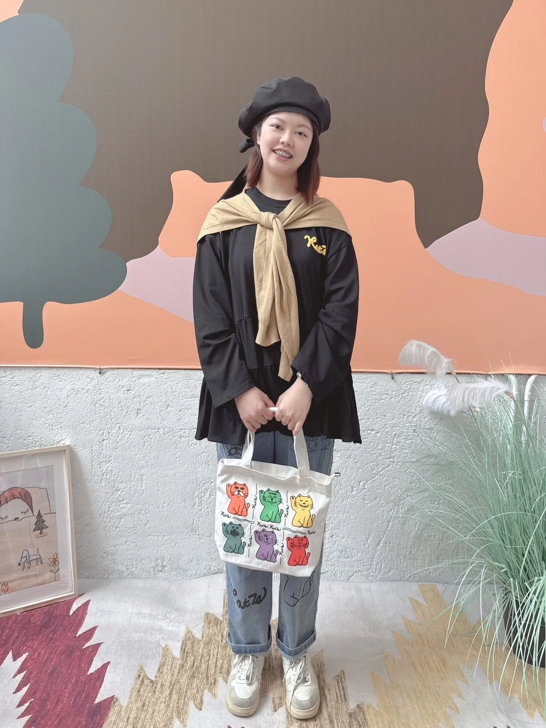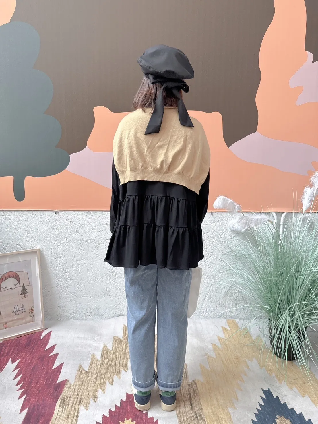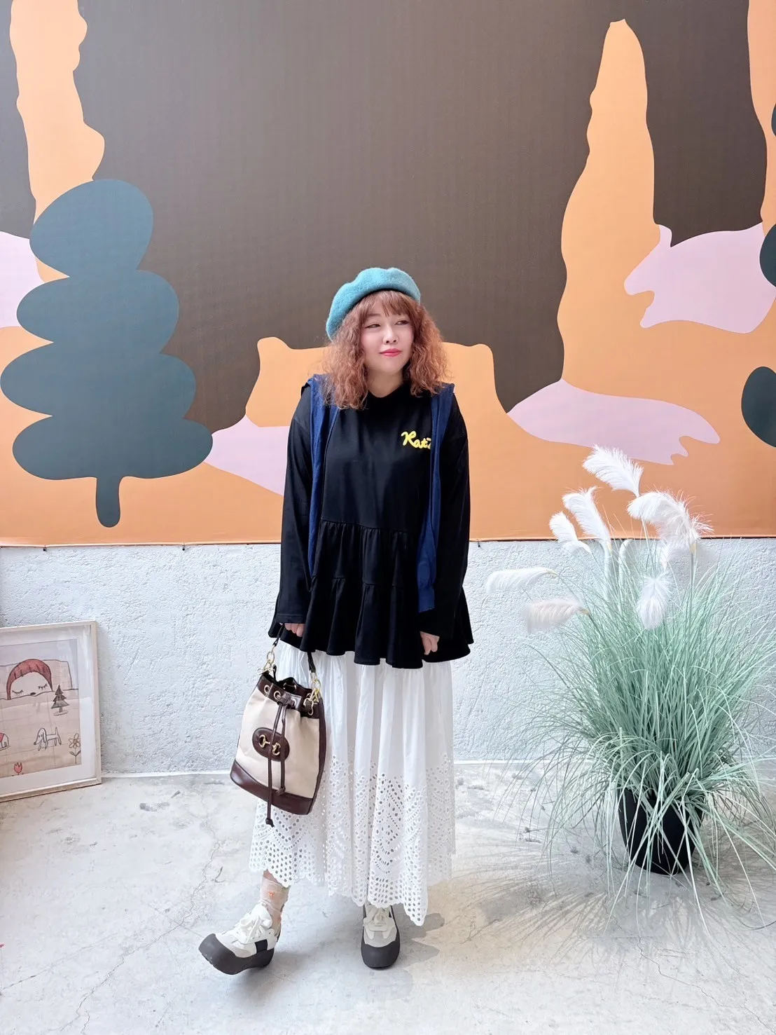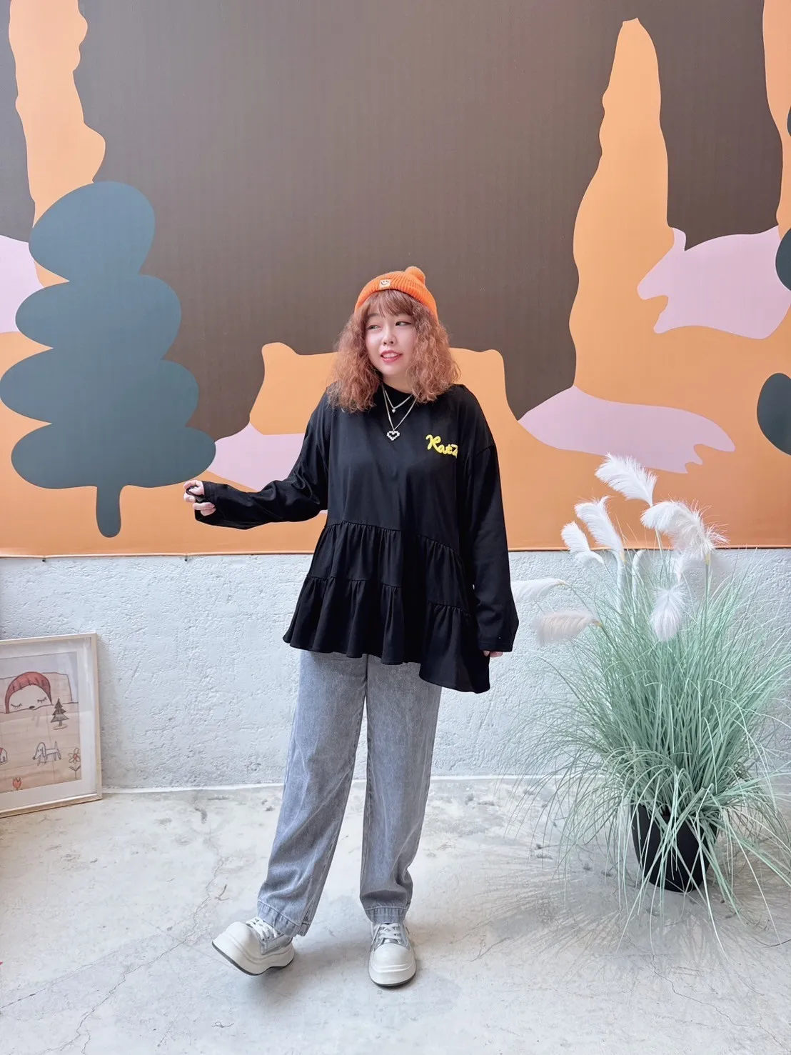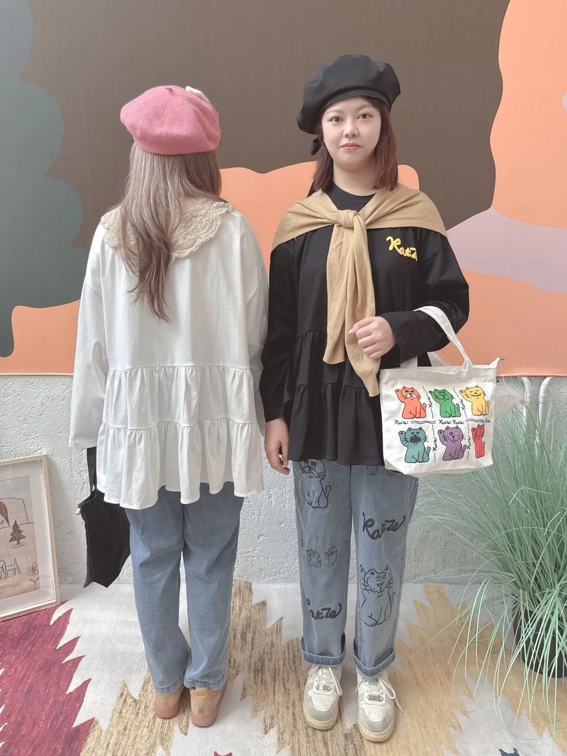 KATZE限量原創款-泡泡印LOGO傘擺舒適上衣 2色