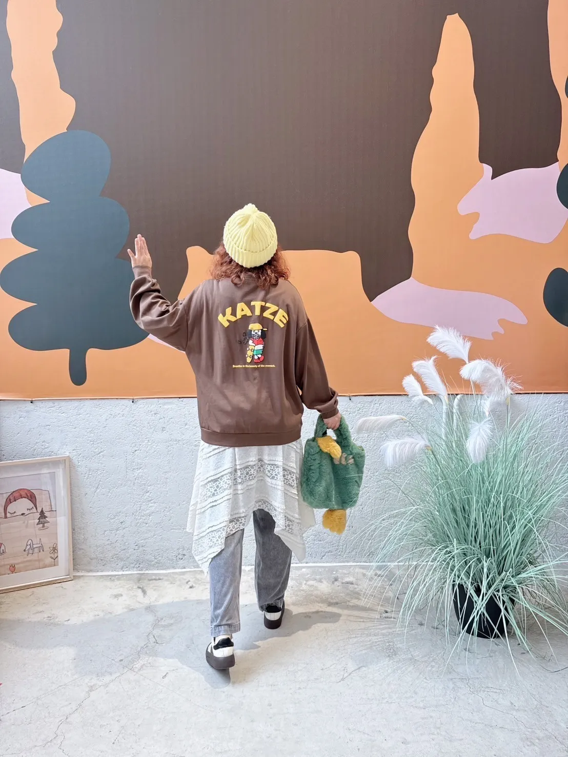 KATZE限量原創款-泡泡印刷滑板阿豆莫舒適大學T 2色