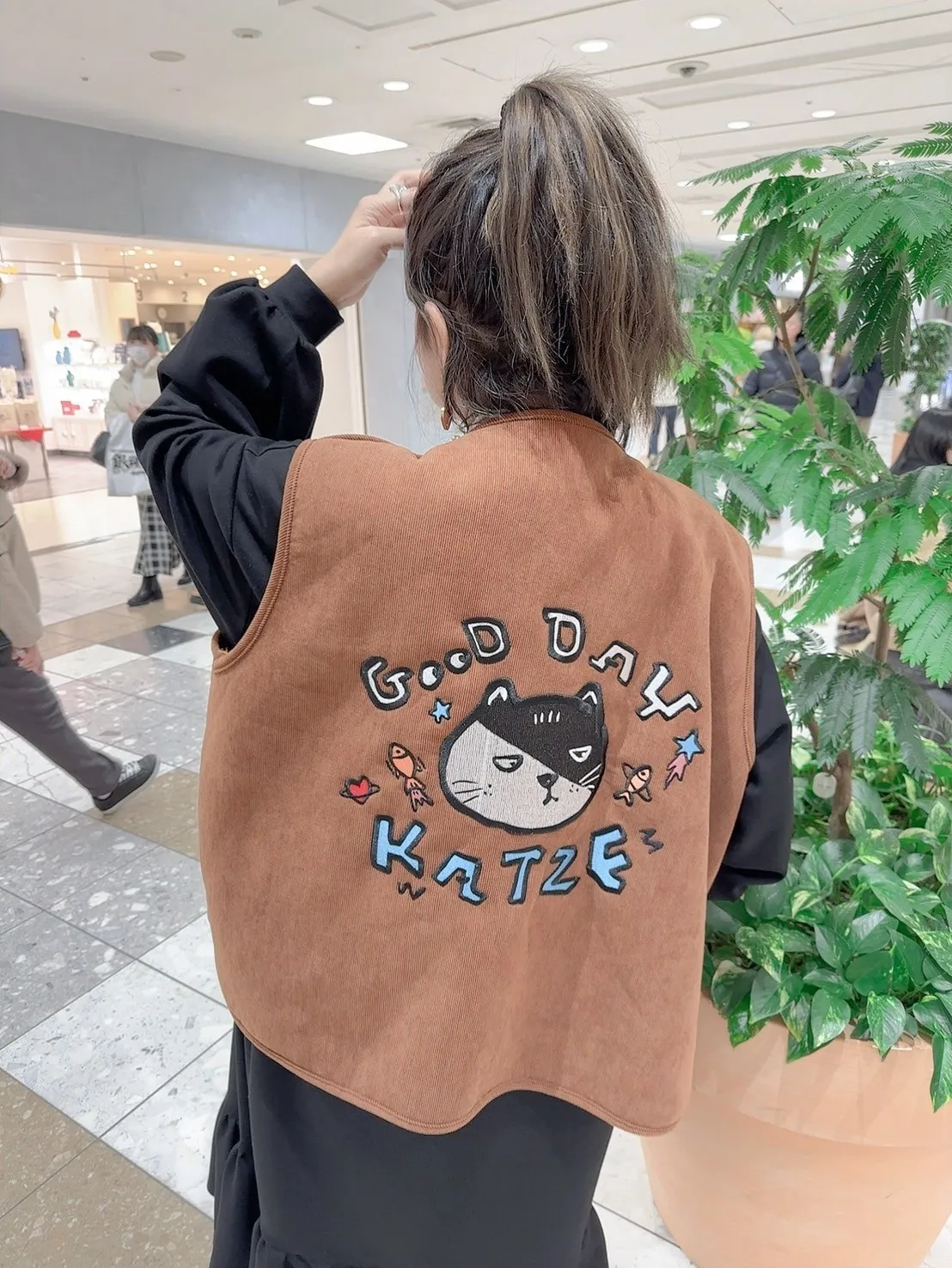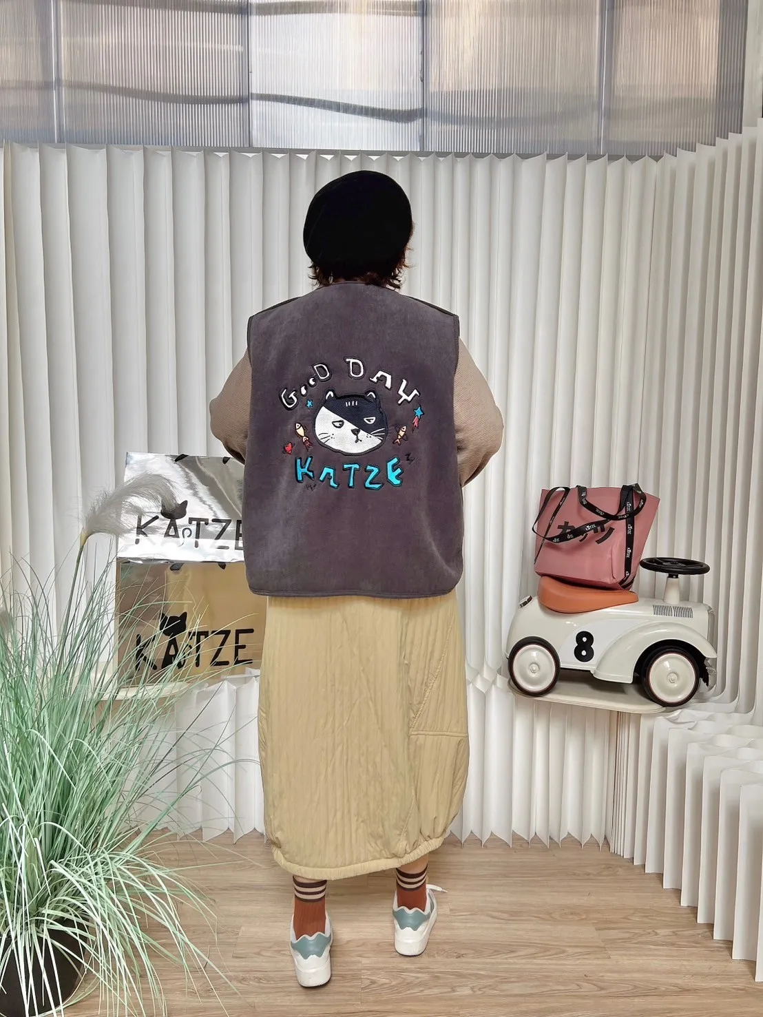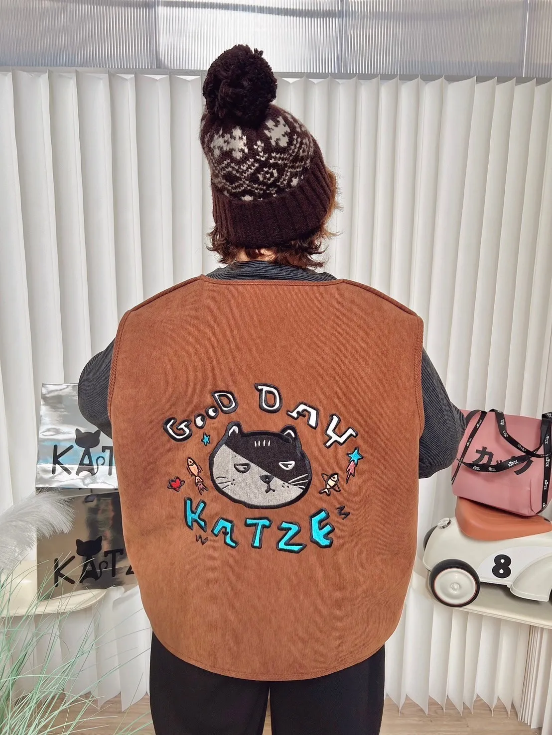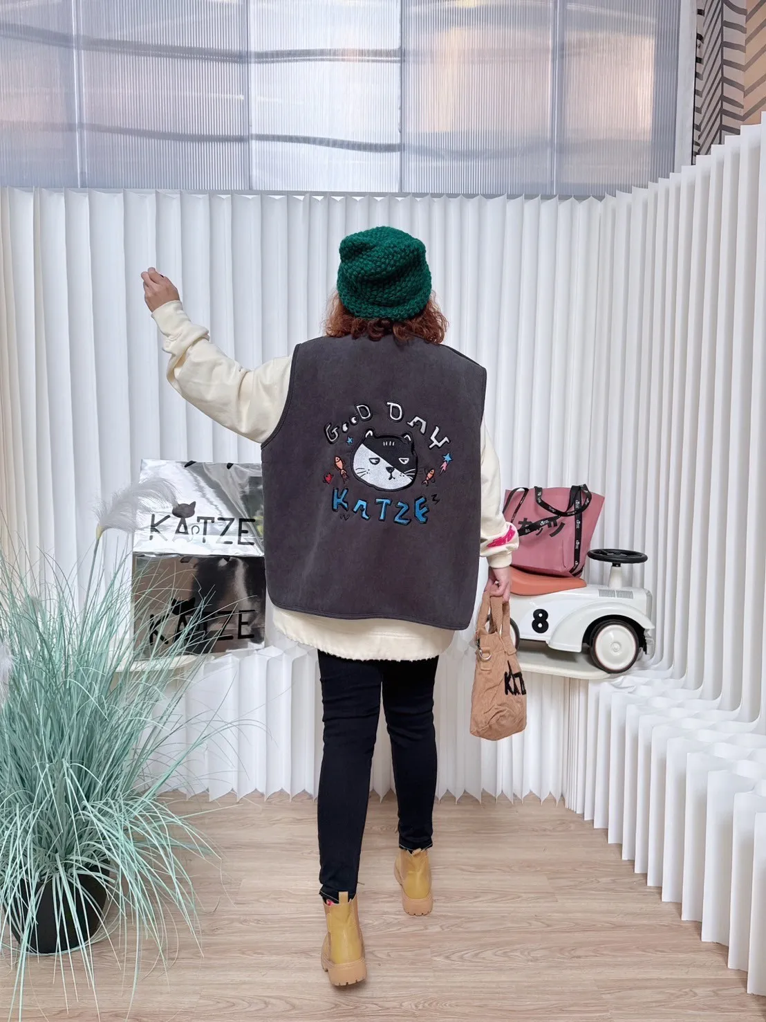 KATZE限量原創款-一起貓刺繡大口袋背心 2色
