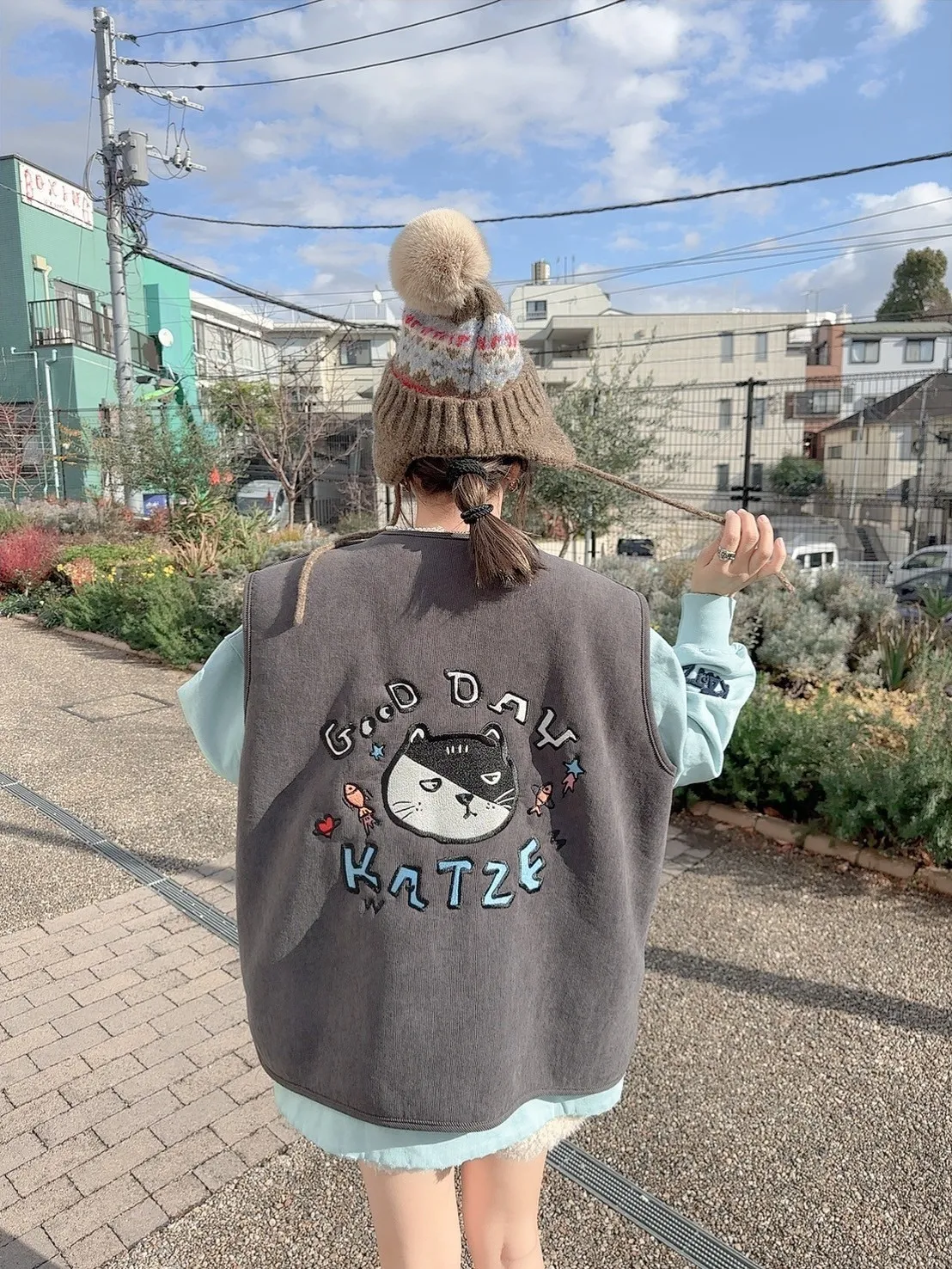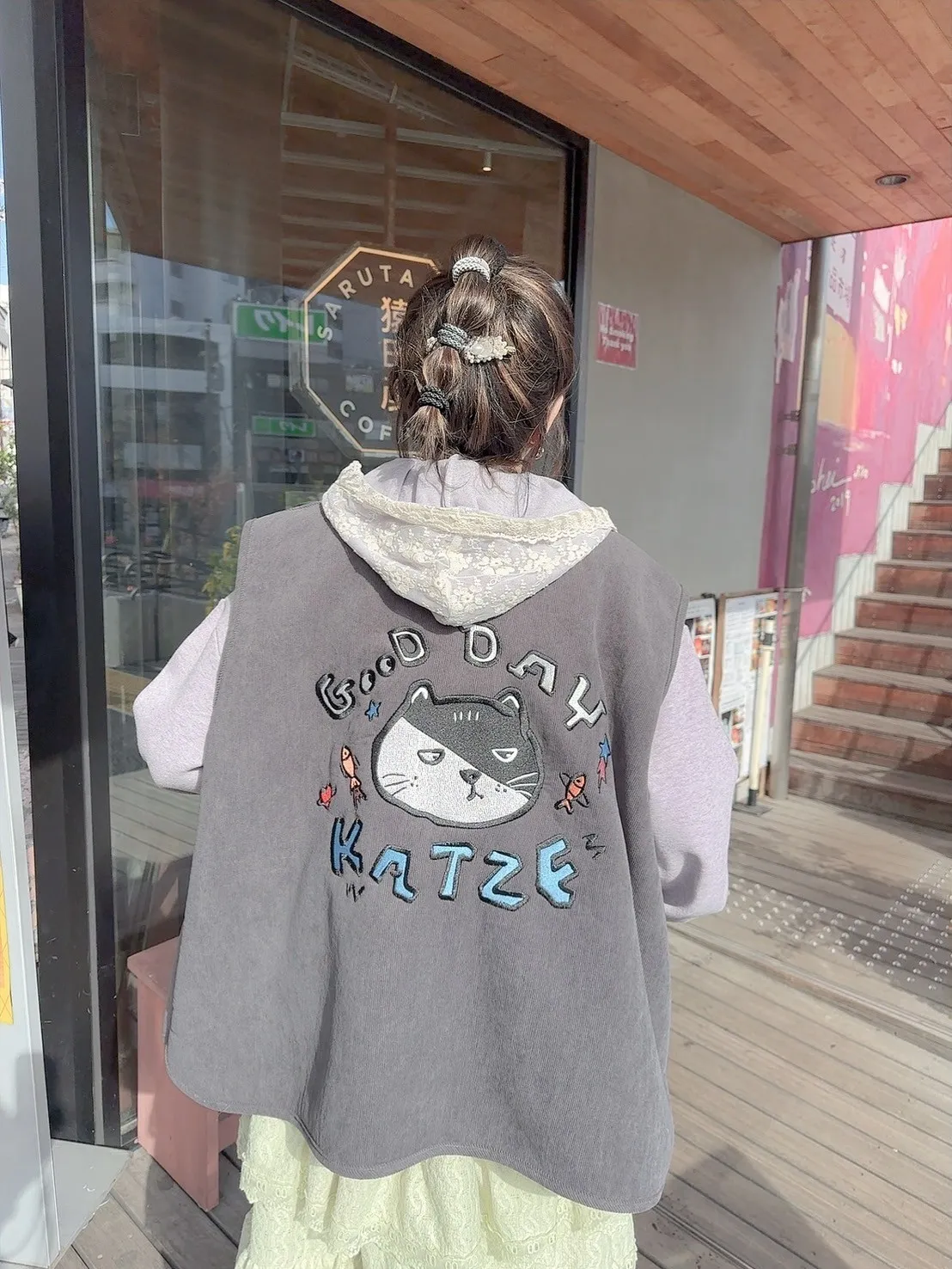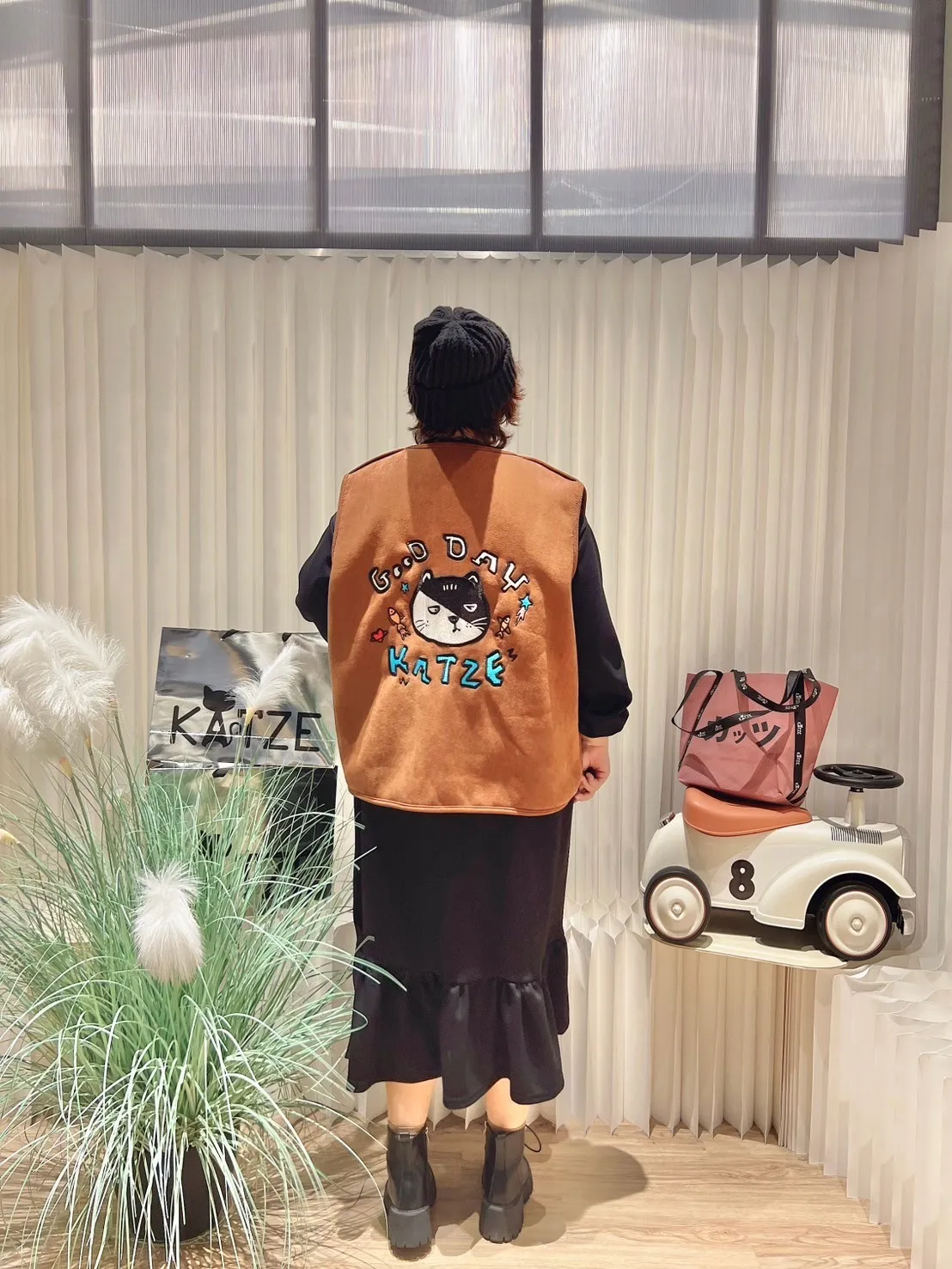 KATZE限量原創款-一起貓刺繡大口袋背心 2色