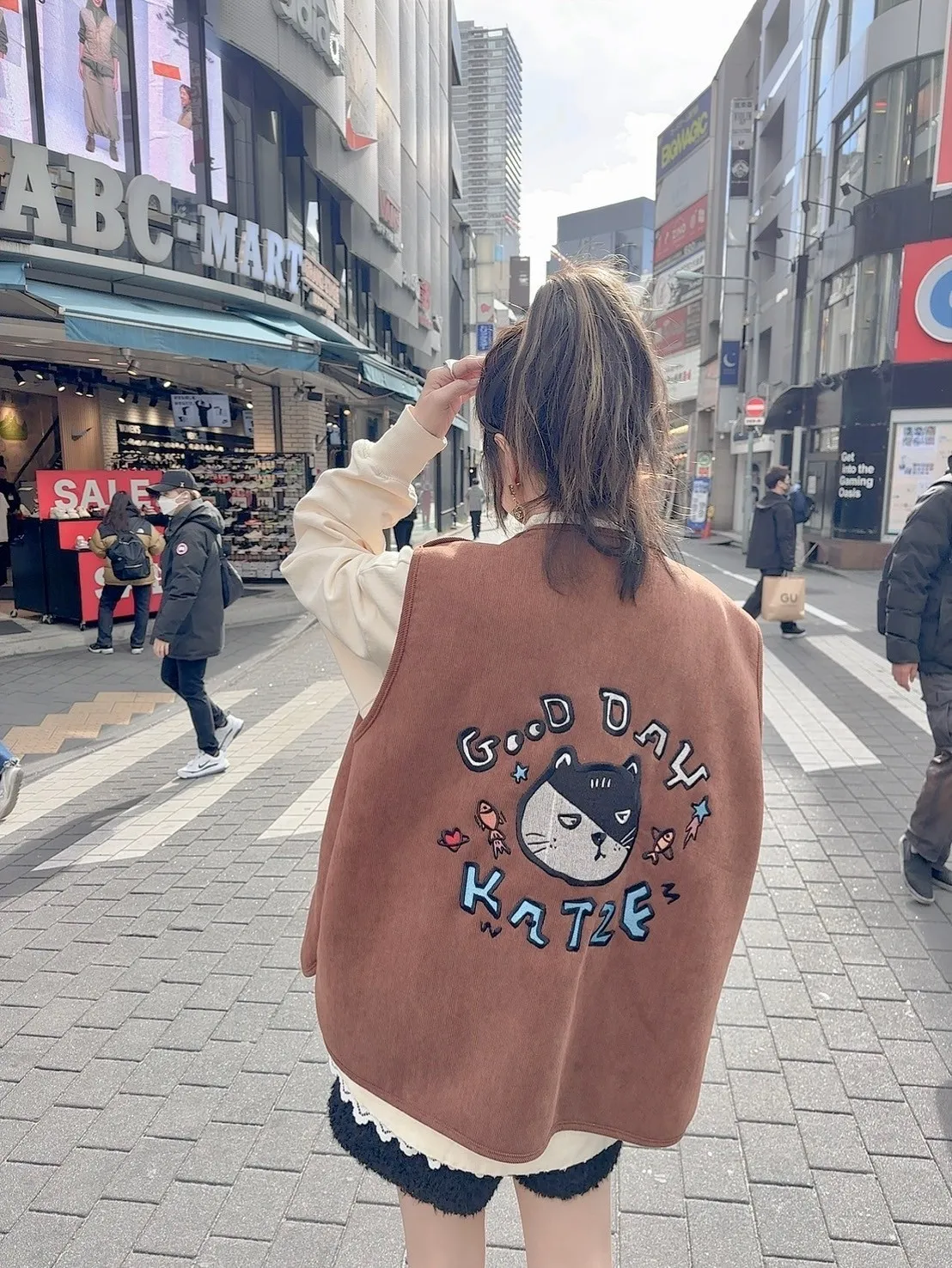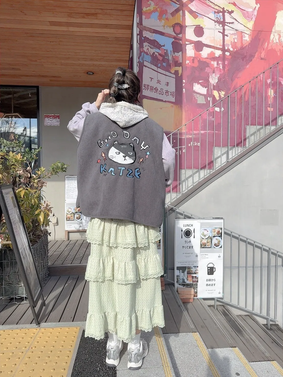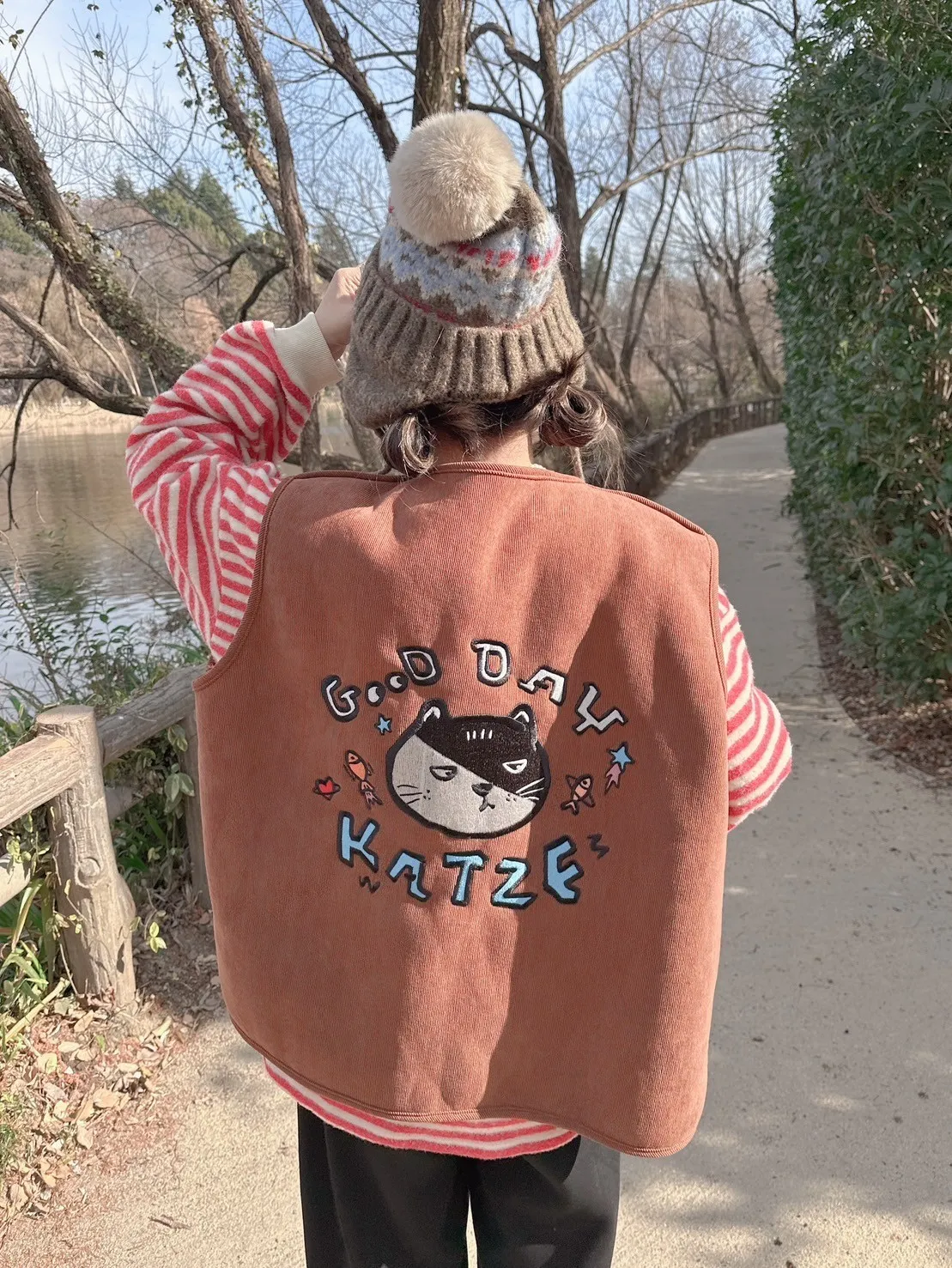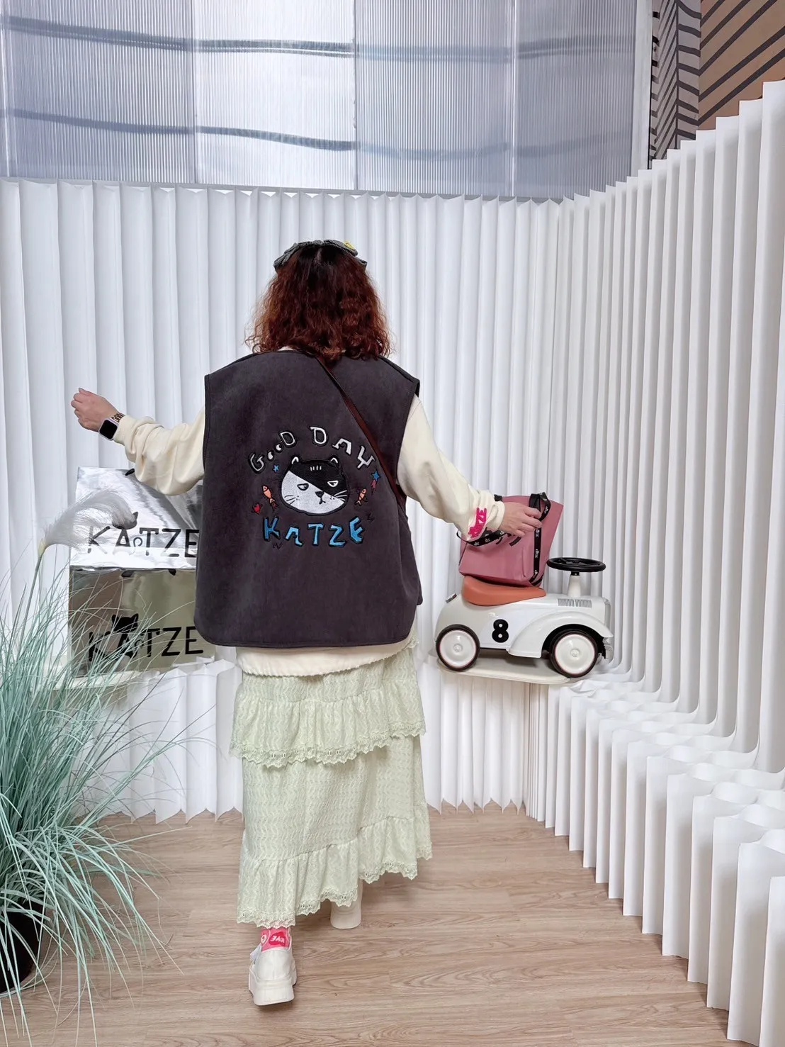 KATZE限量原創款-一起貓刺繡大口袋背心 2色