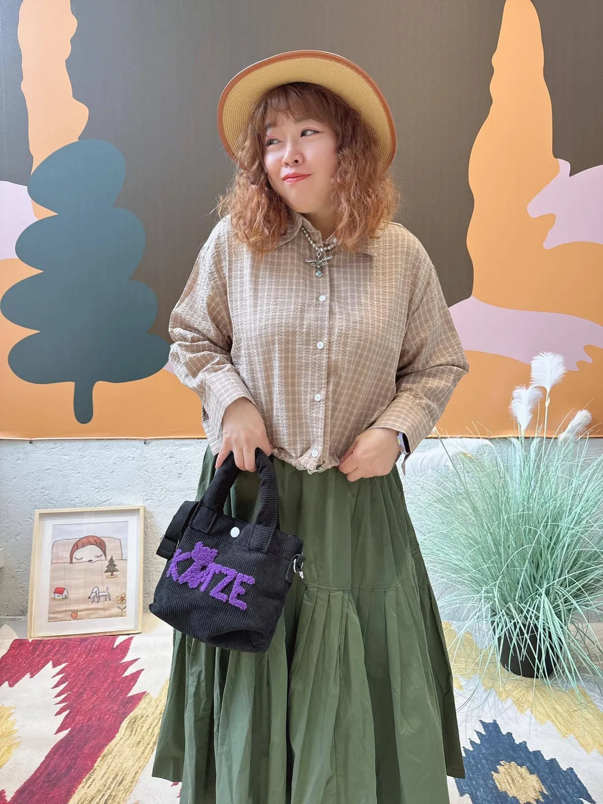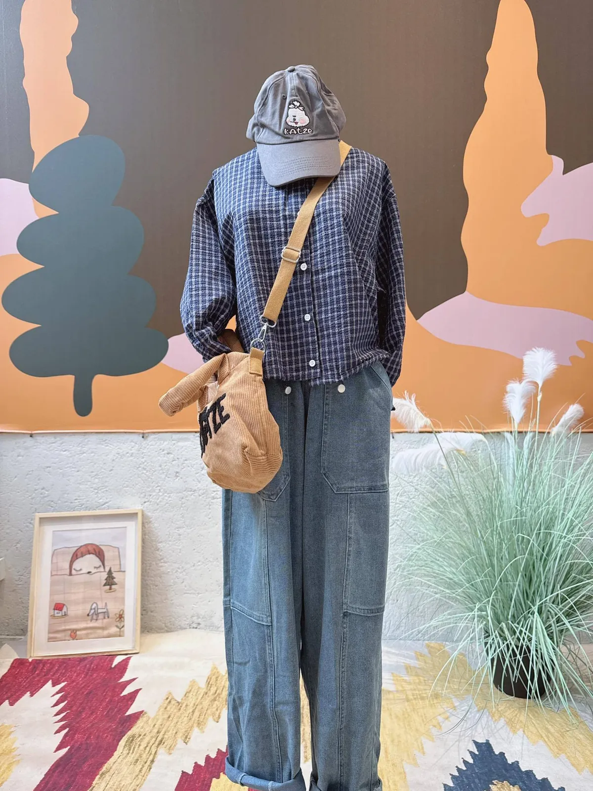 下抽泡格紋短版襯衫2色