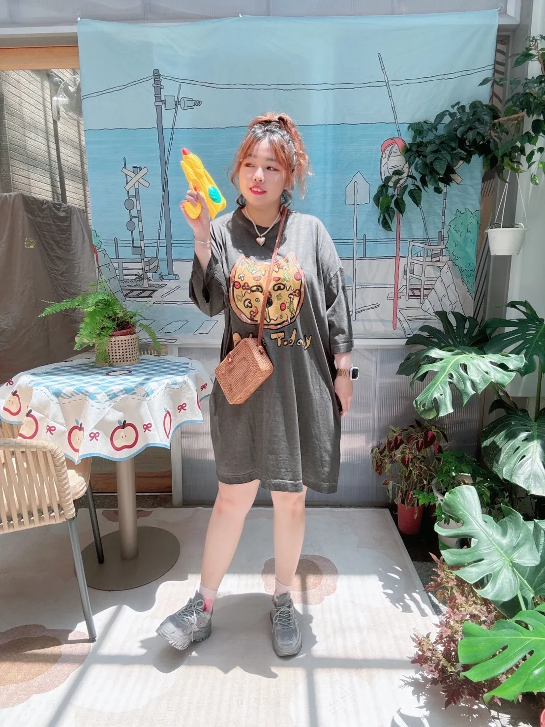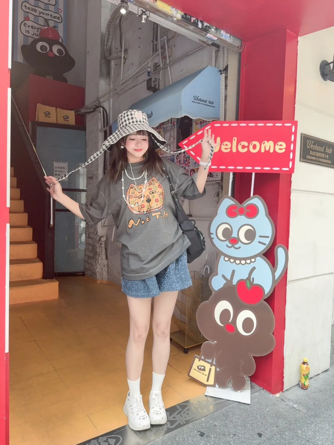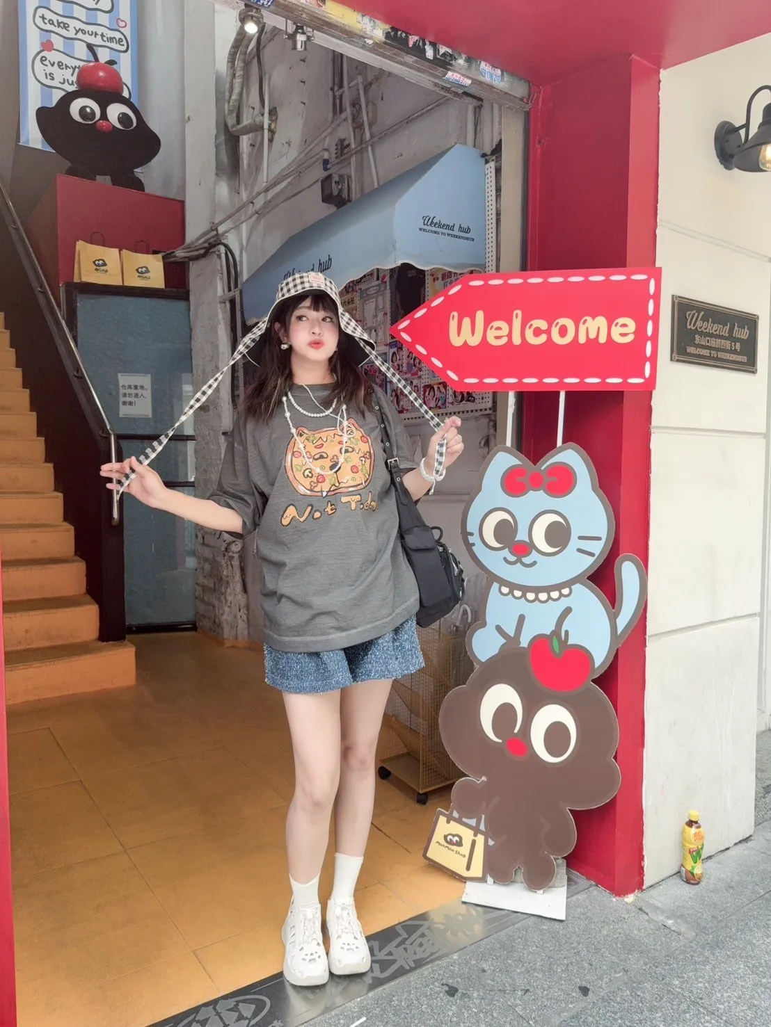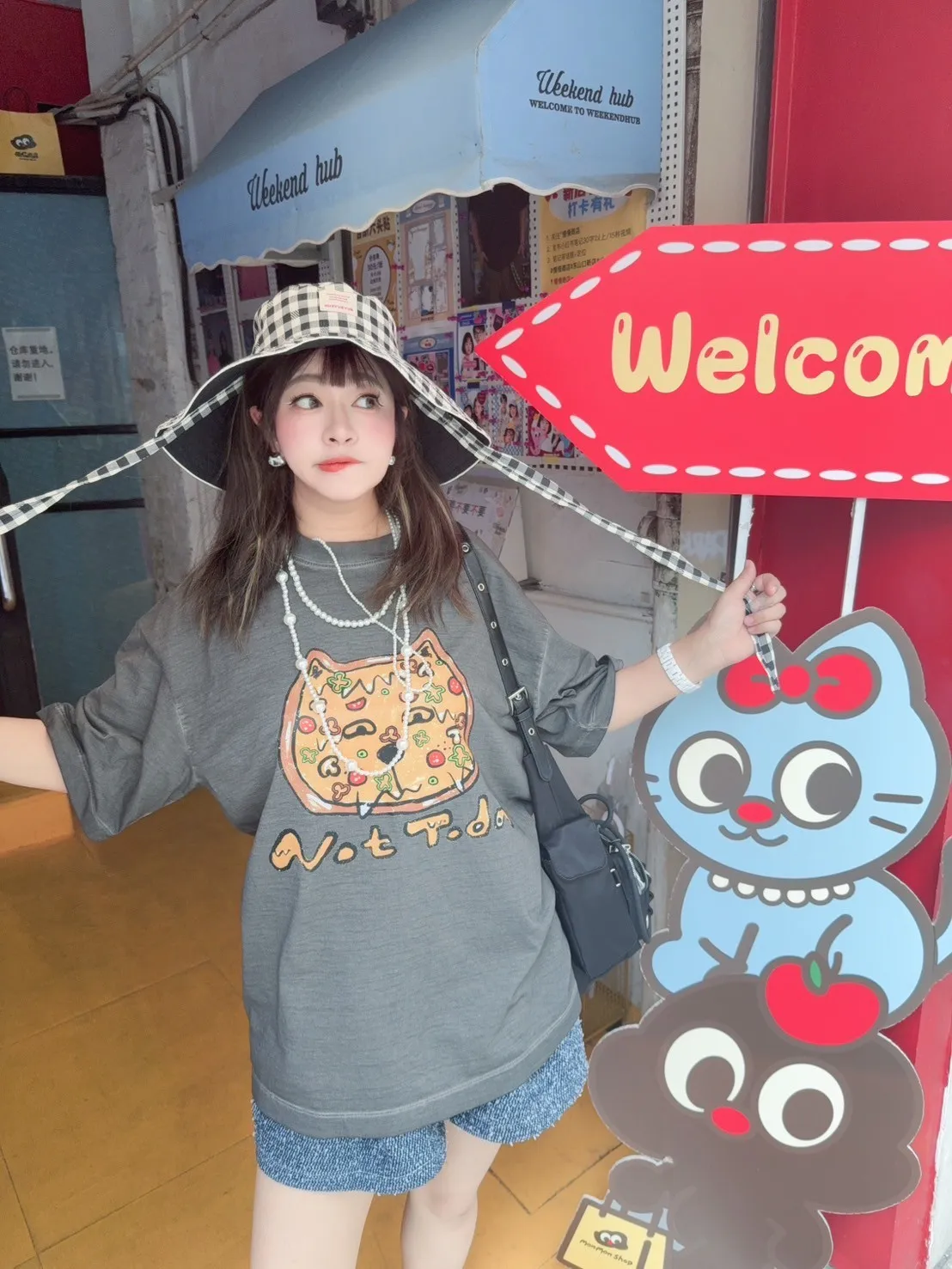 KATZE限量原創款-印刷肉包Pizza水洗上衣 2色