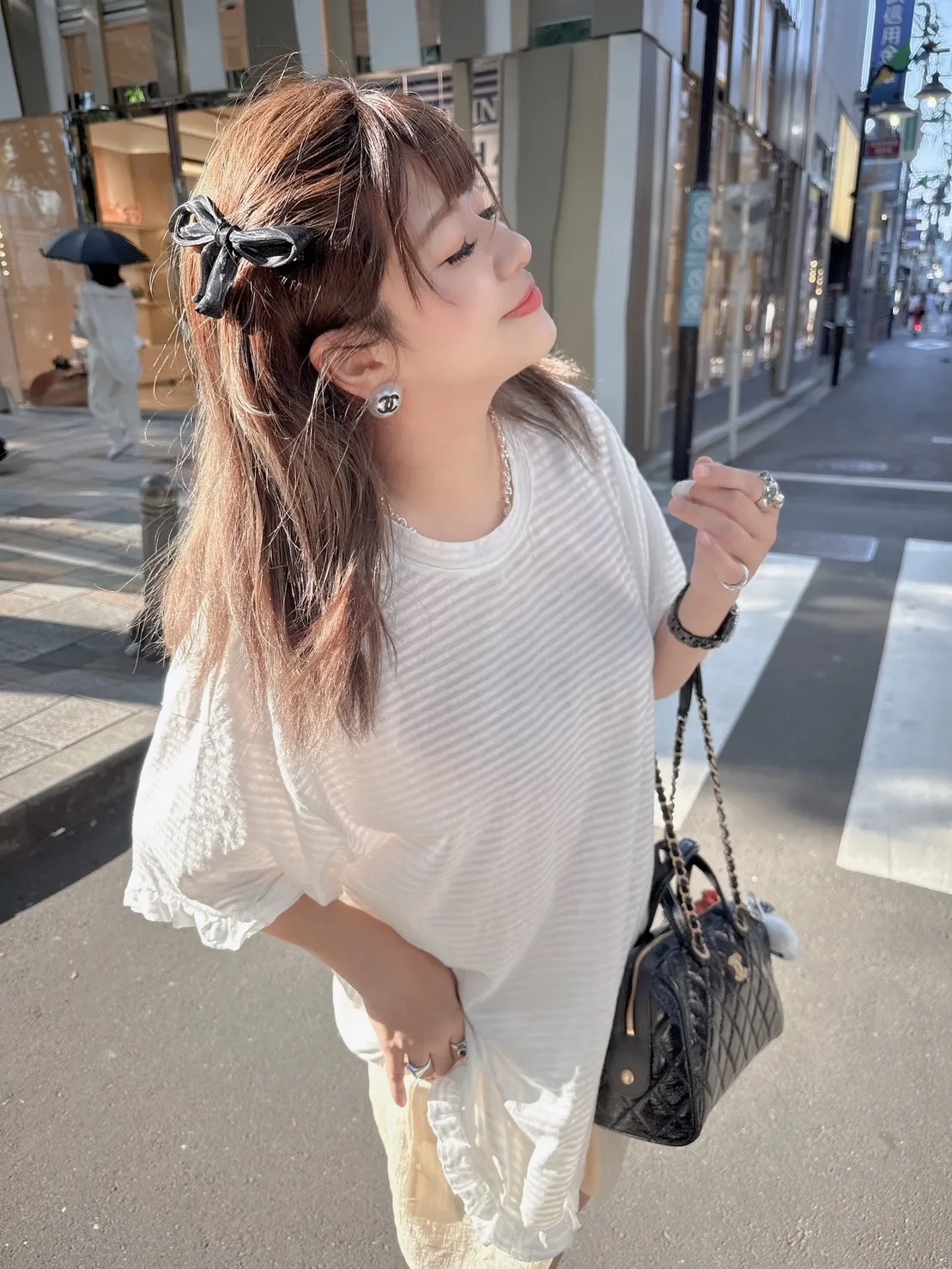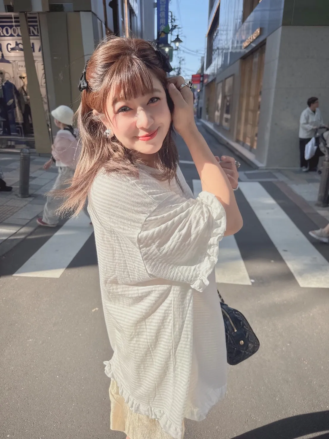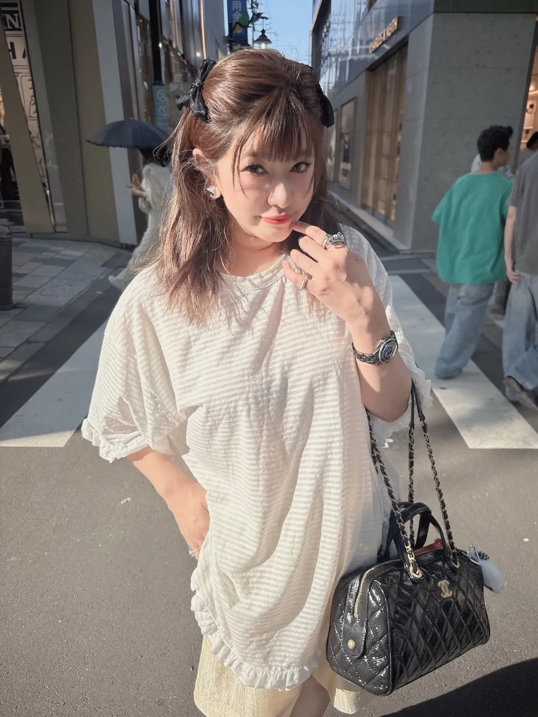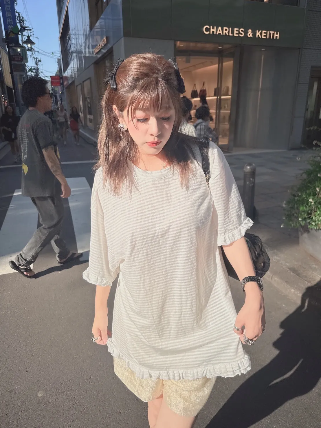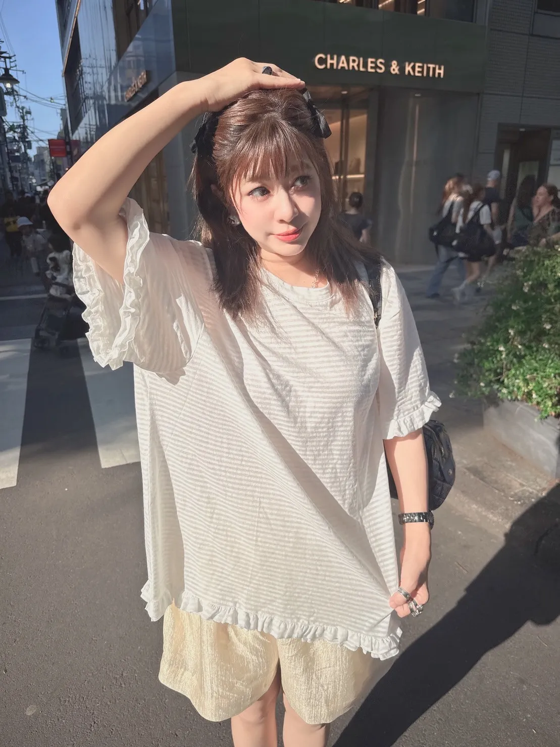條紋荷葉邊舒適上衣