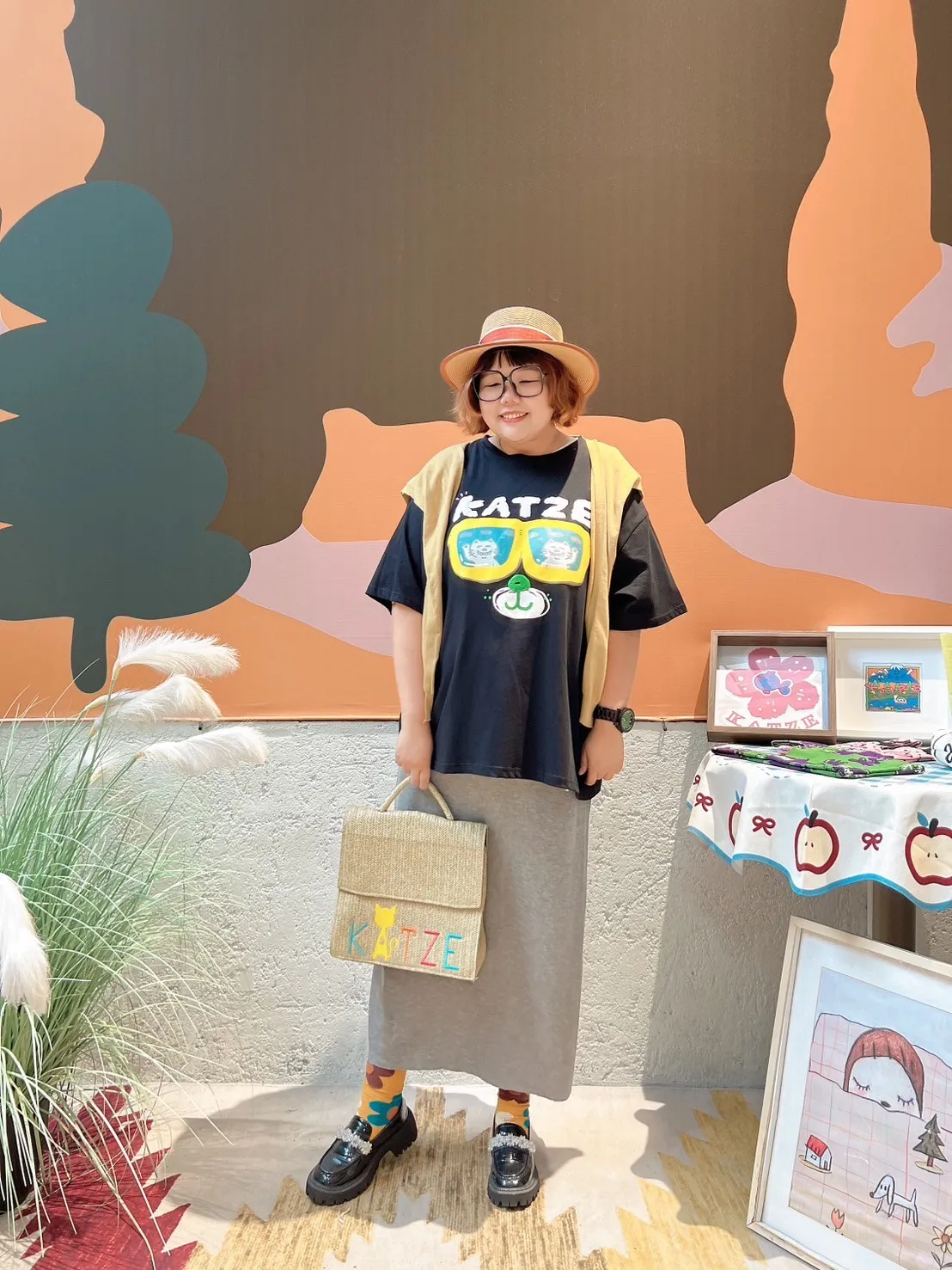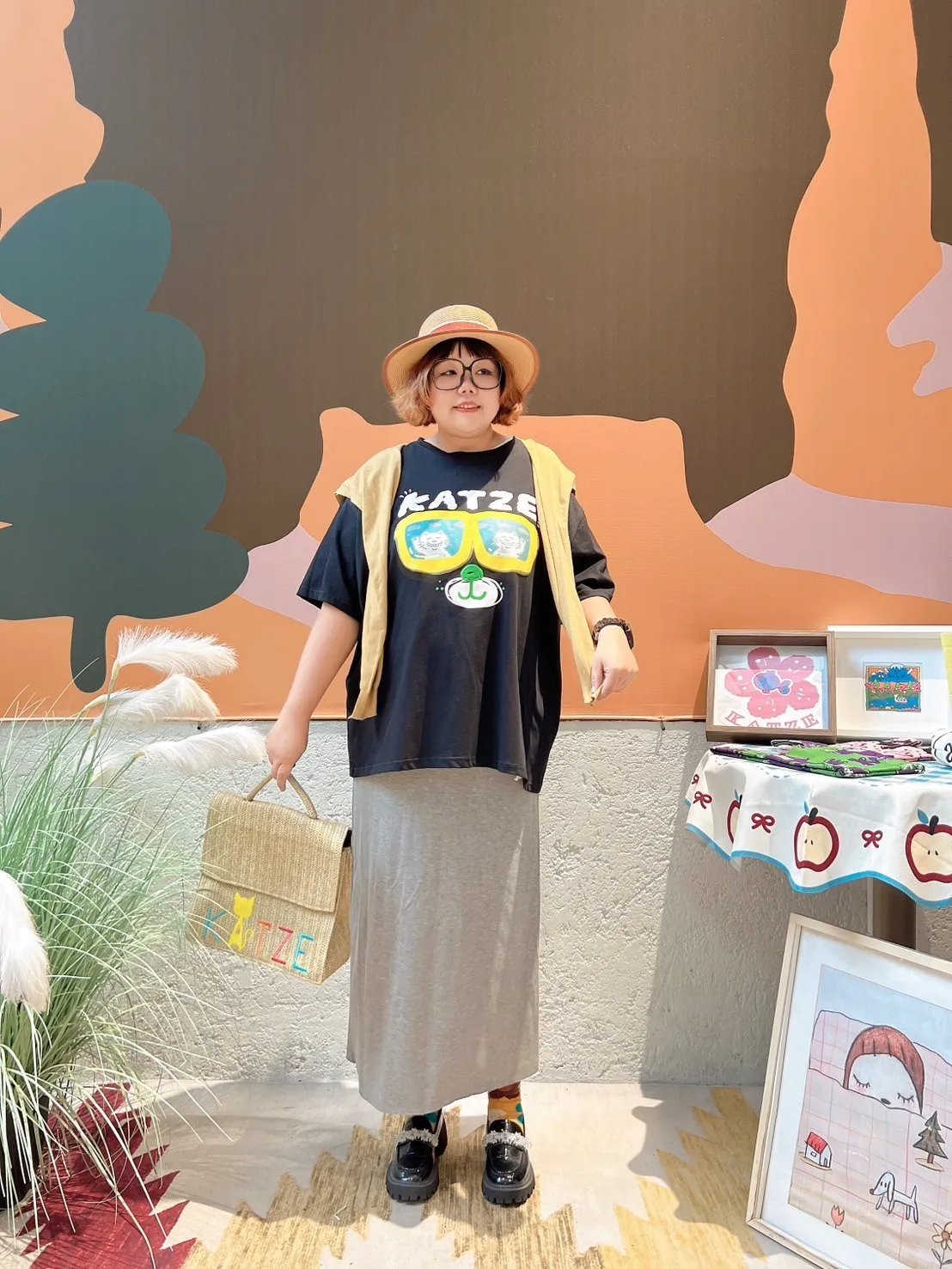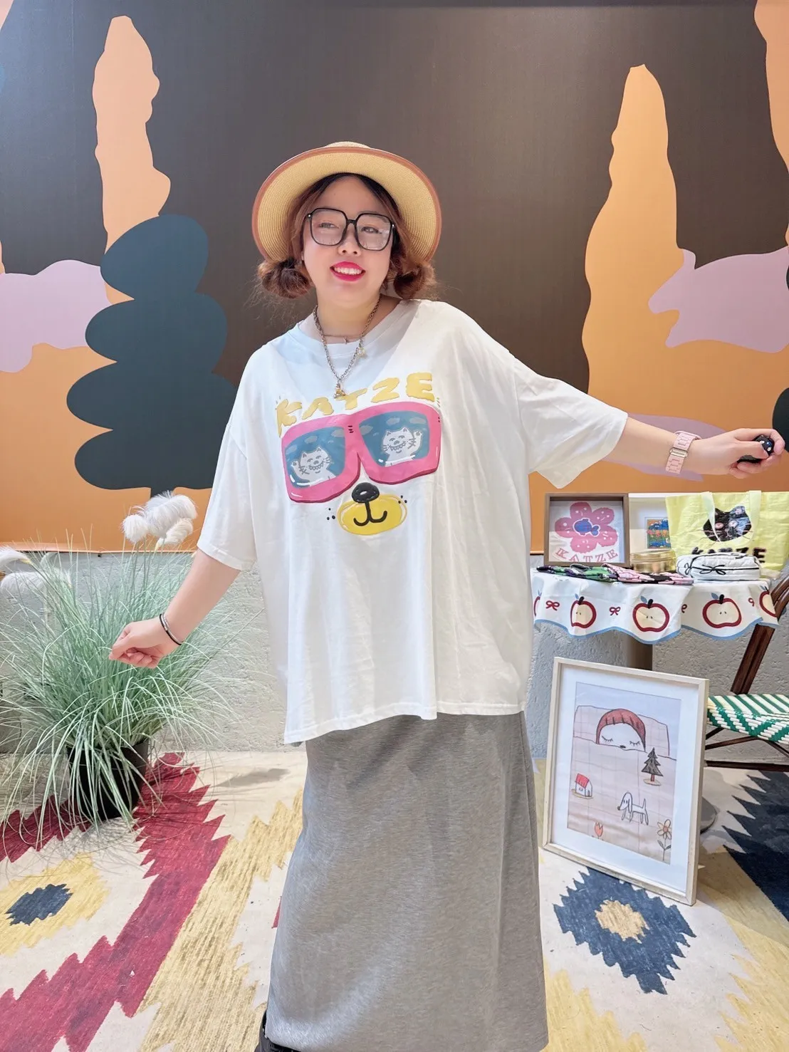 KATZE限量原創款-印刷大眼鏡肉包舒適上衣 2色
