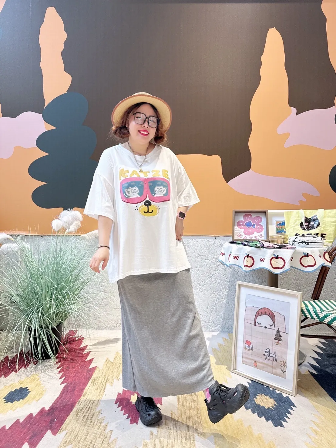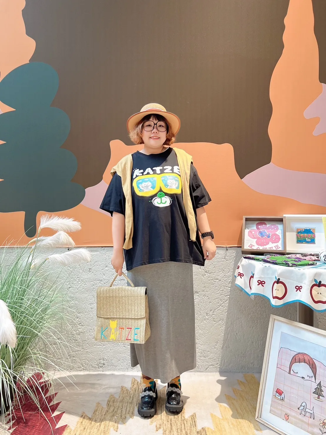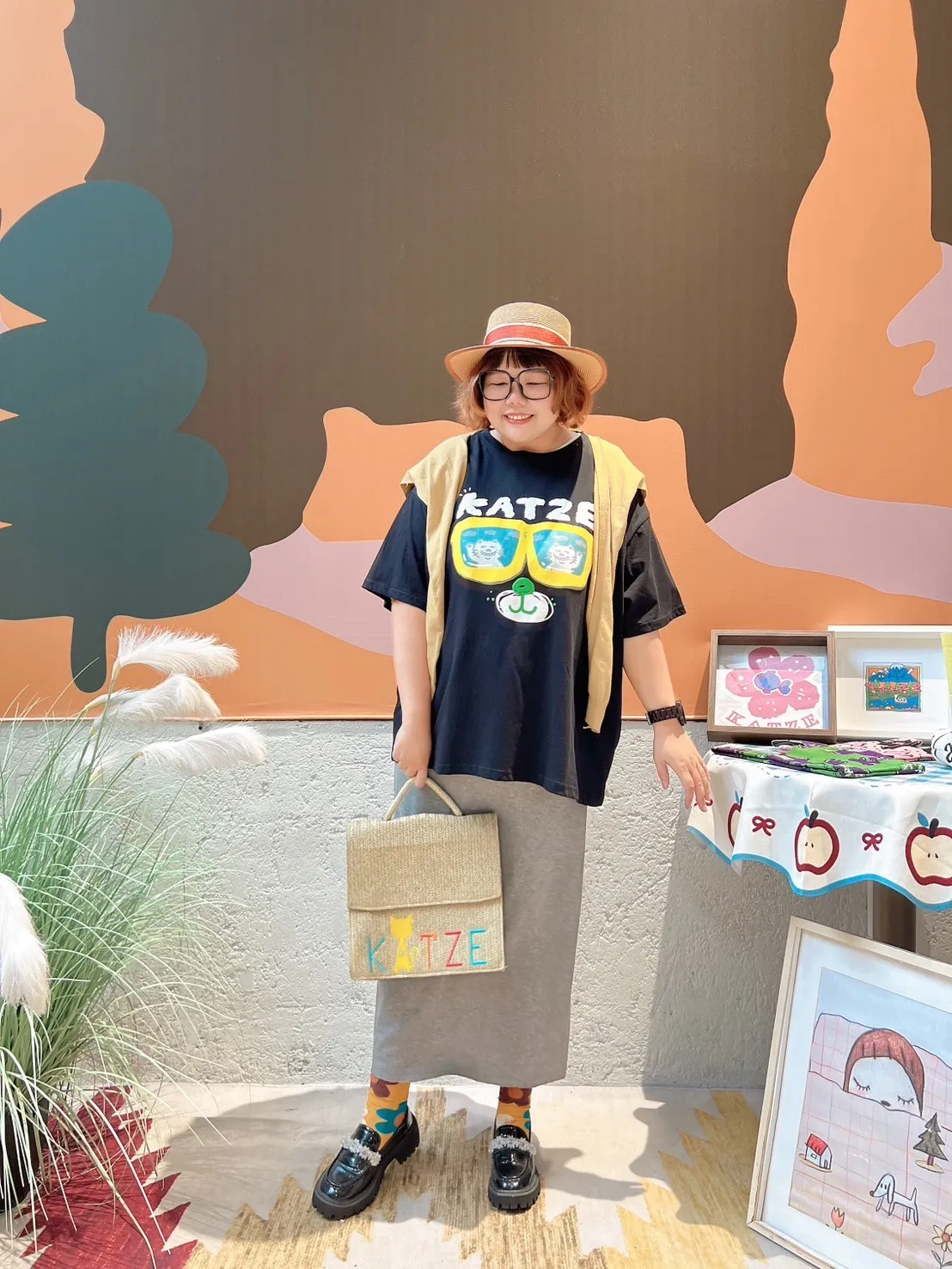KATZE限量原創款-印刷大眼鏡肉包舒適上衣 2色