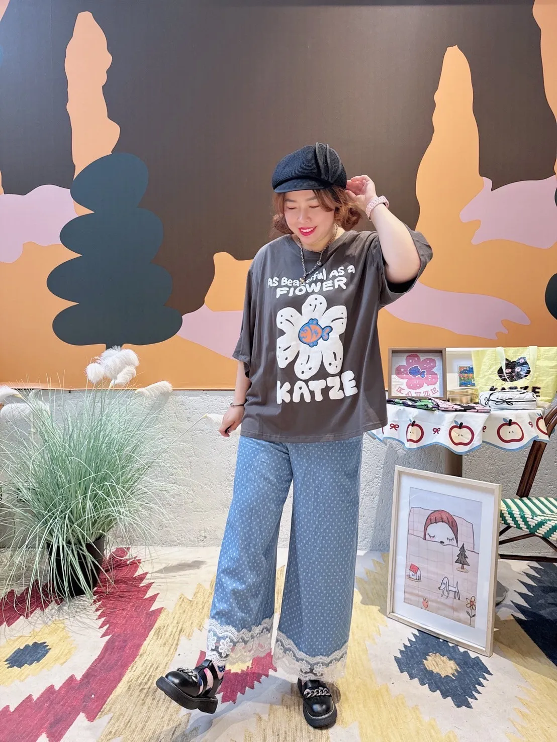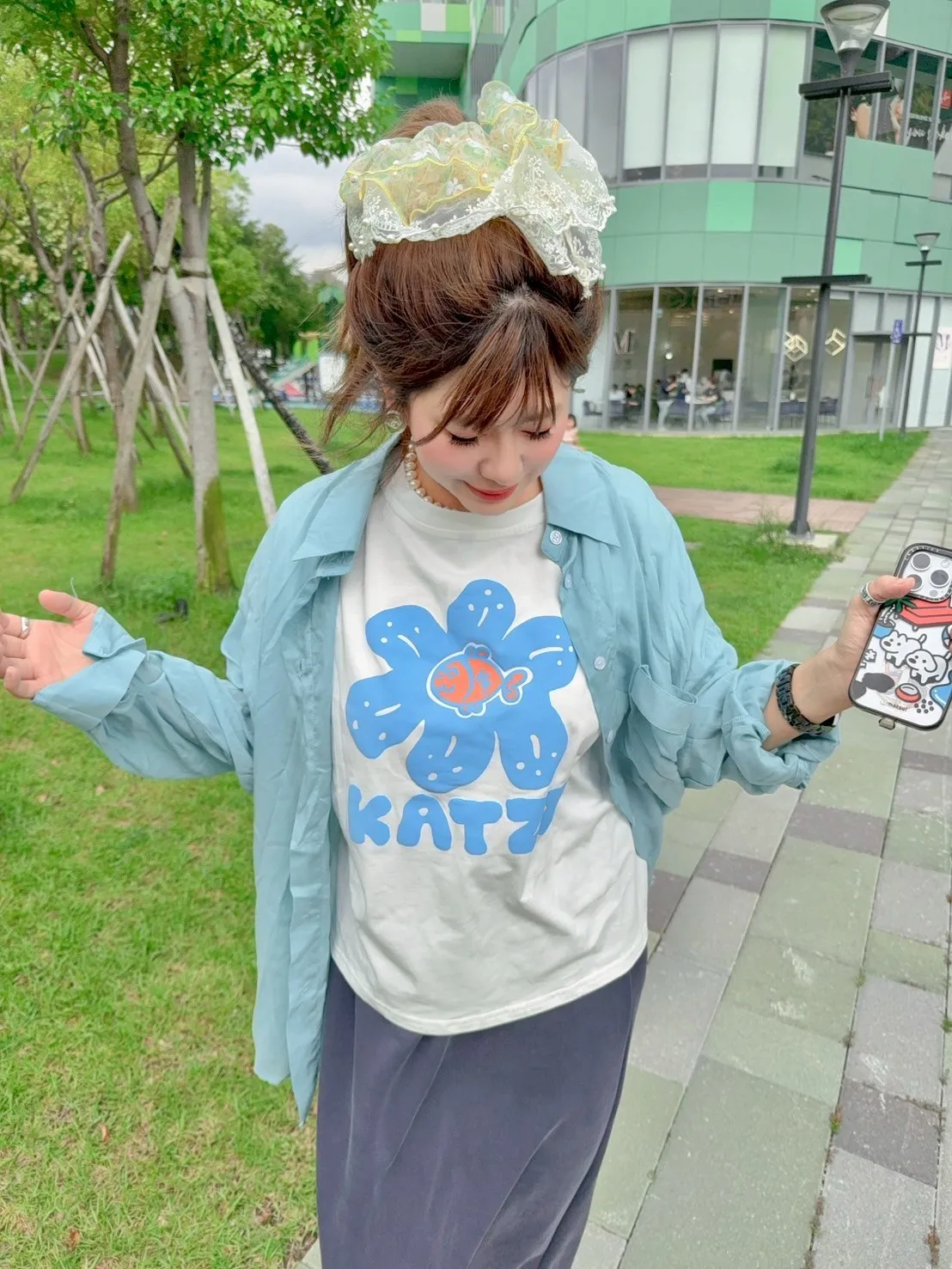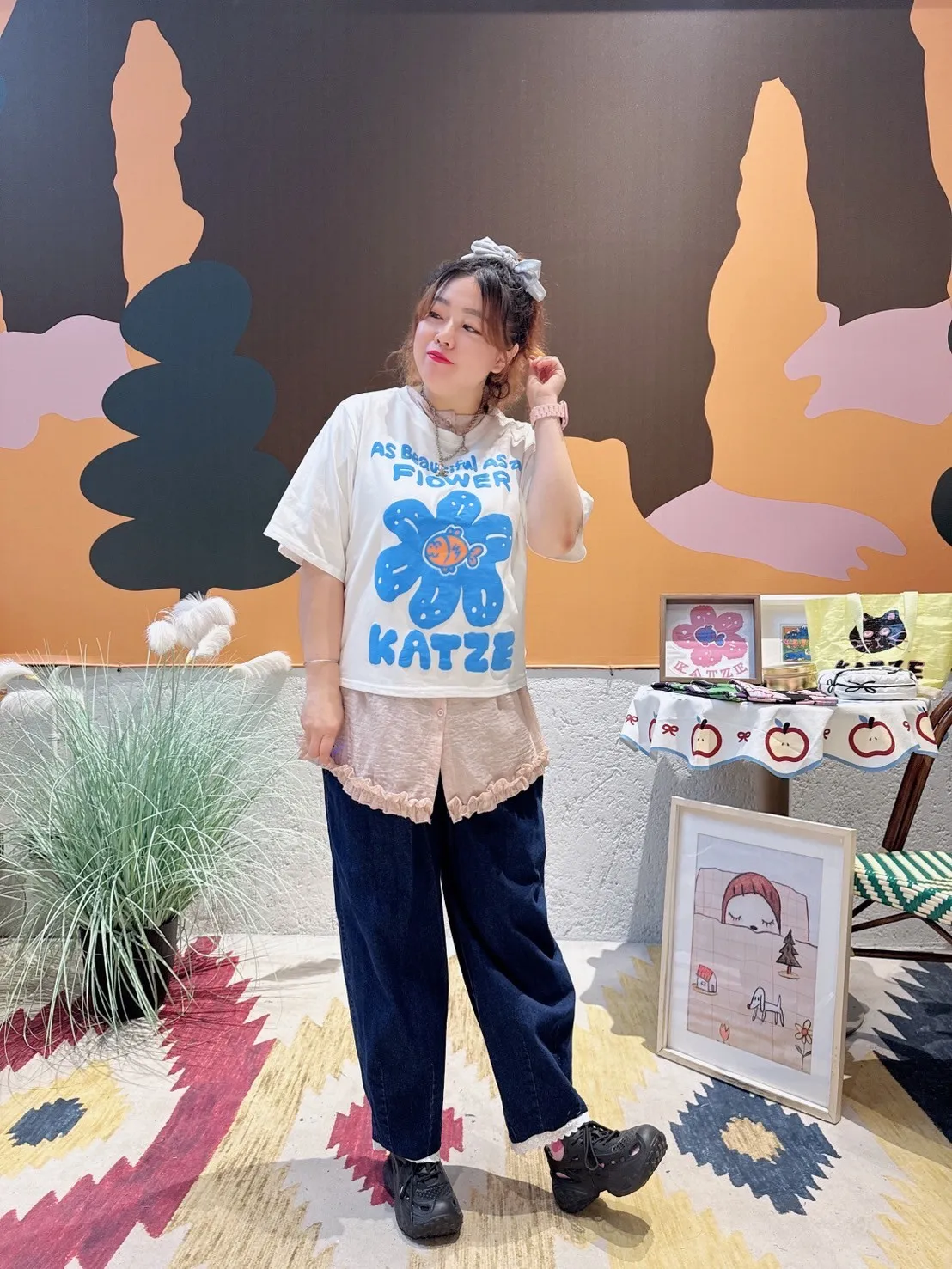 KATZE限量原創款-印刷大花魚舒適上衣 2色