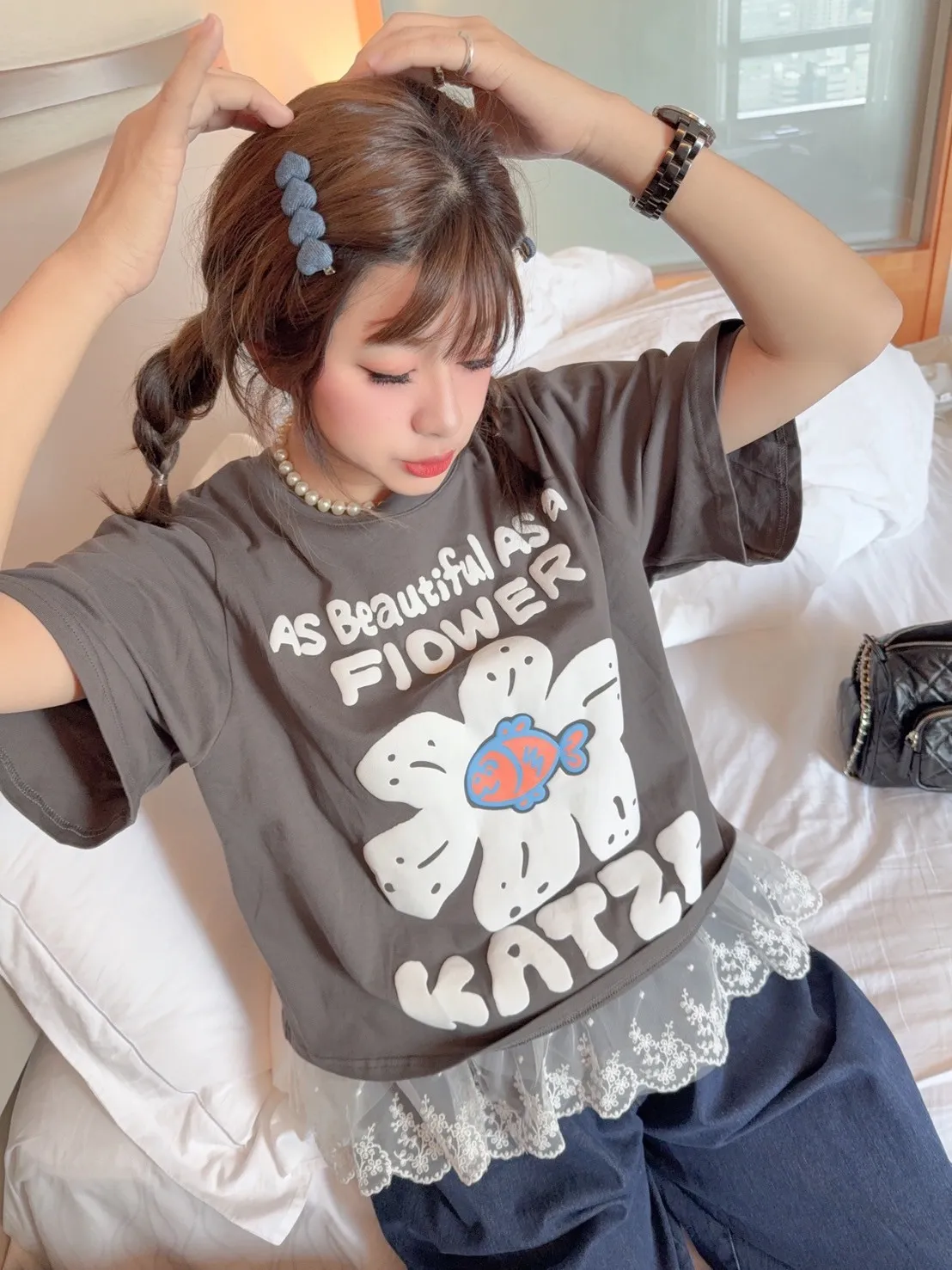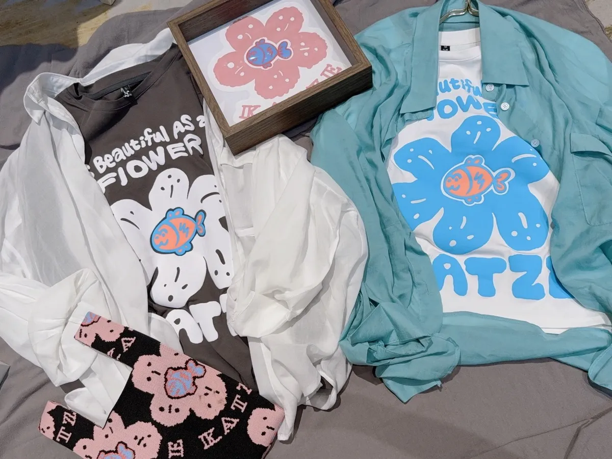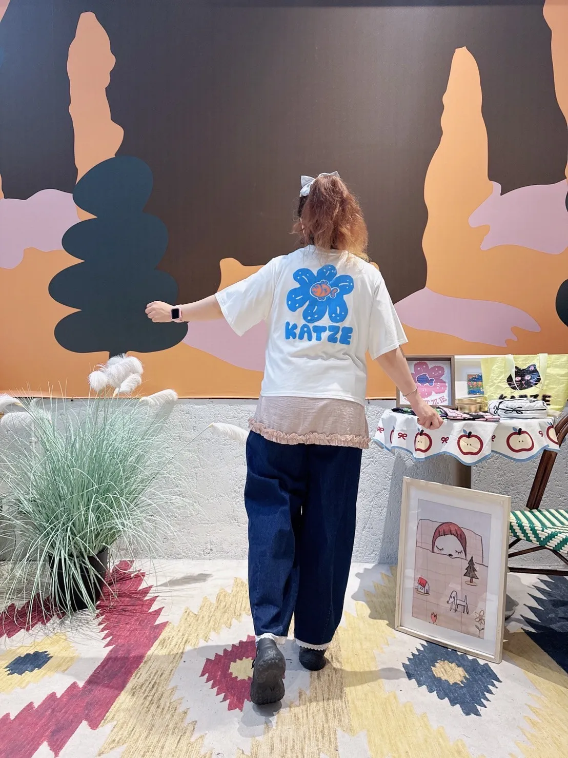 KATZE限量原創款-印刷大花魚舒適上衣 2色