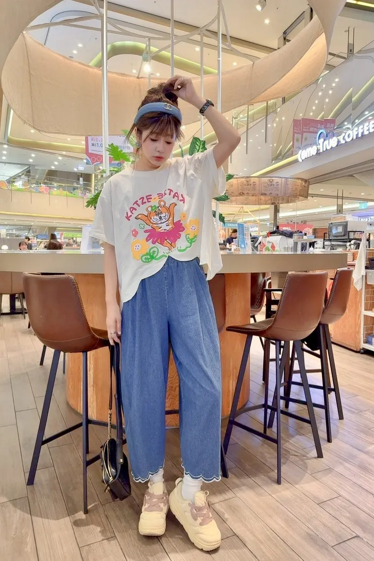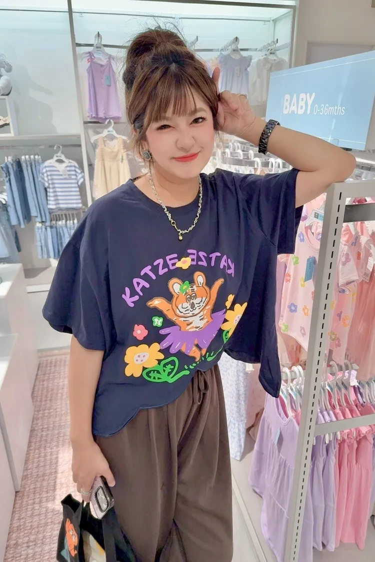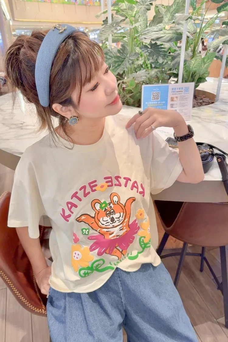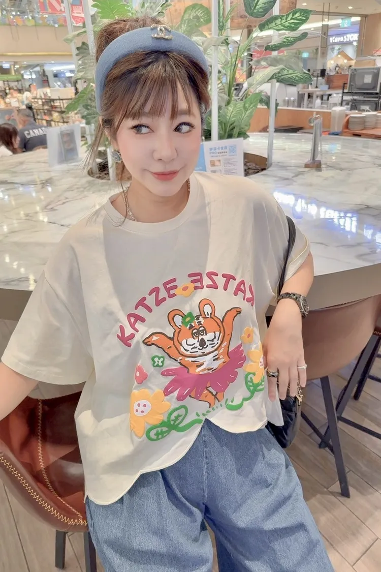 KATZE限量原創款-跳舞阿虎花邊下擺造型短版上衣 2色