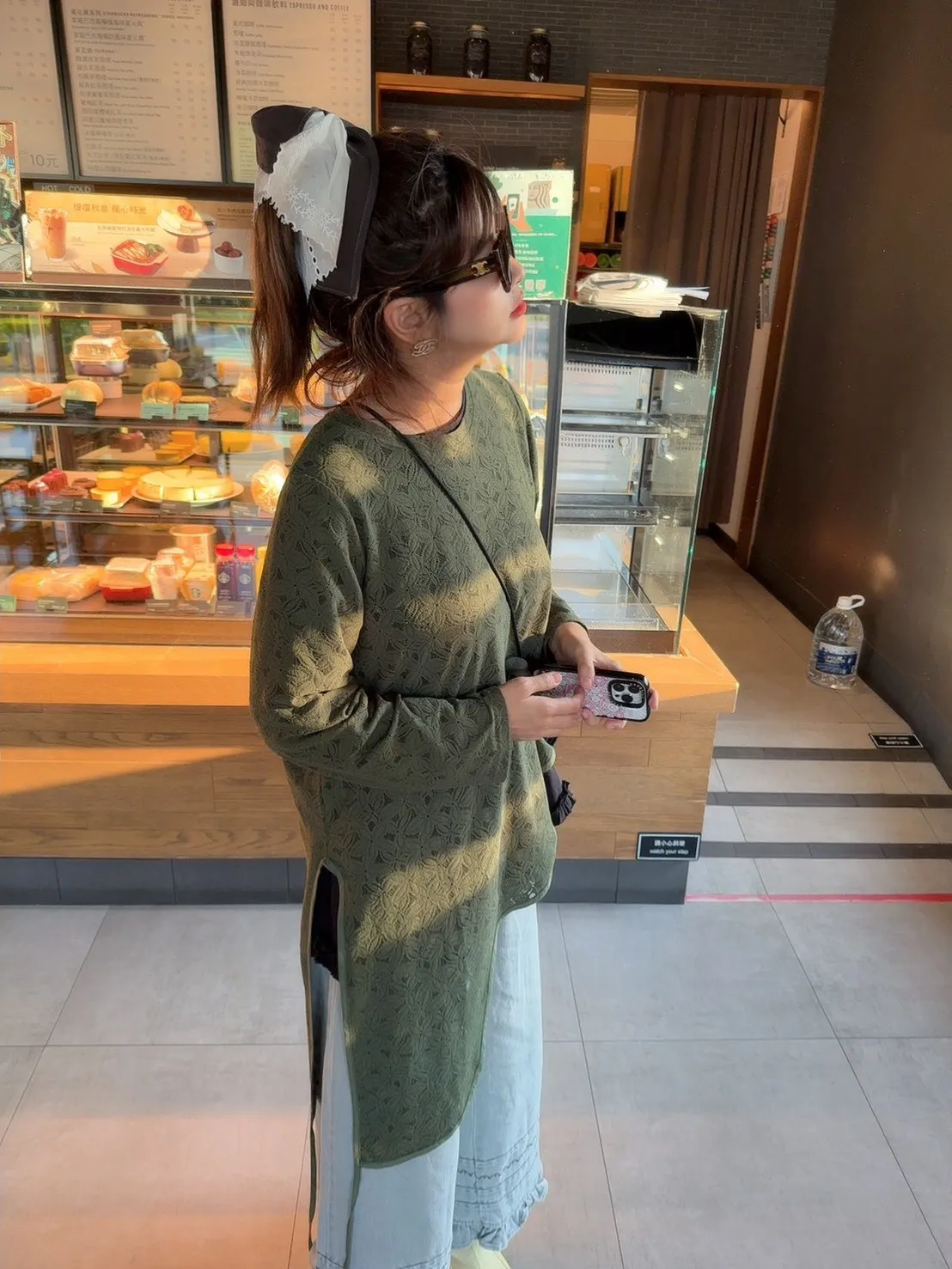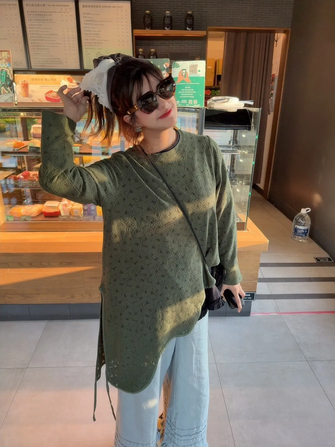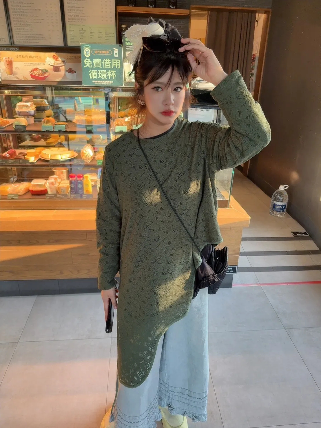 滿版蕾絲花造型下擺綁帶上衣 2色