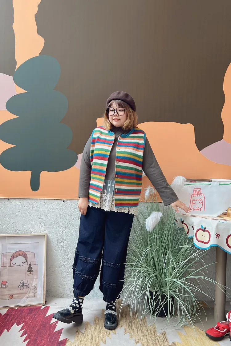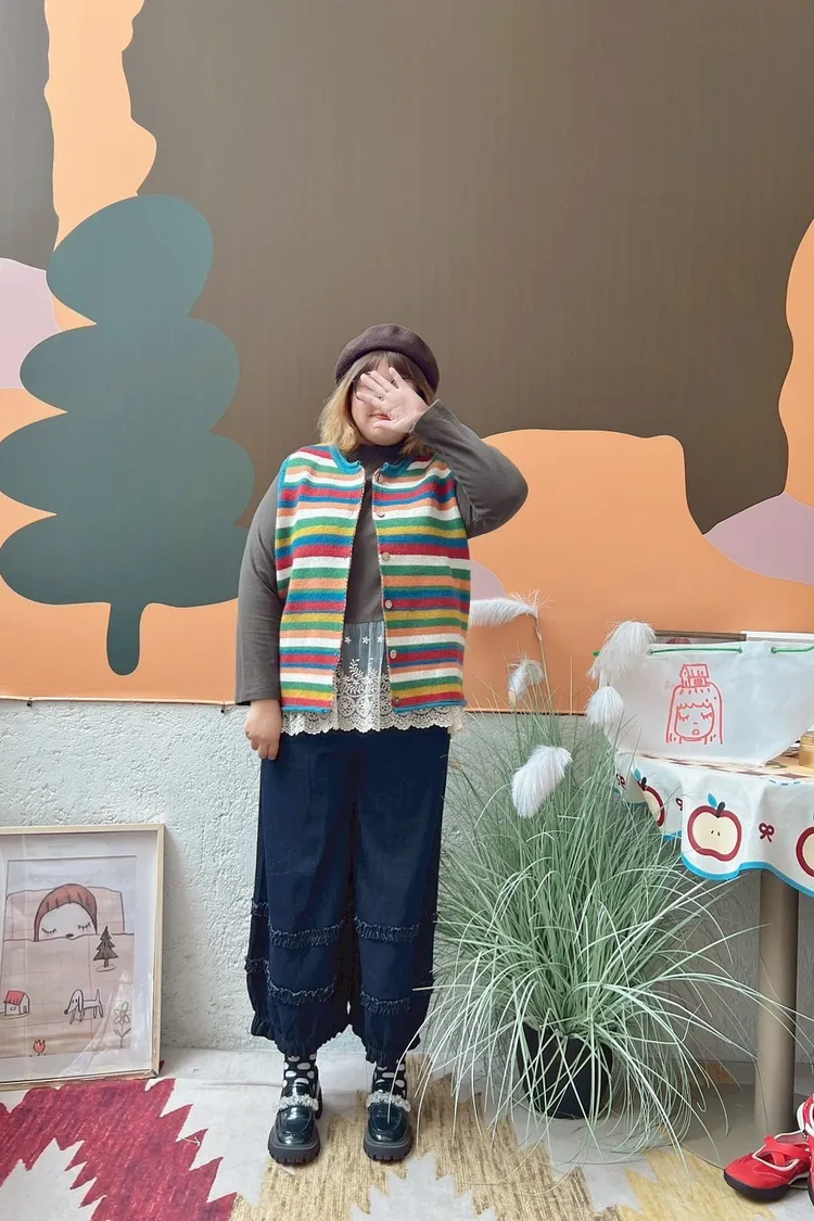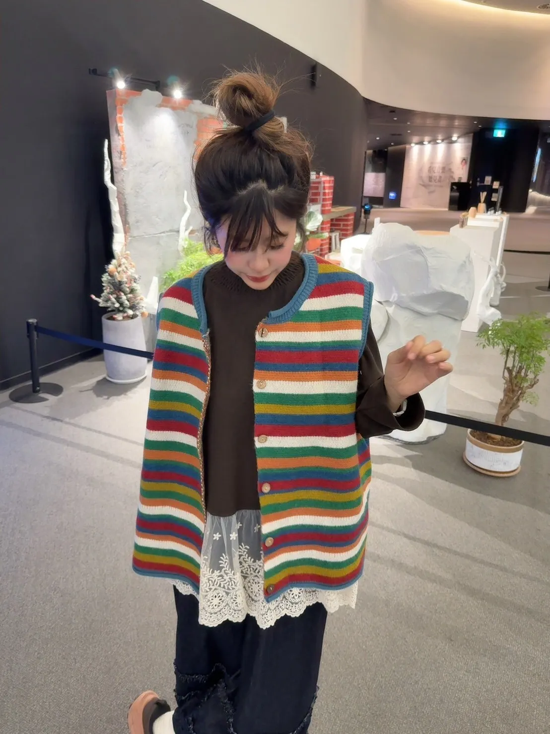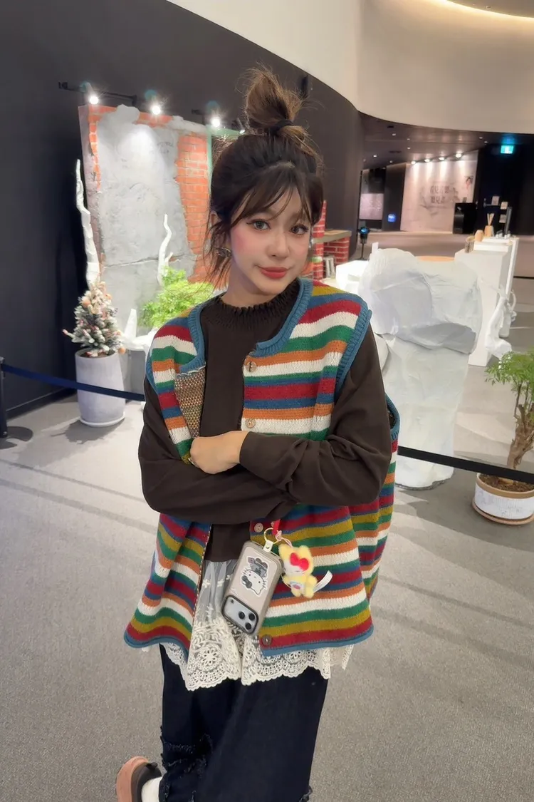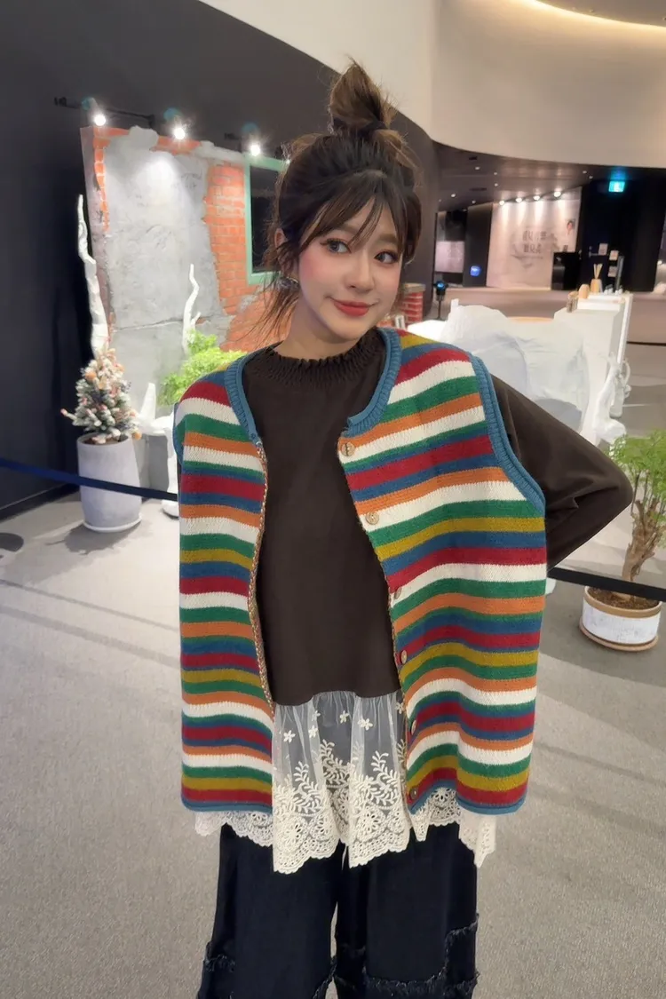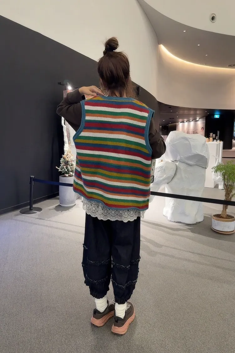 彩色橫條針織背心