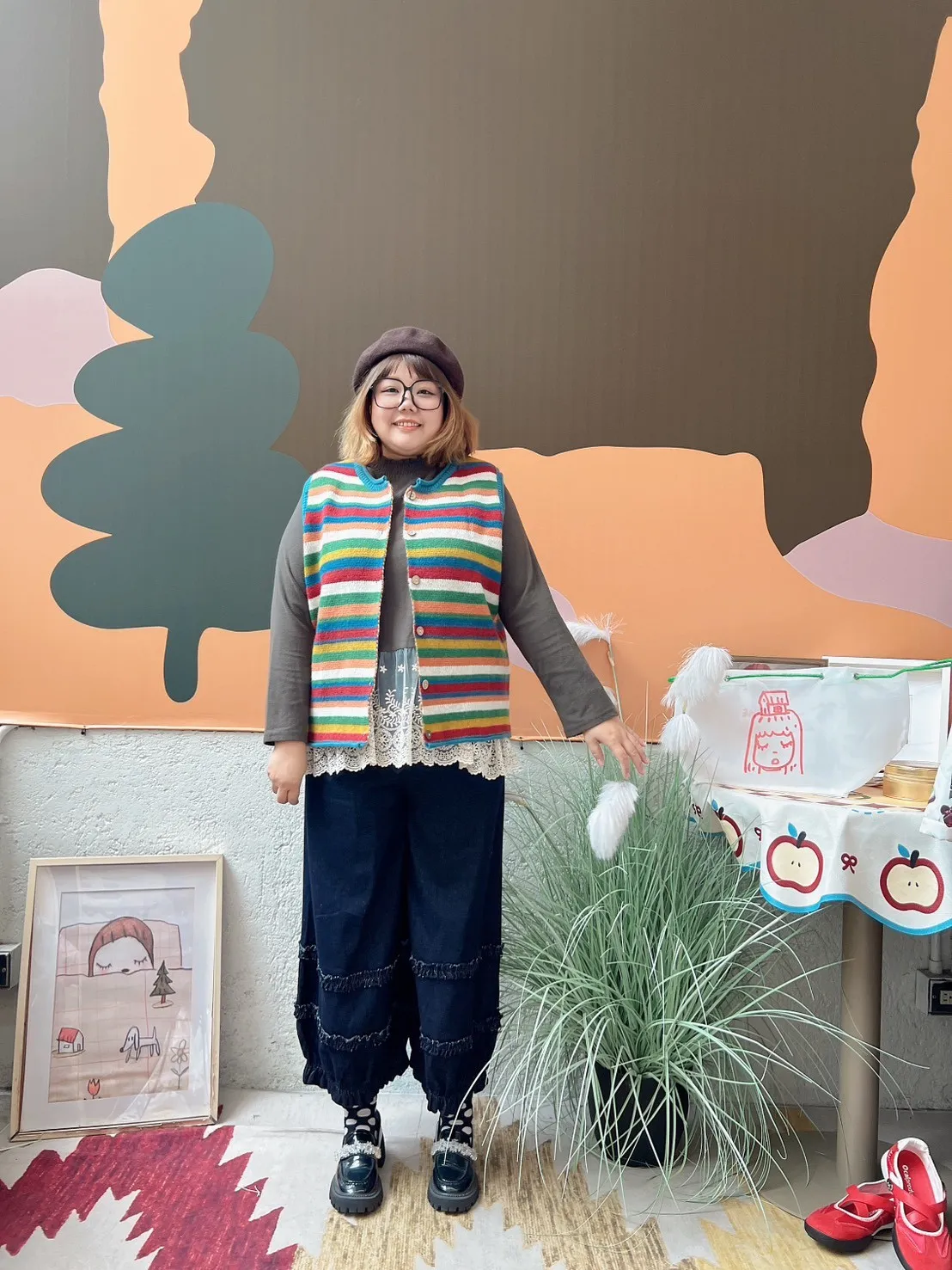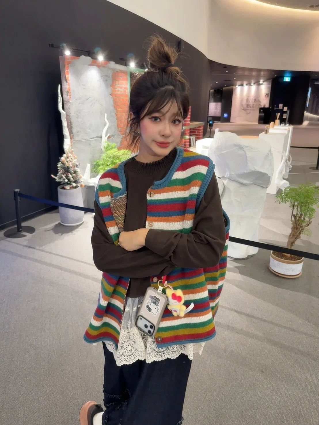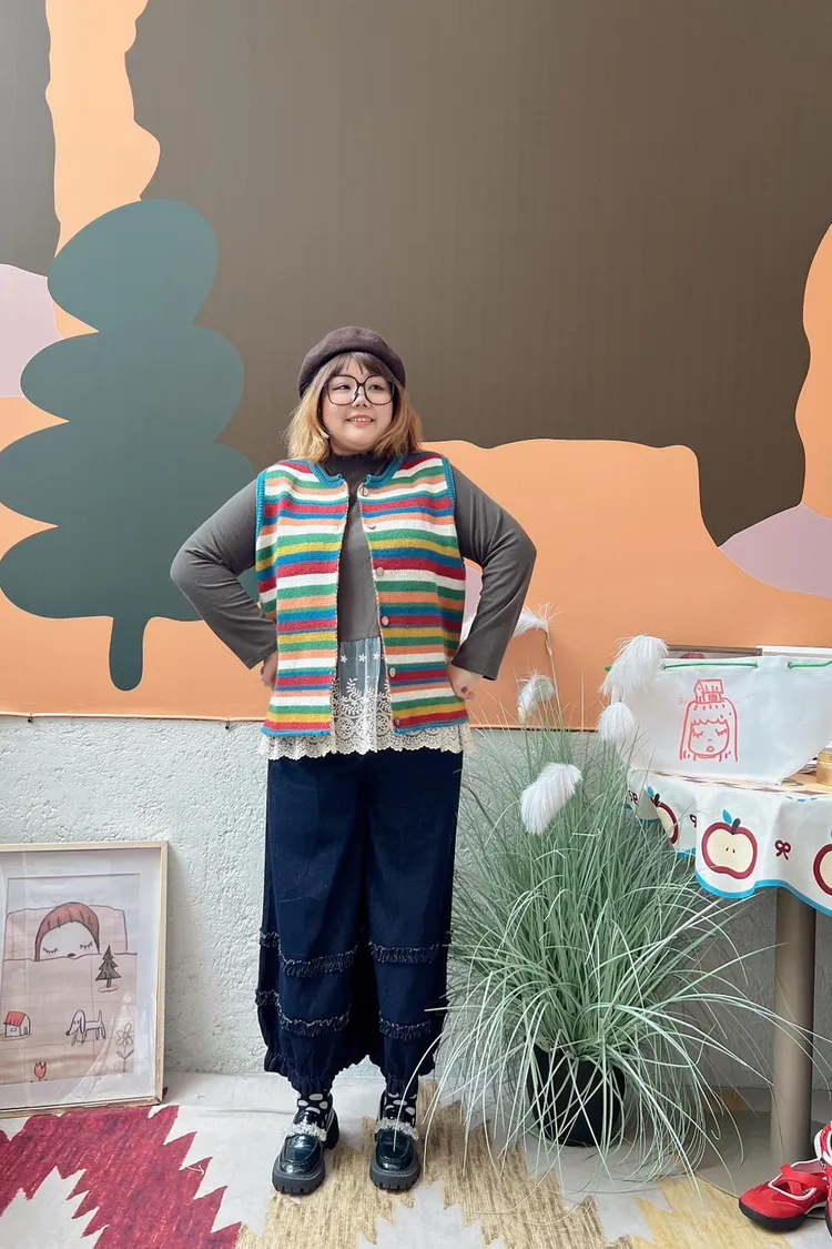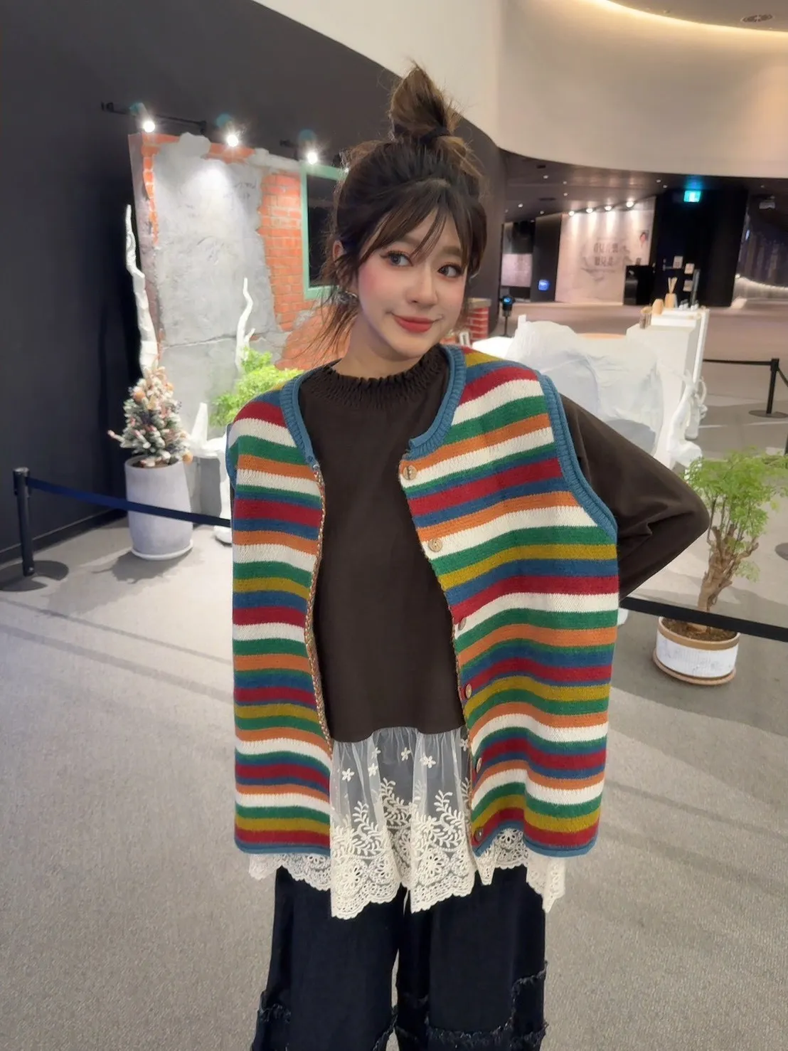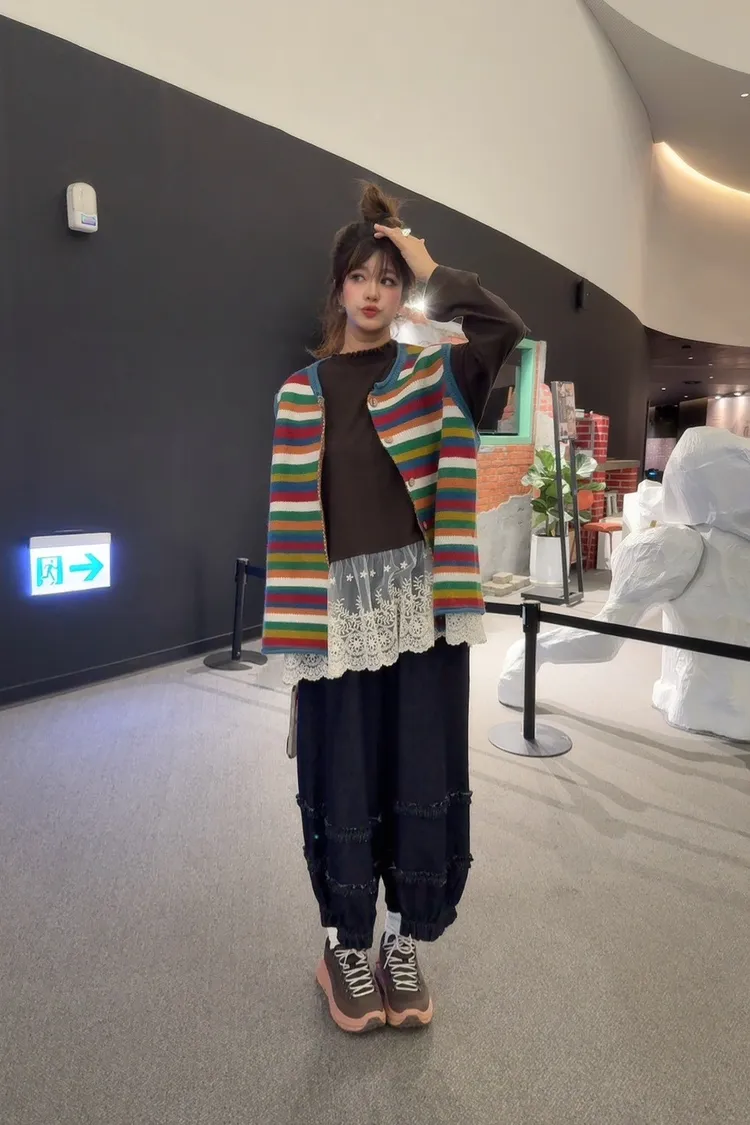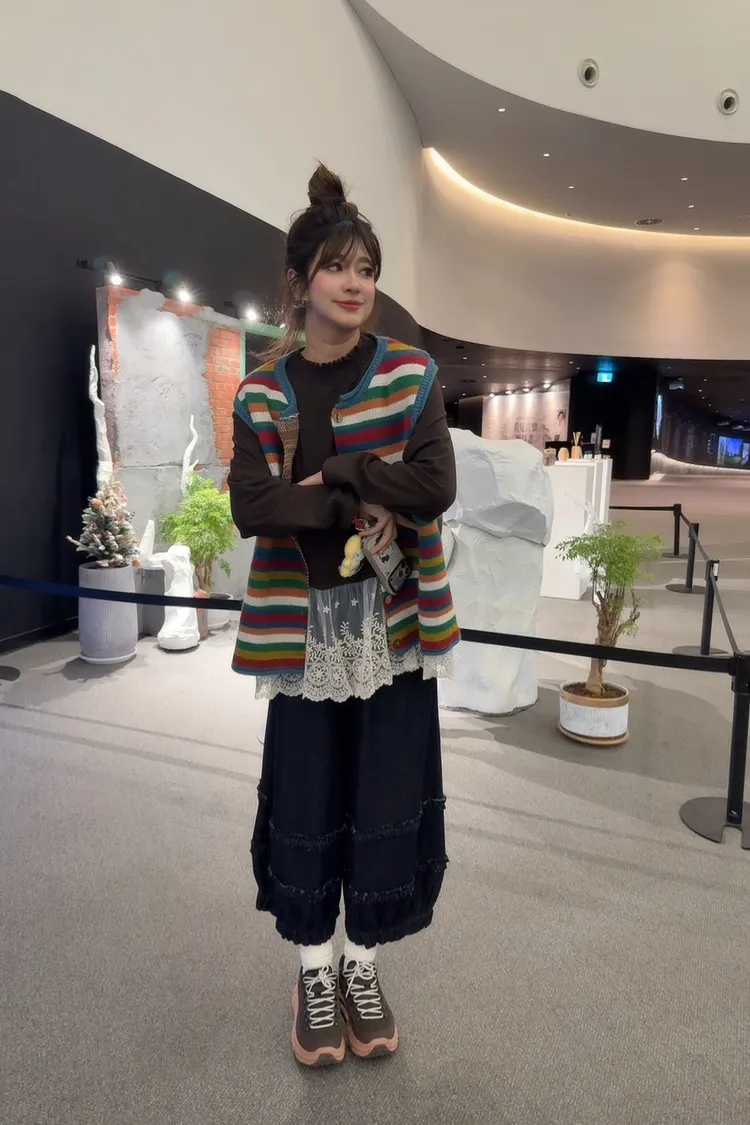 彩色橫條針織背心