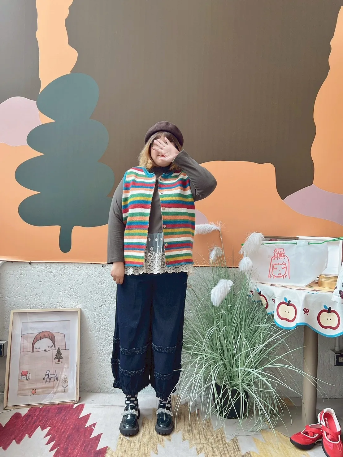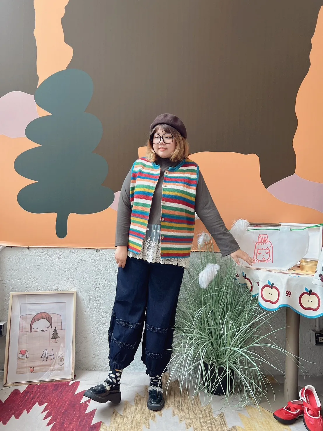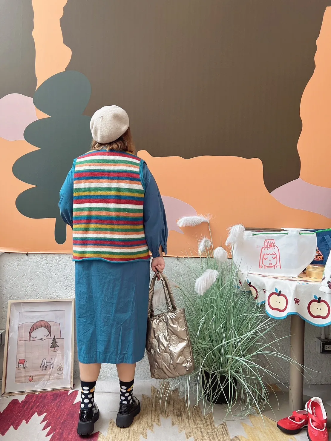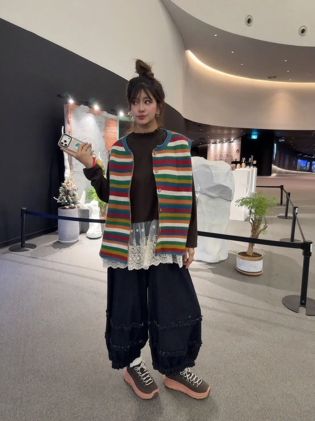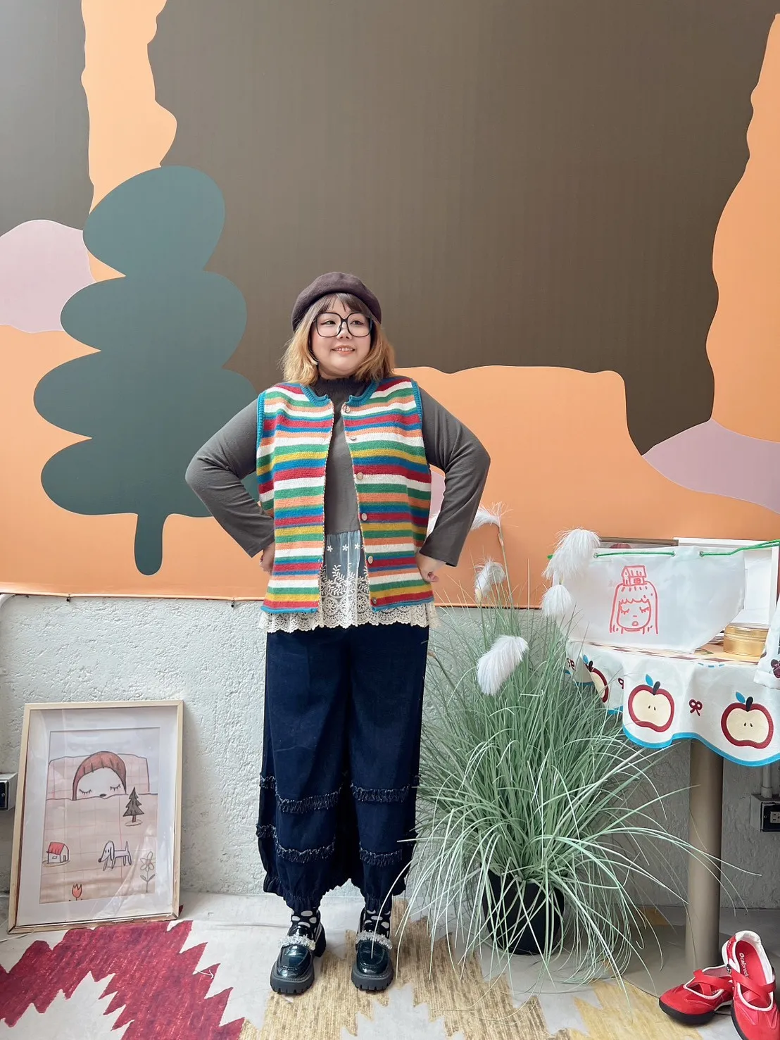 彩色橫條針織背心