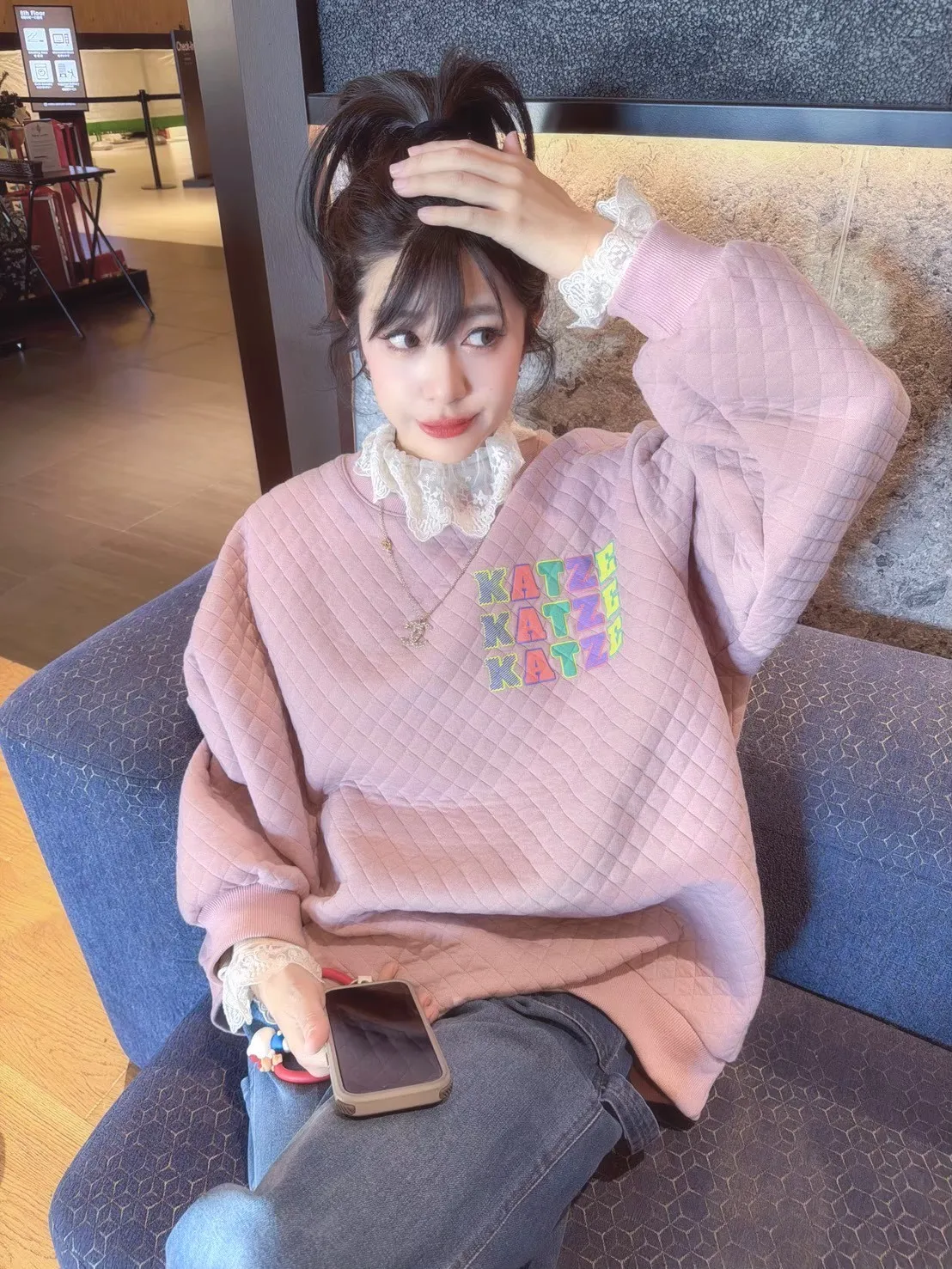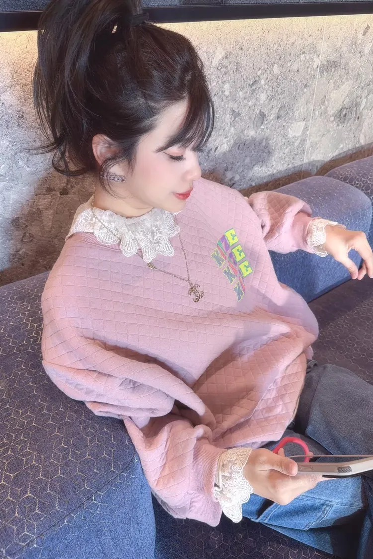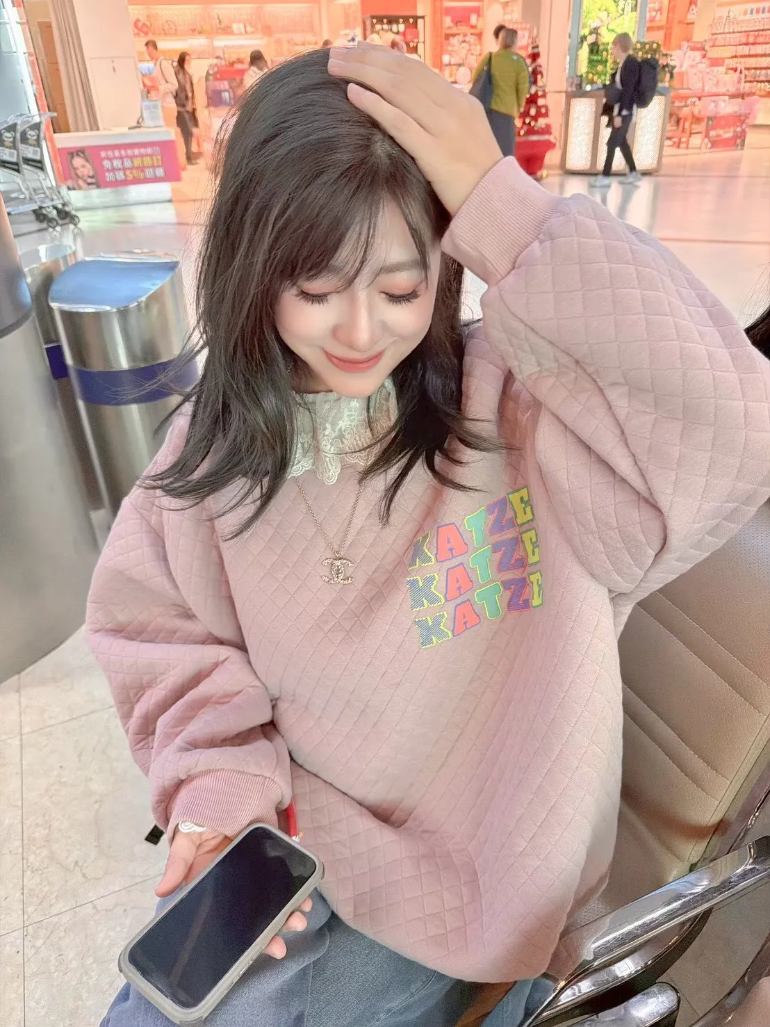 KATZE限量原創款-彩色菱格紋舒服上衣2色
