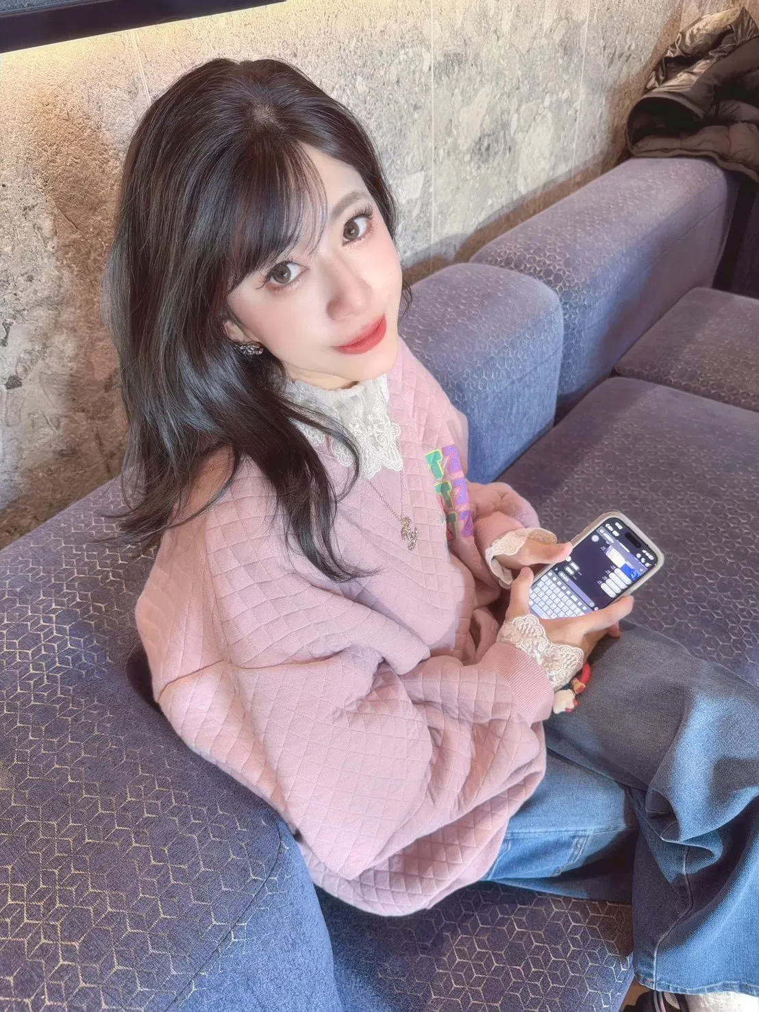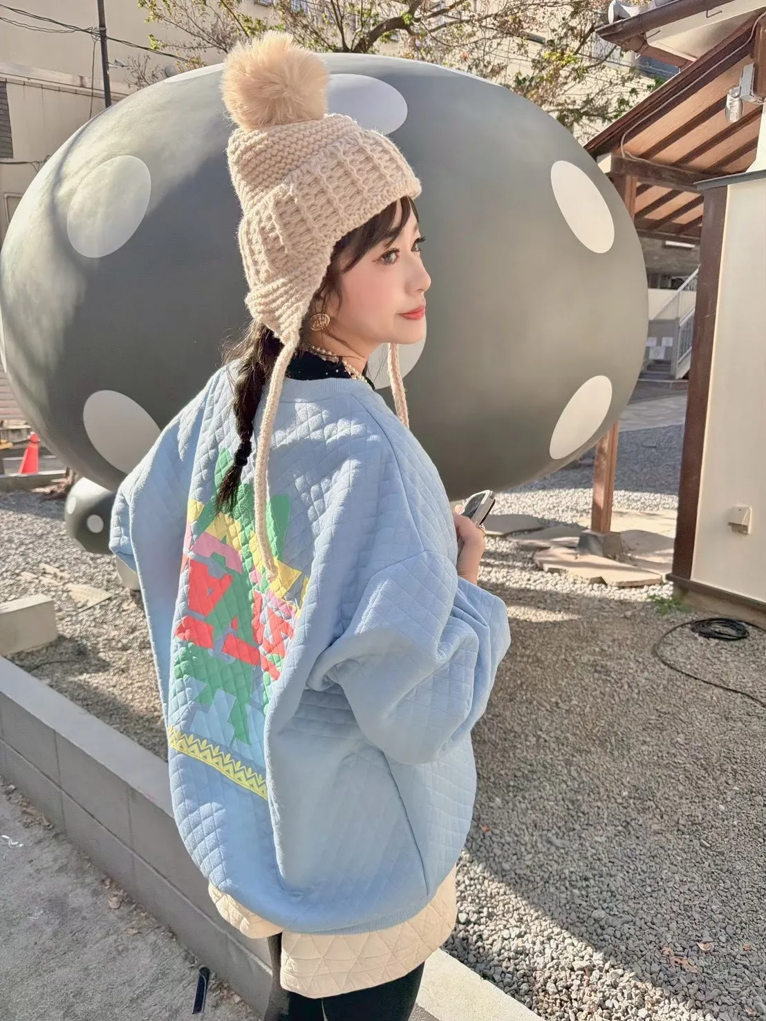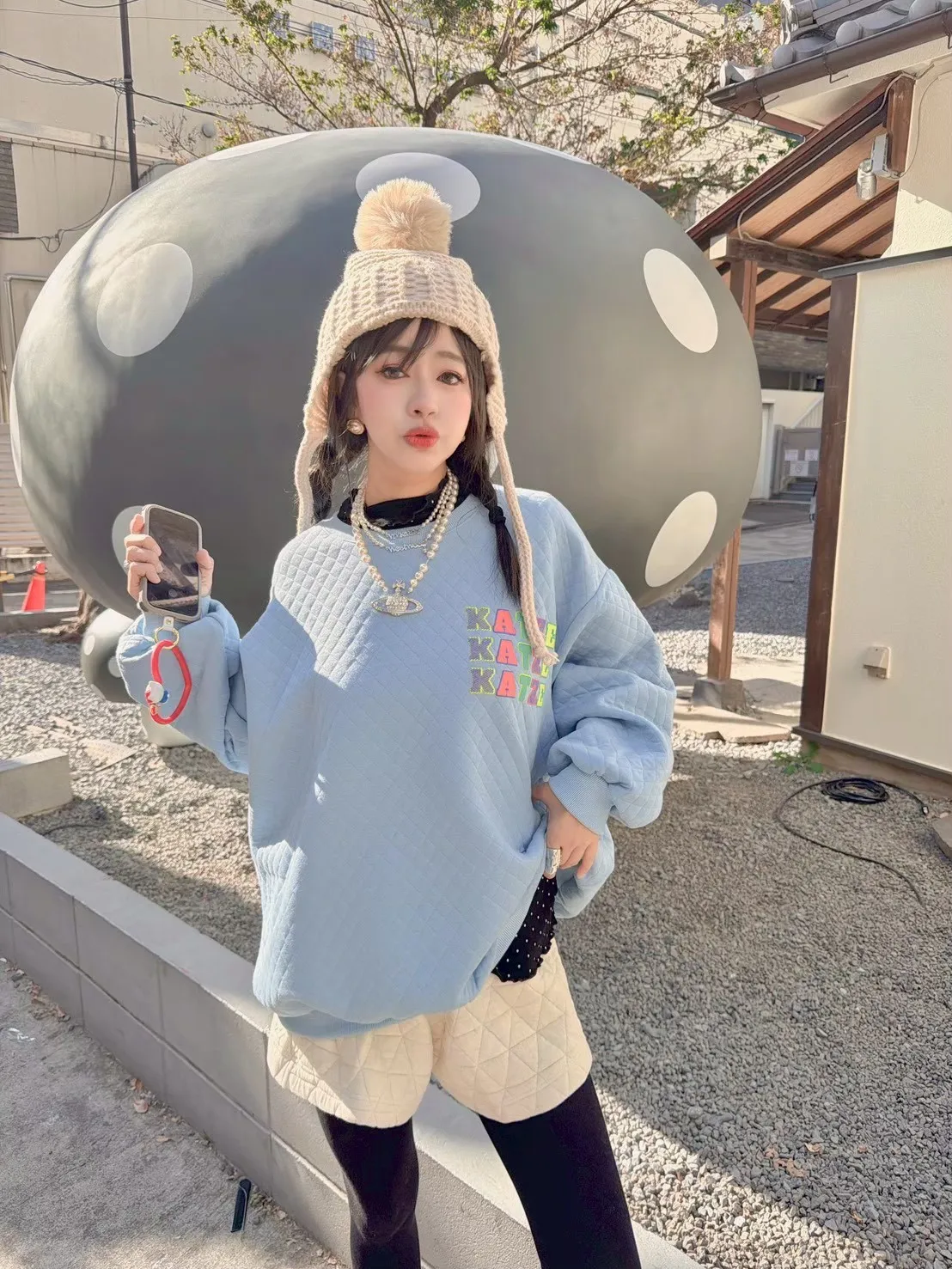 KATZE限量原創款-彩色菱格紋舒服上衣2色