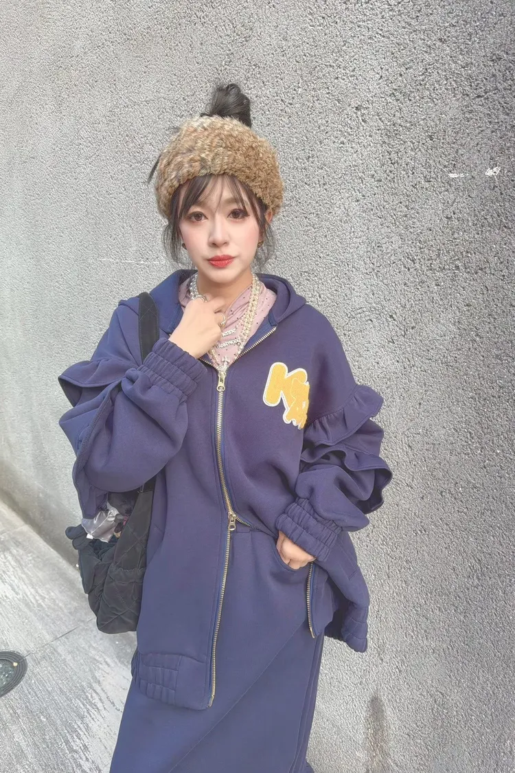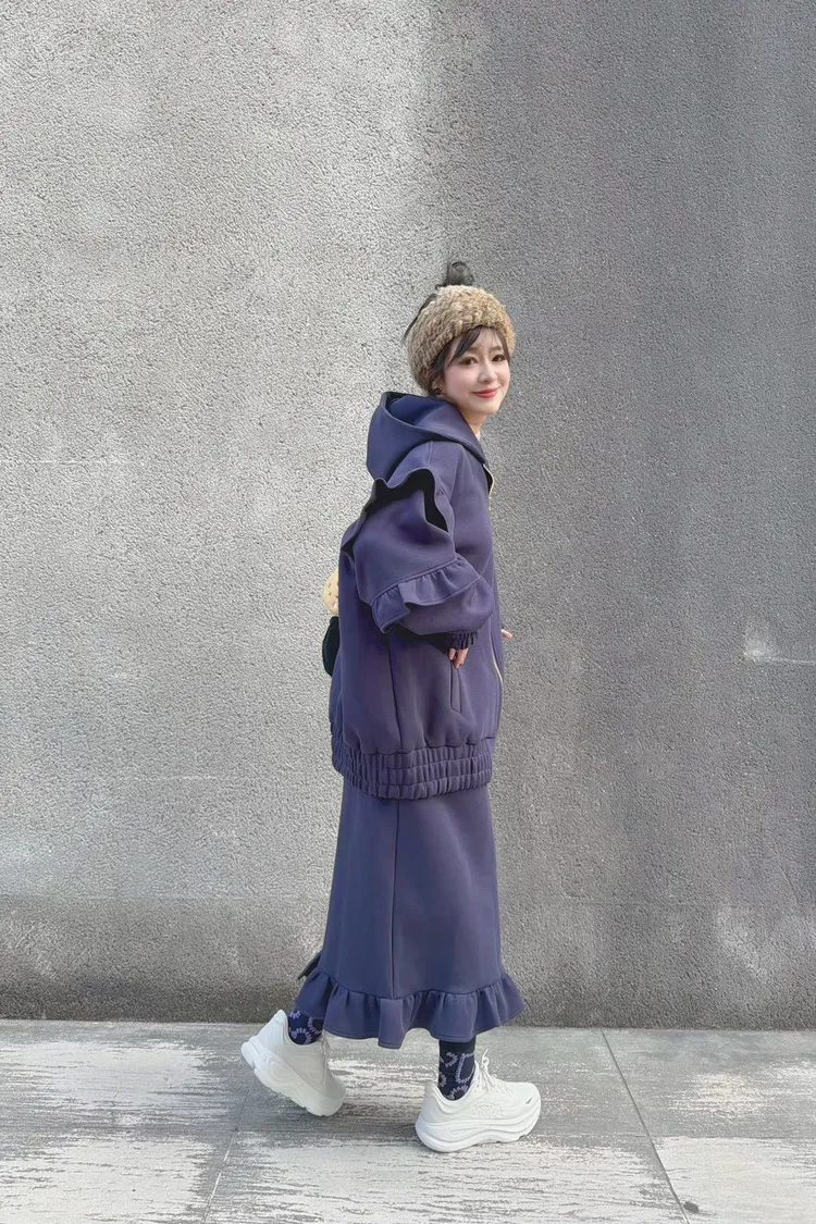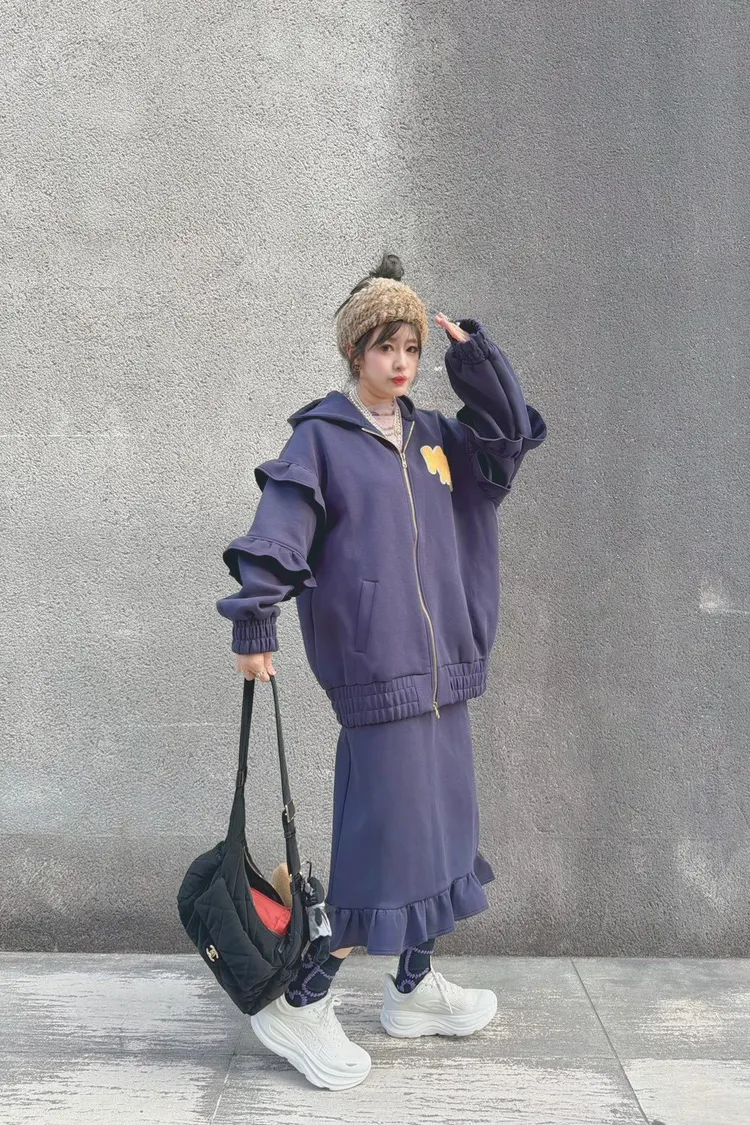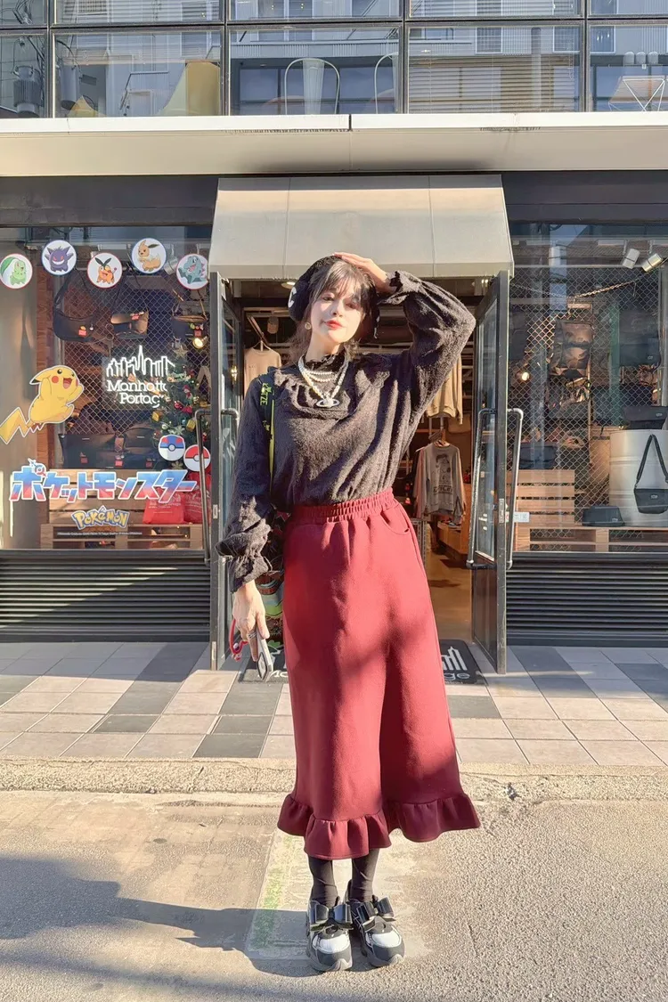 KATZE限量原創款-LOGO重磅荷葉邊開岔口袋裙2色
