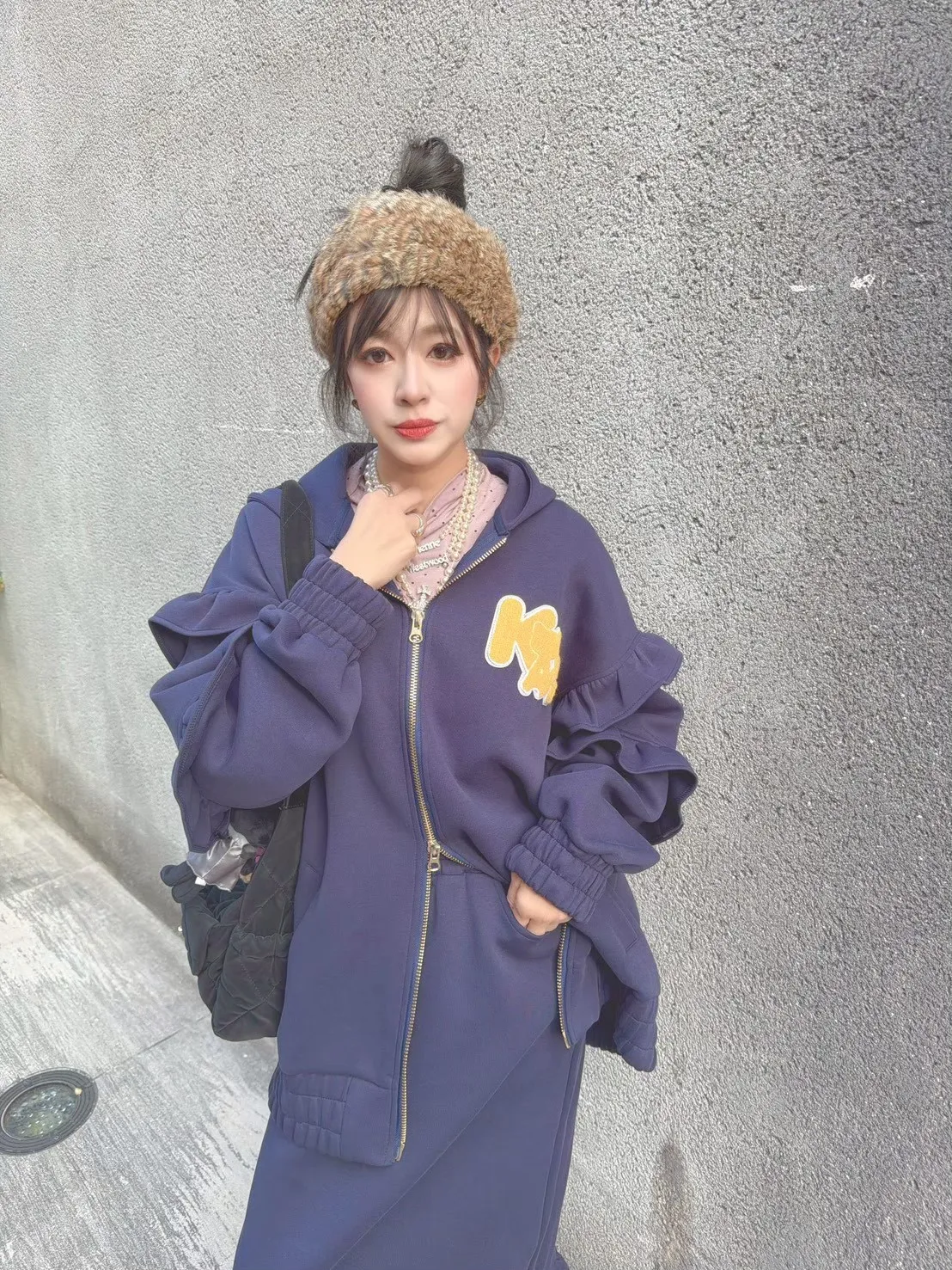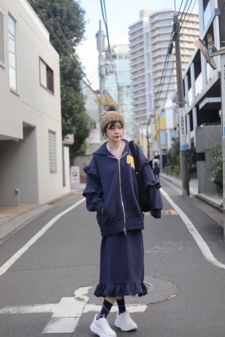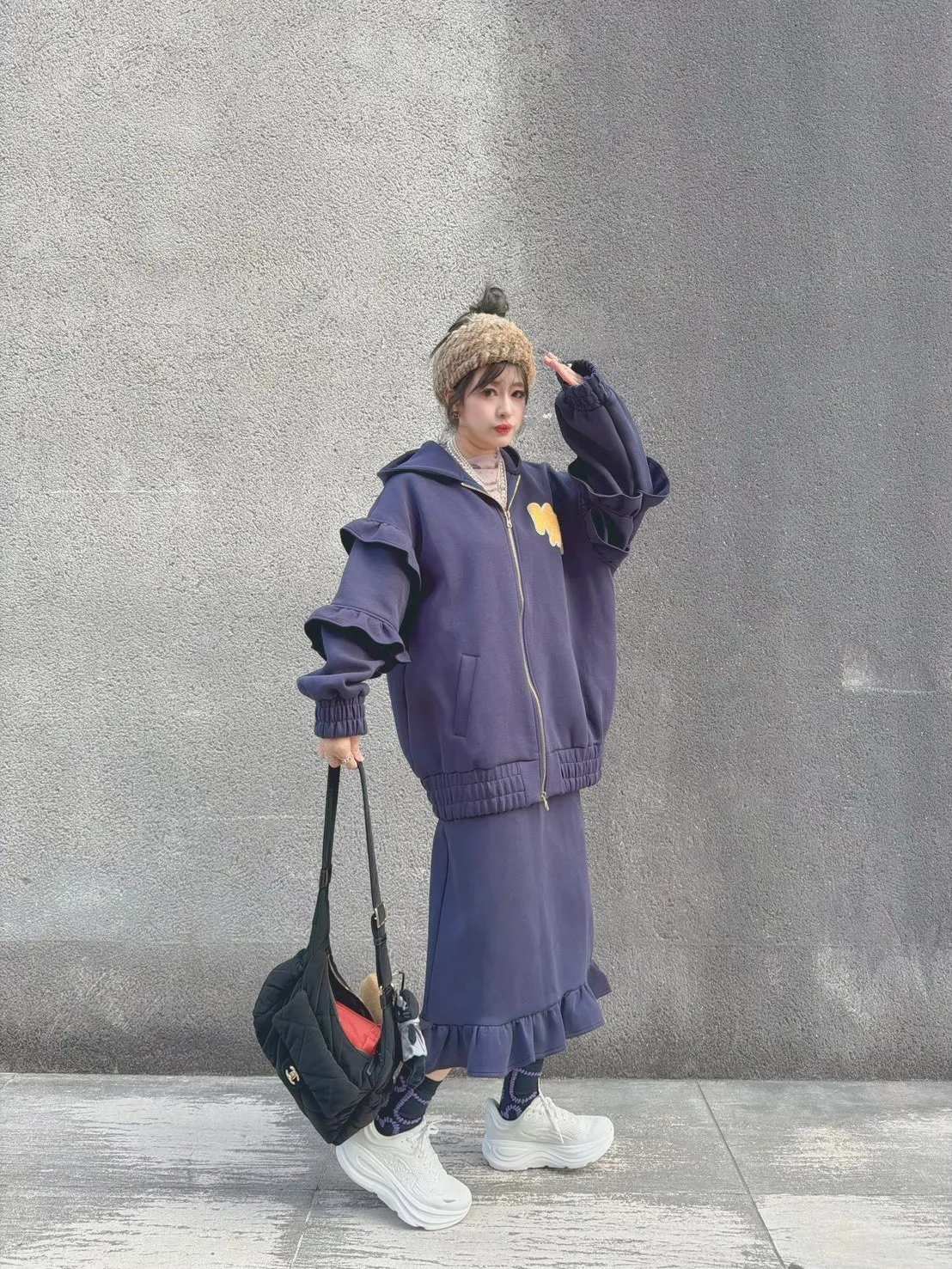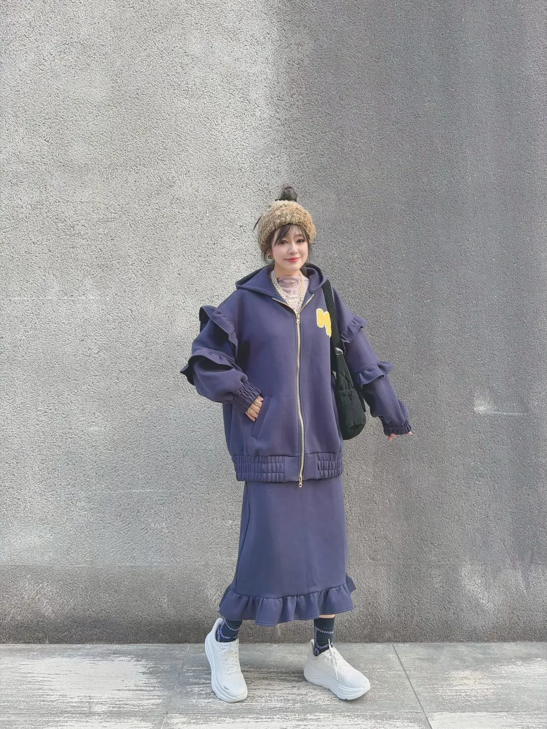 KATZE限量原創款-LOGO重磅荷葉邊開岔口袋裙2色