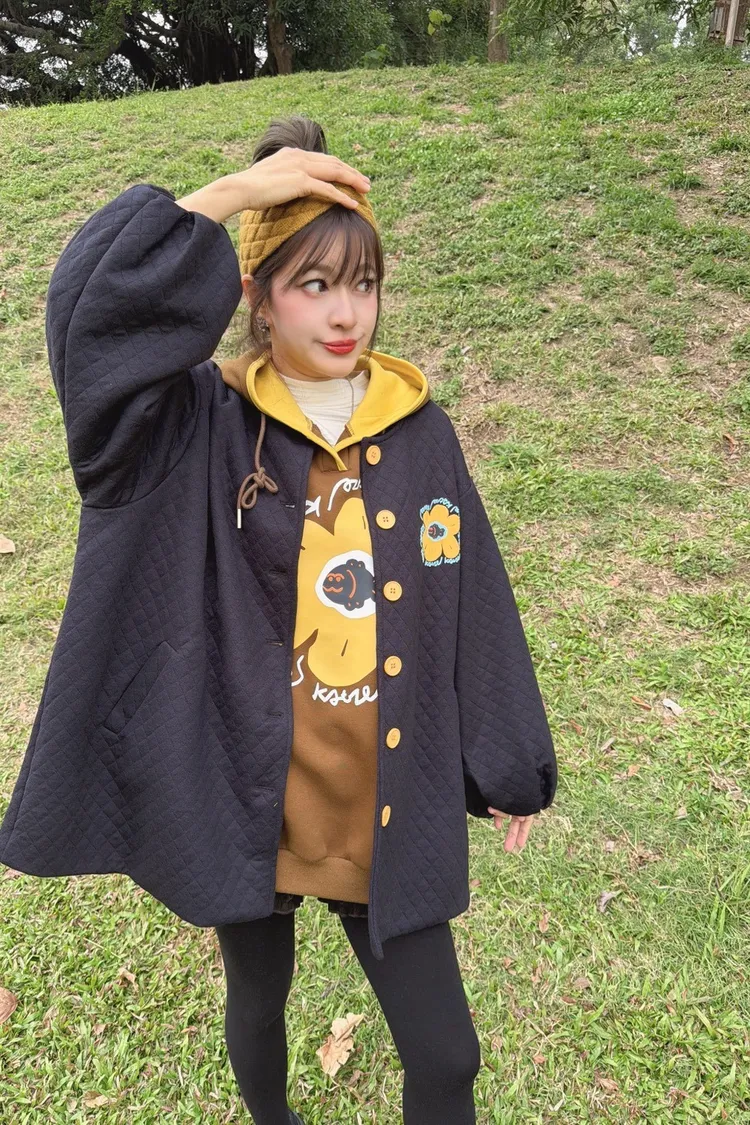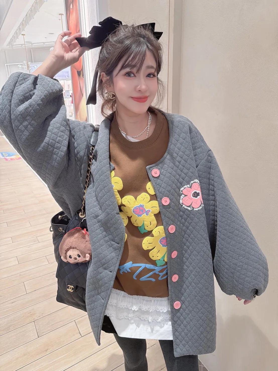 KATZE限量原創款-大花魚壓格質感大外套 2色