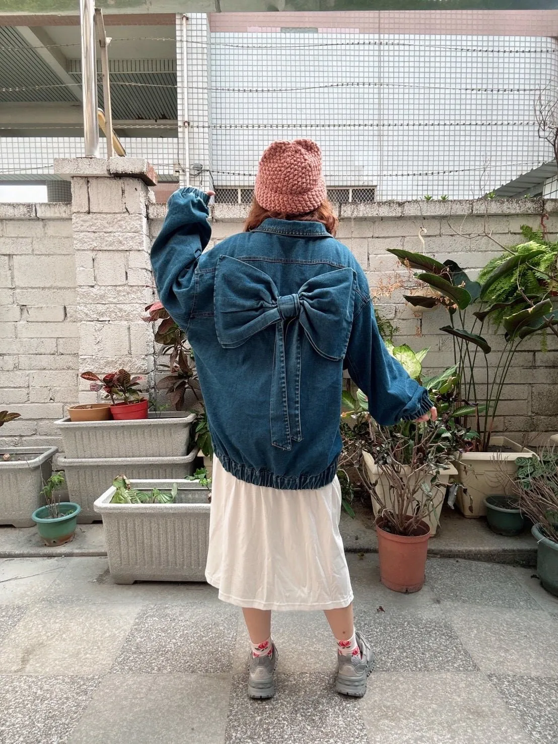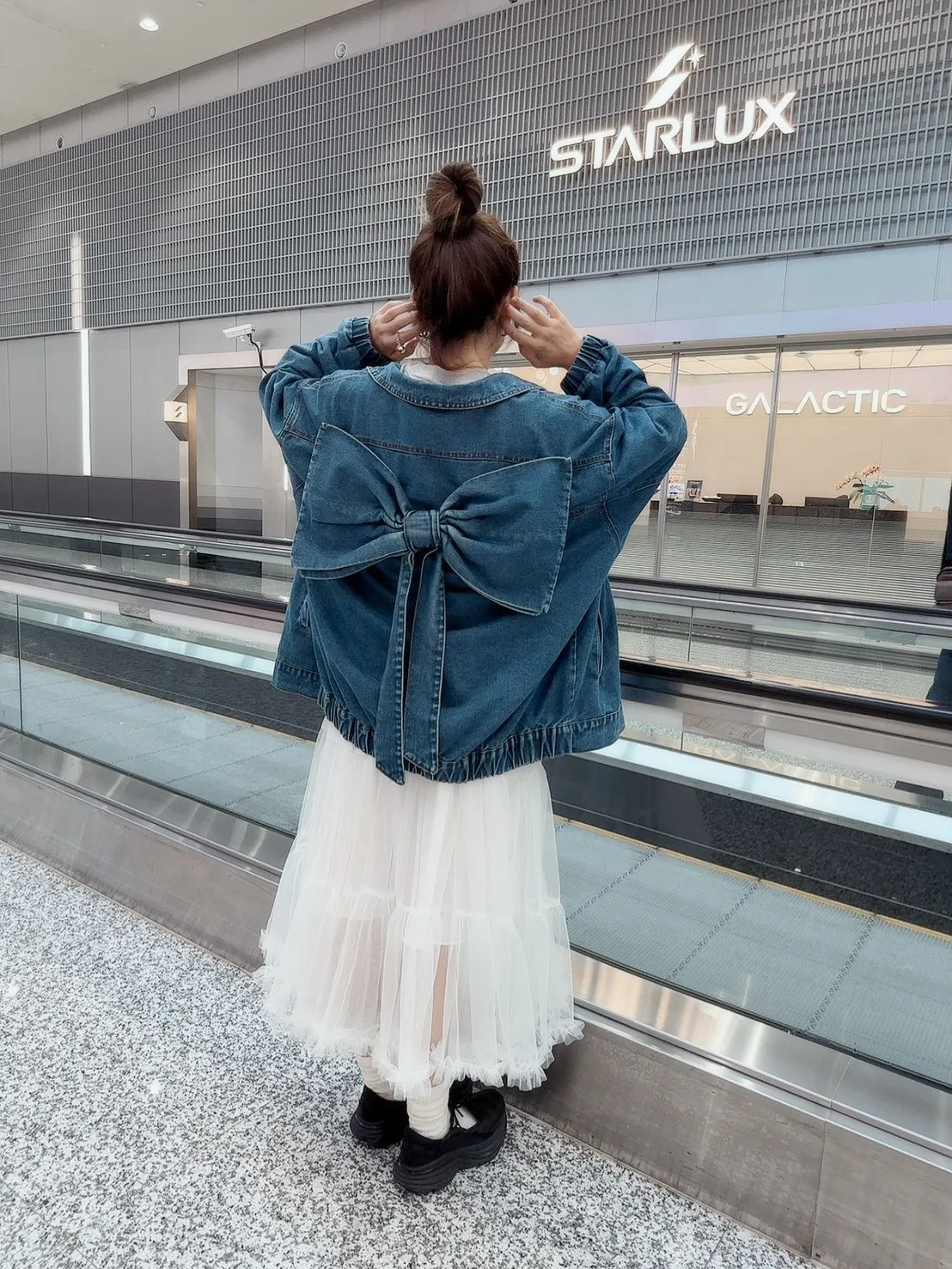 KATZE限量原創款-超搞剛大蝴蝶結牛仔外套